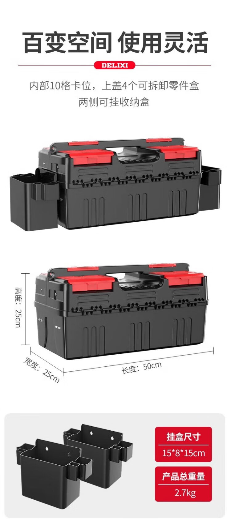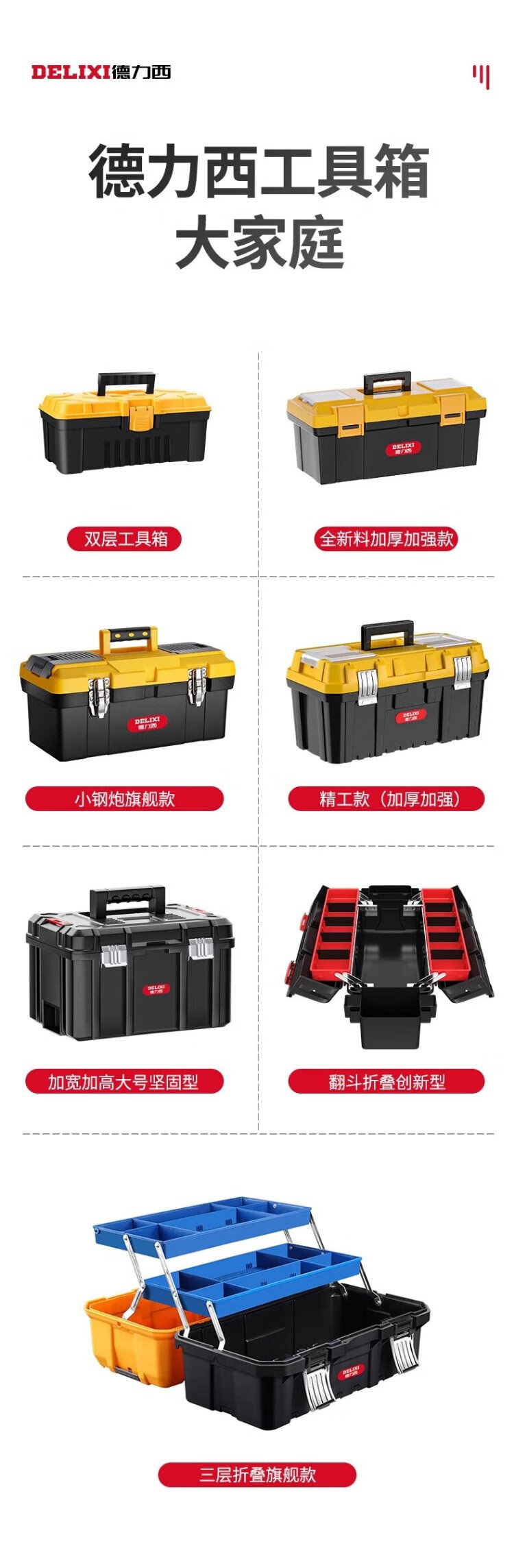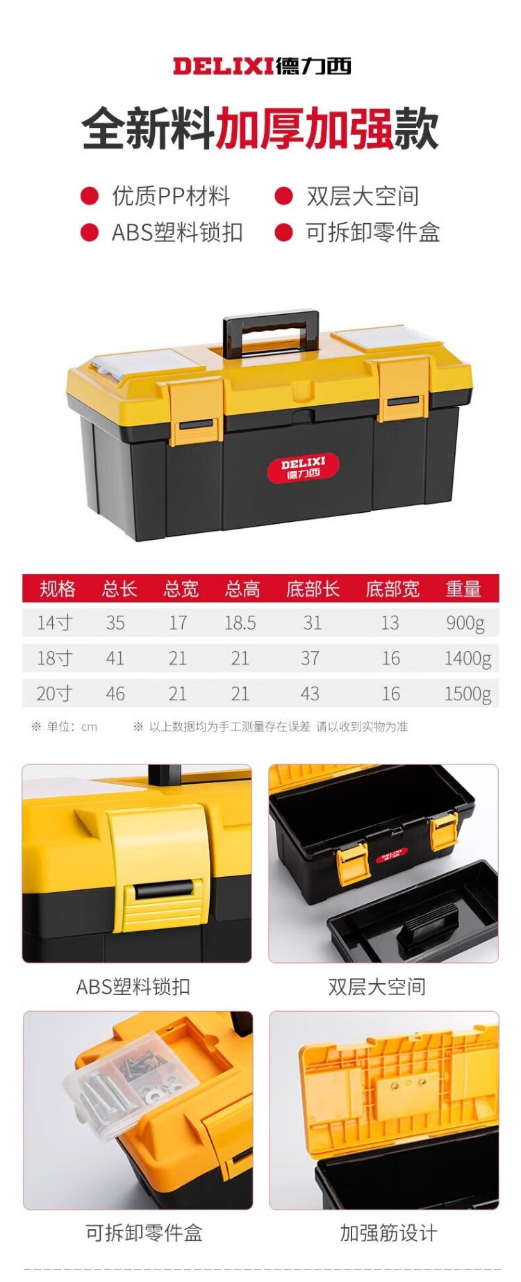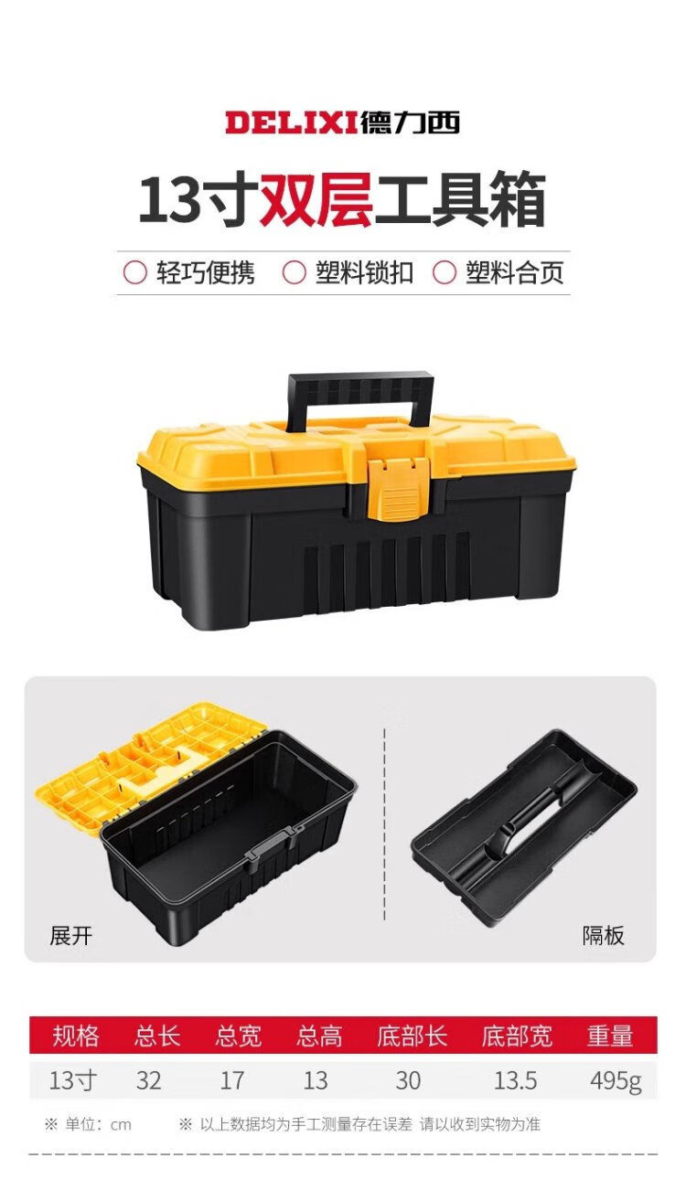 Delixi Tool Box Storage Box Hardware Large Industrial Grade Home Portable Car Multifunctional Maintenance Electrician Extra Large Brand New Material 18-inch Seiko Model/Reinforced Rib Design + Box