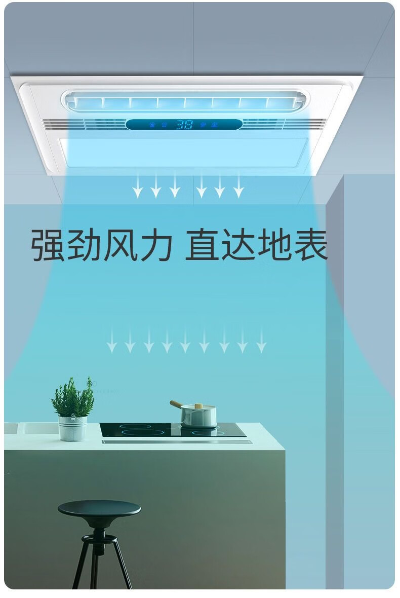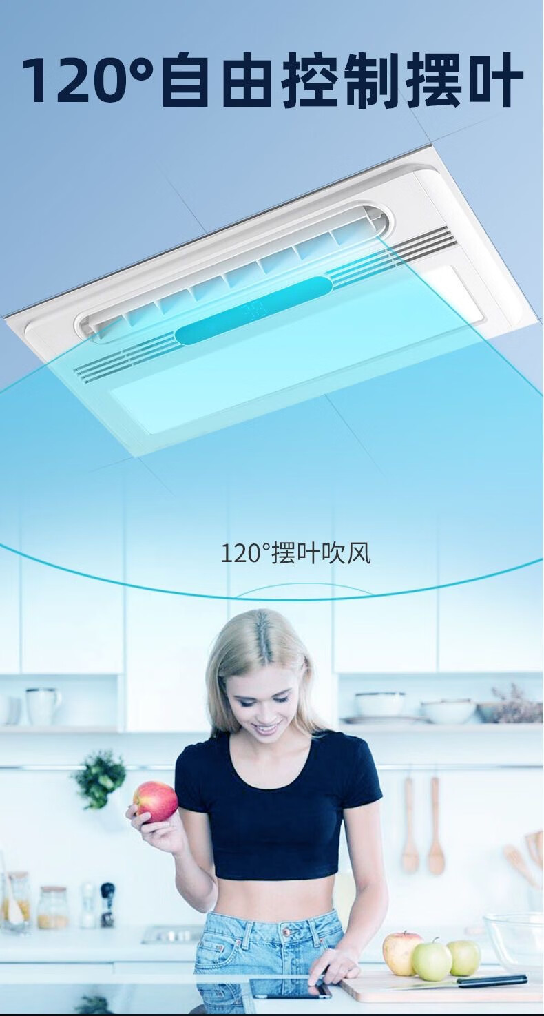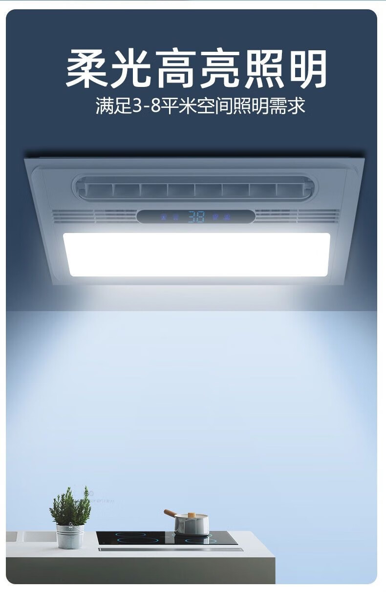 Opda Kitchen Cooler Embedded Lighting Ventilation Two-in-One Air Conditioner Integrated Ceiling Electric Fan Cooler Cooler Upgraded Three Motors Double Outlet Cooler + Remote Control + Bluetooth