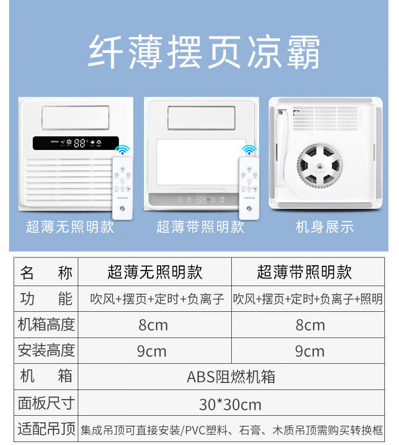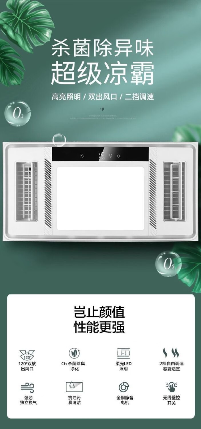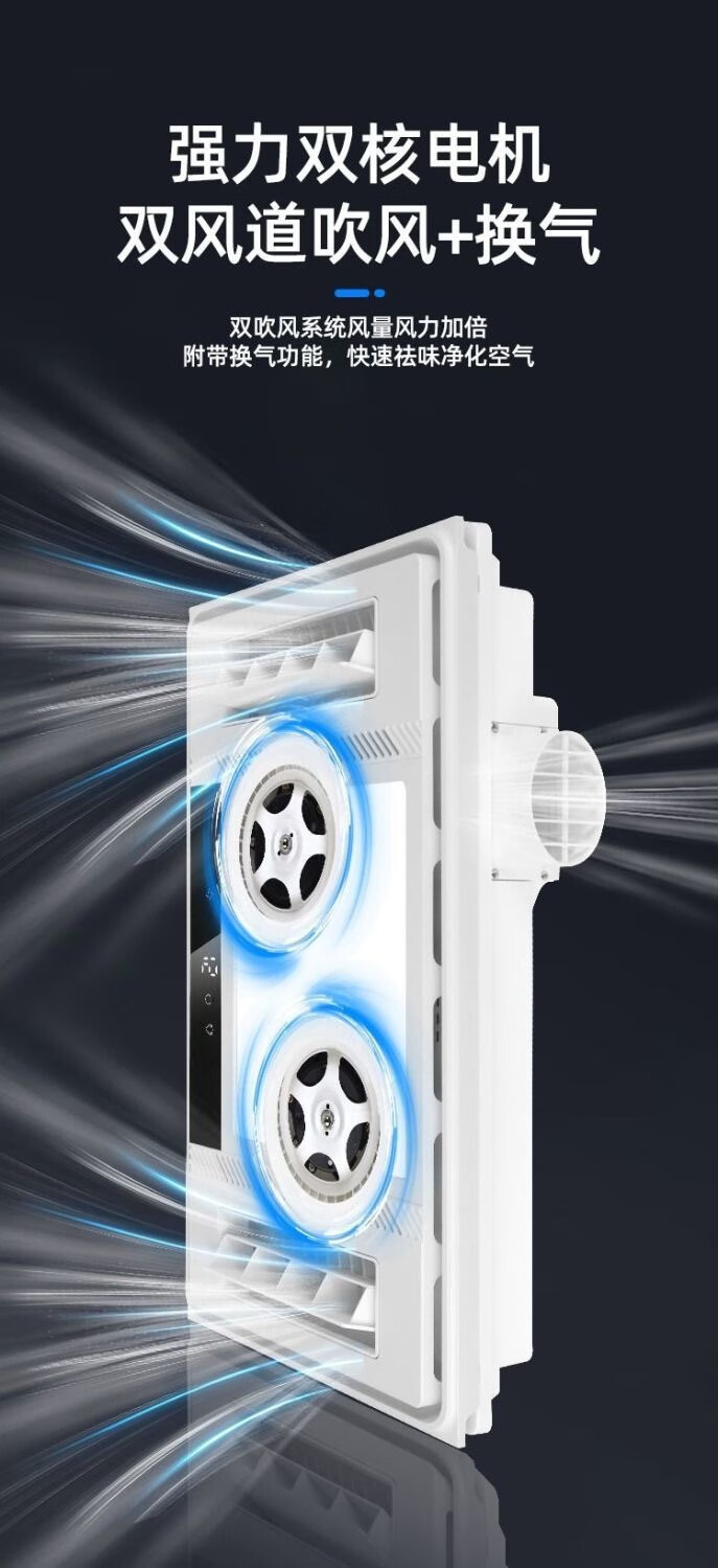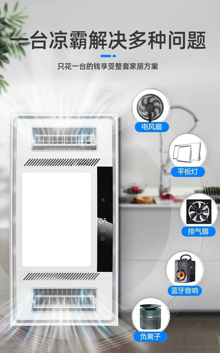Opda Kitchen Cooler Embedded Lighting Ventilation Two-in-One Air Conditioner Integrated Ceiling Electric Fan Cooler Cooler Upgraded Three Motors Double Outlet Cooler + Remote Control + Bluetooth