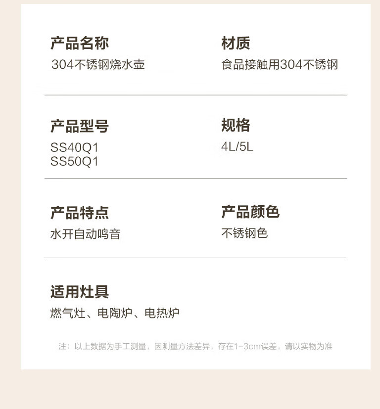 Ten Billion Bear 304L stainless steel kettle large capacity household commercial gas kettle induction cooker tea kettle kettle 5L 5000ml