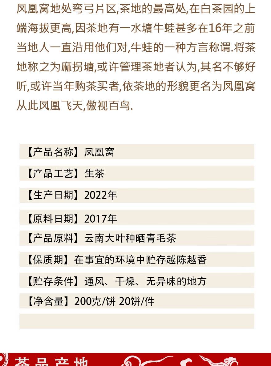 Longrui Tea Longrui Tea 2017 Phoenix Nest Raw Tea 200g/piece Pu'er Tea Raw Tea Pure Dry Storage Yiwu Ancient Tree