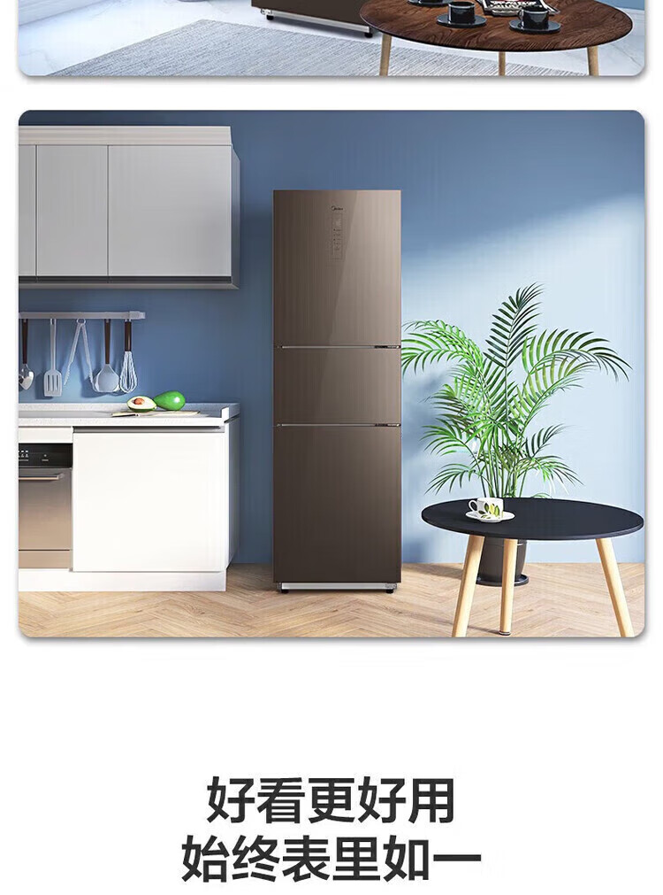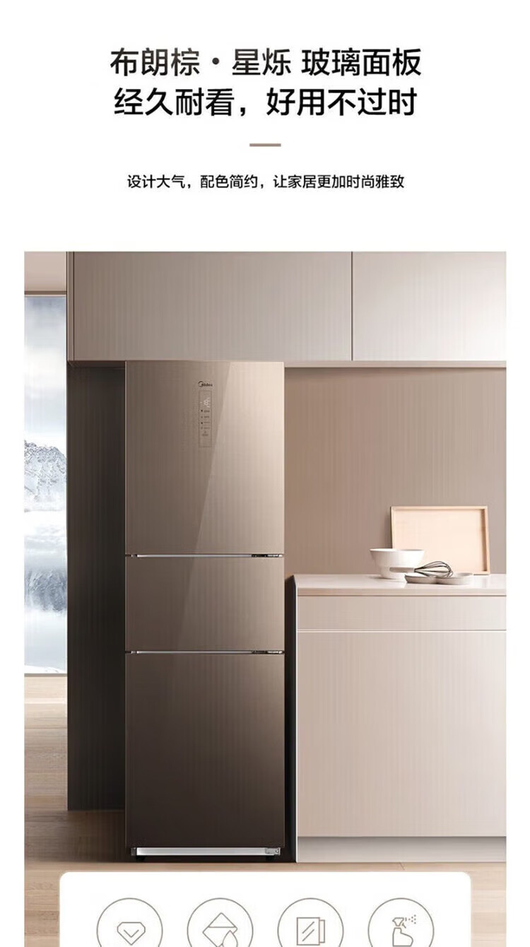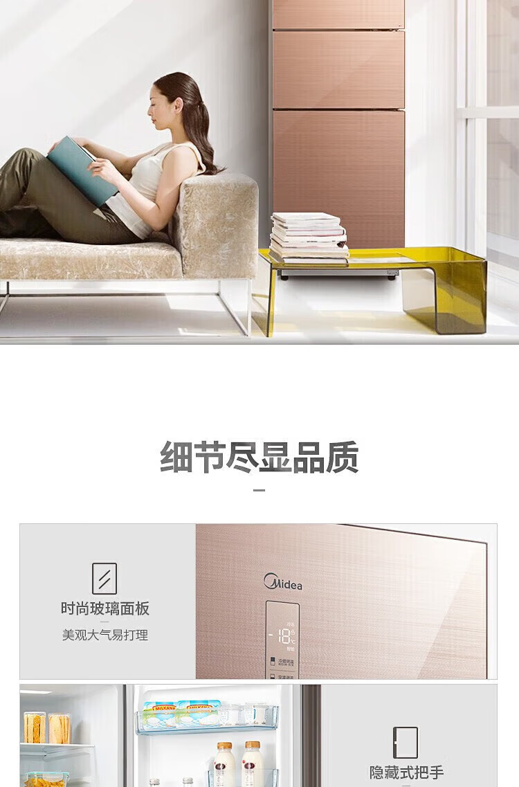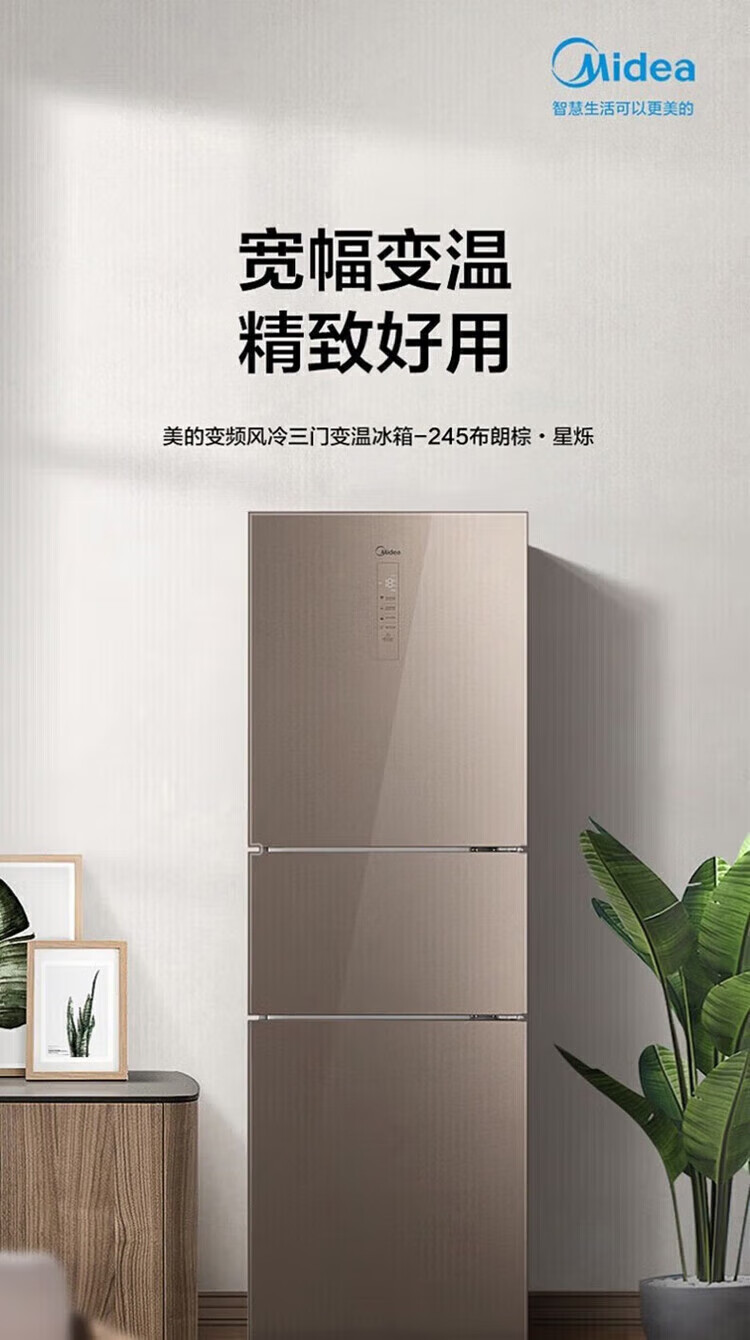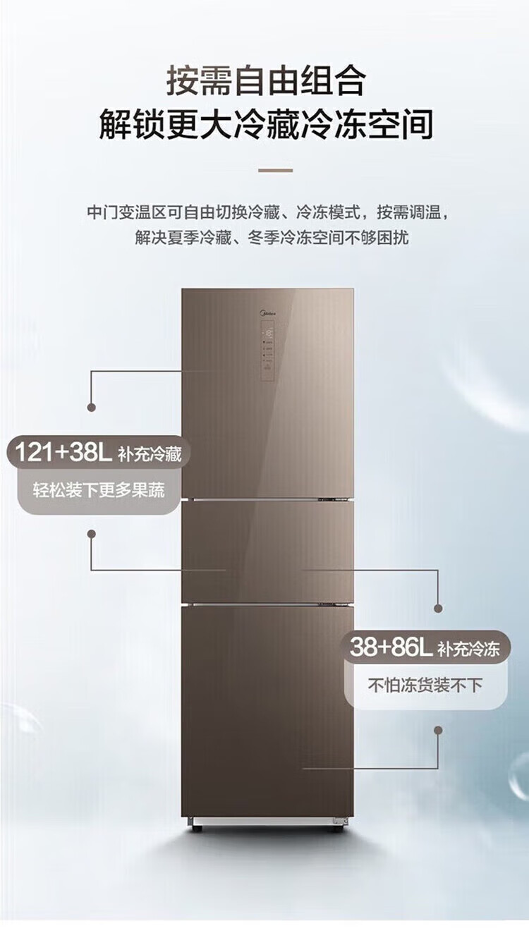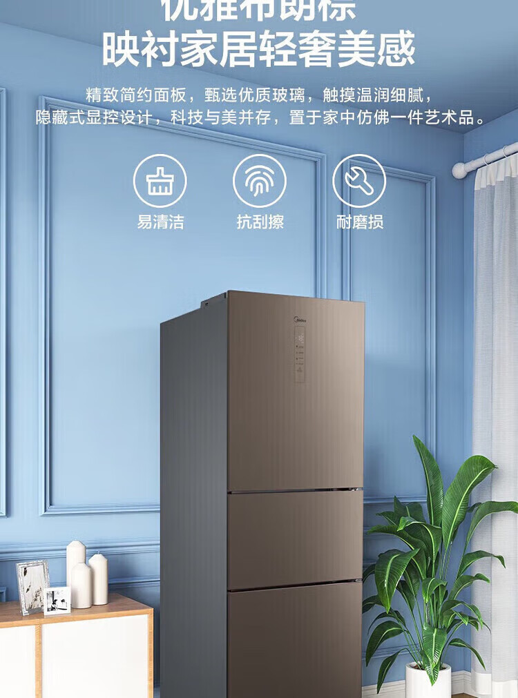 Midea air-cooled frost-free dual frequency conversion BCD-245WTGPM Brown Brown Star Sparkle