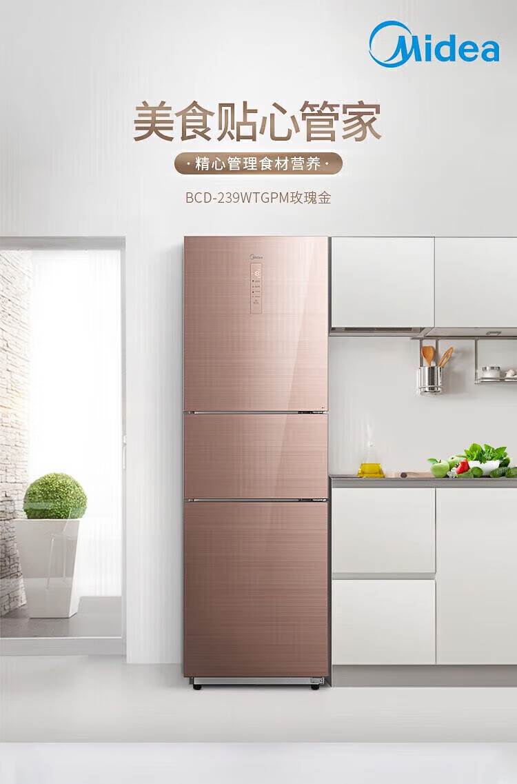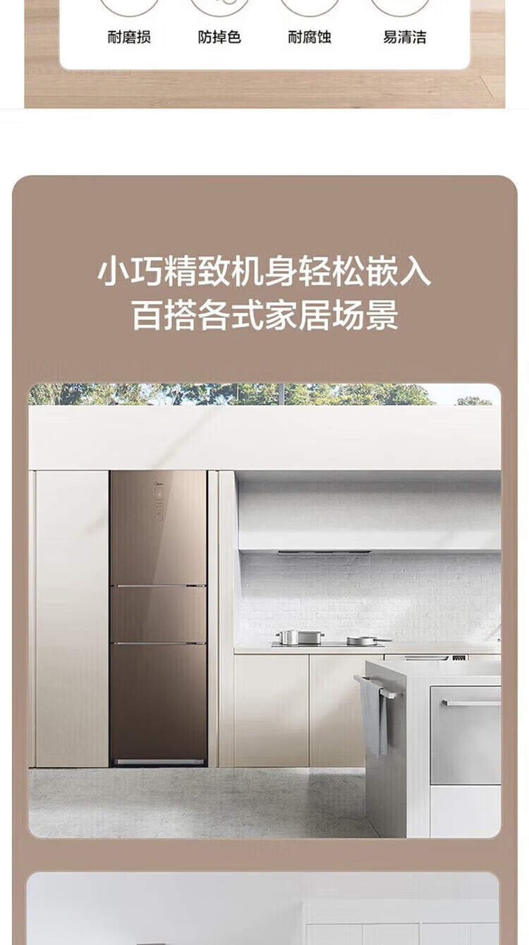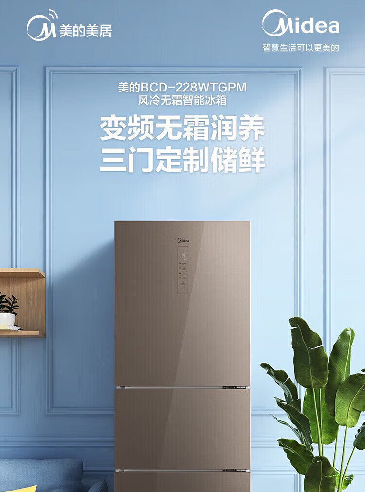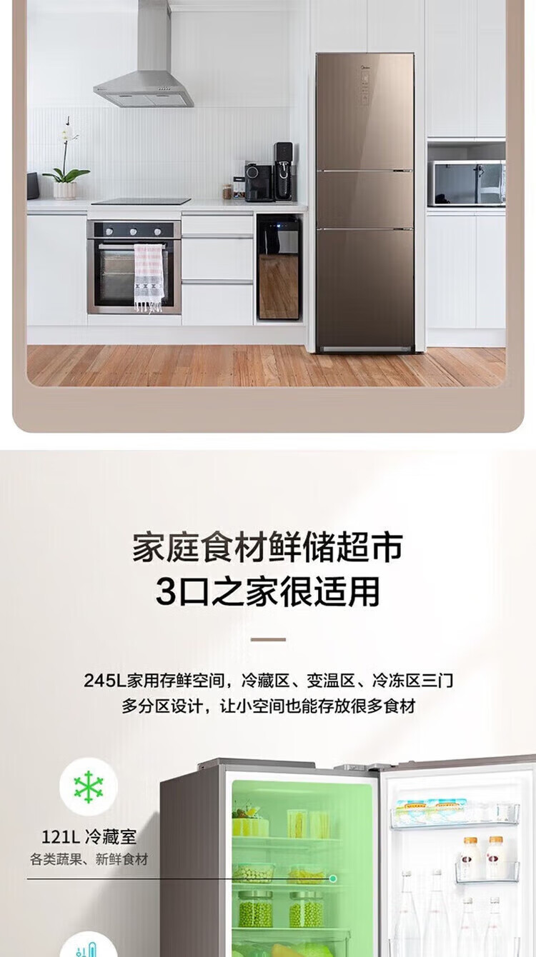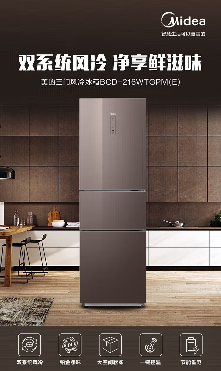 Midea air-cooled frost-free dual frequency conversion BCD-245WTGPM Brown Brown Star Sparkle