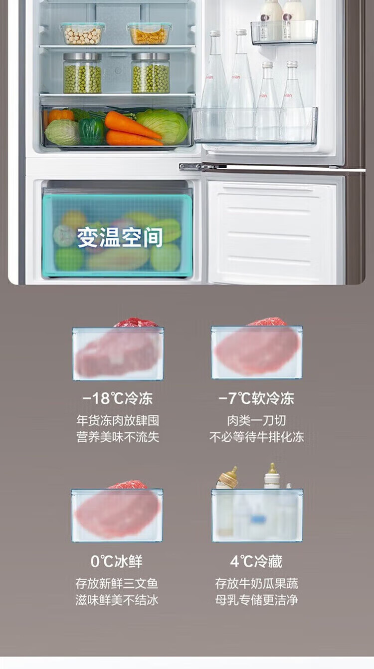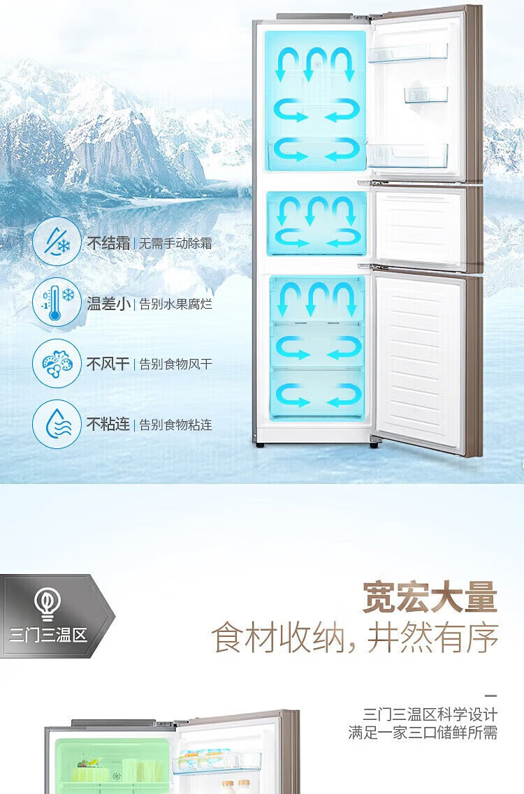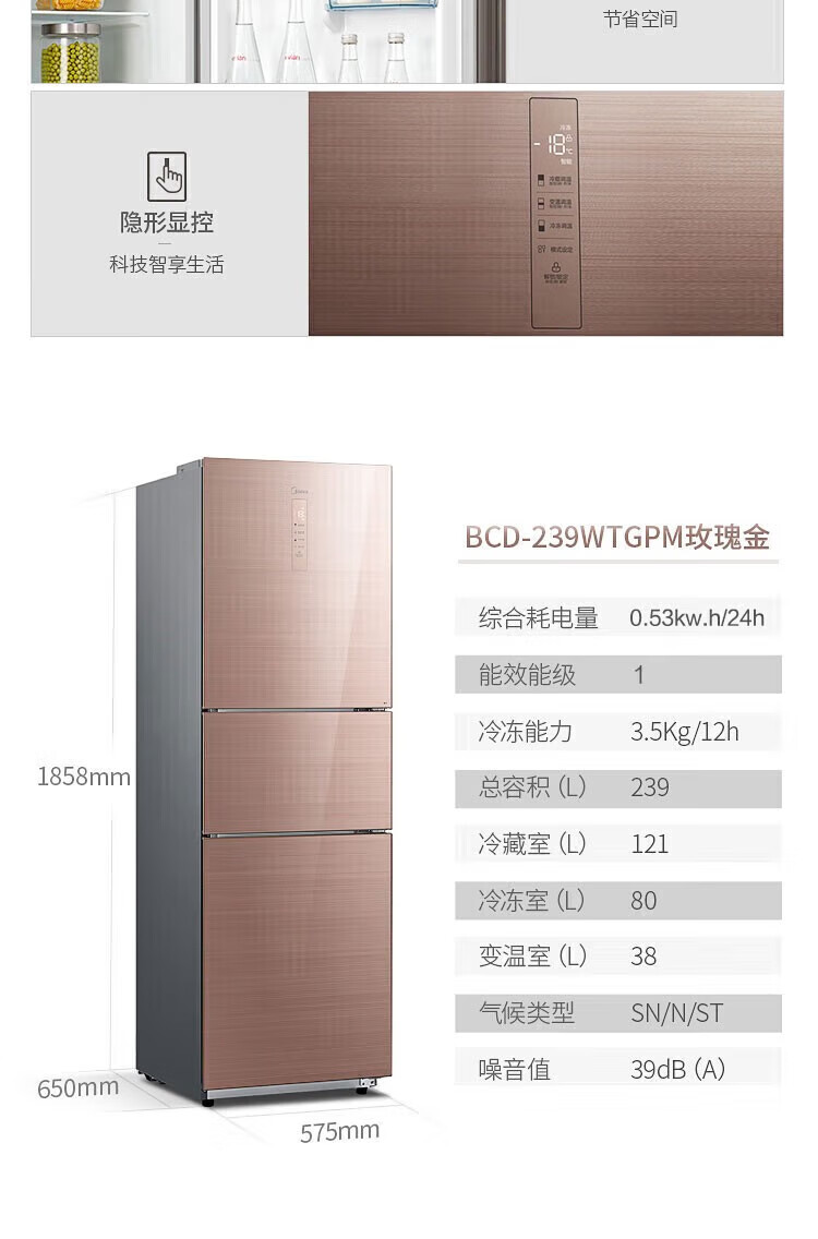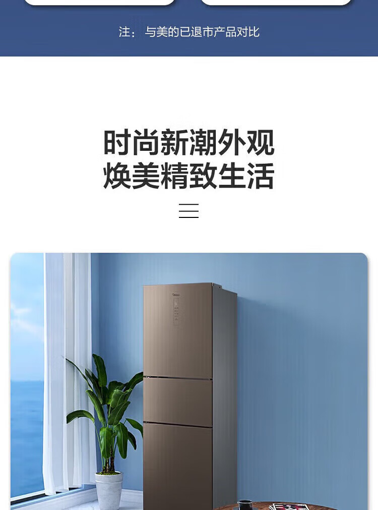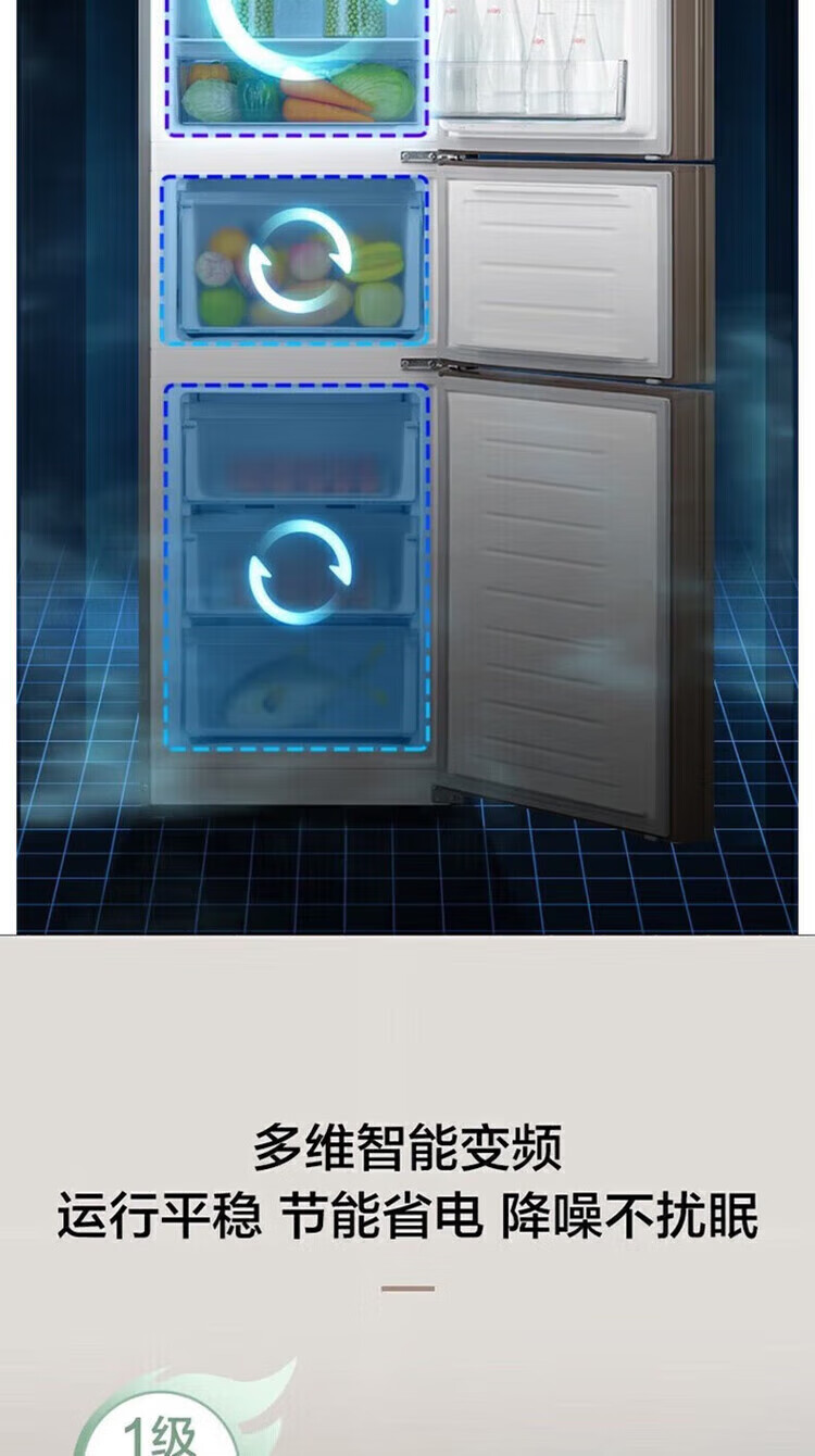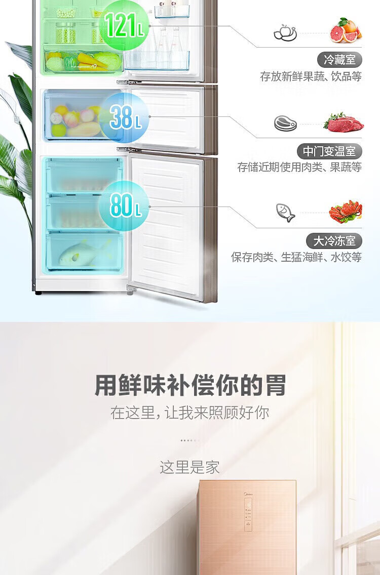Midea air-cooled frost-free dual frequency conversion BCD-245WTGPM Brown Brown Star Sparkle