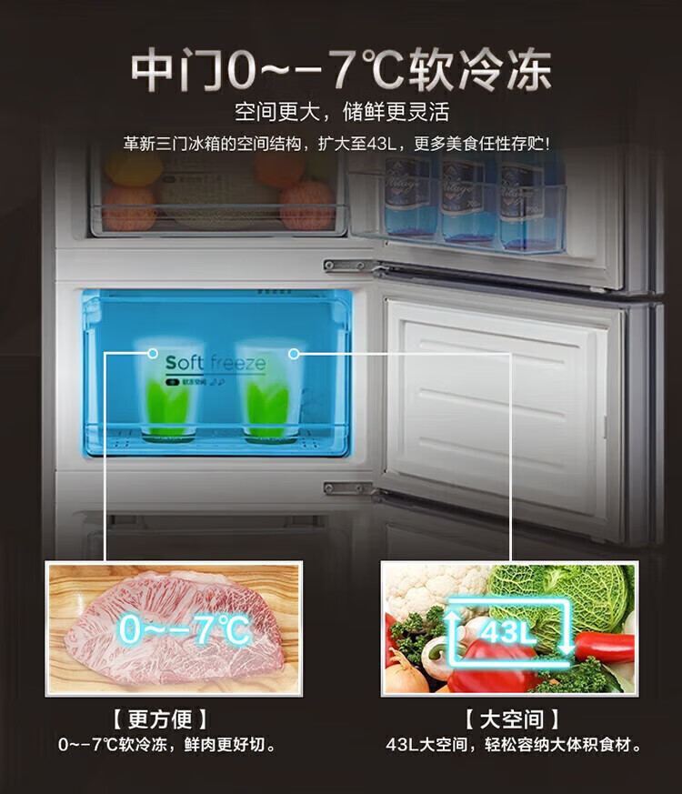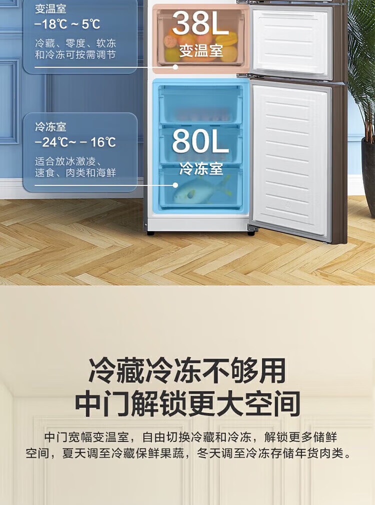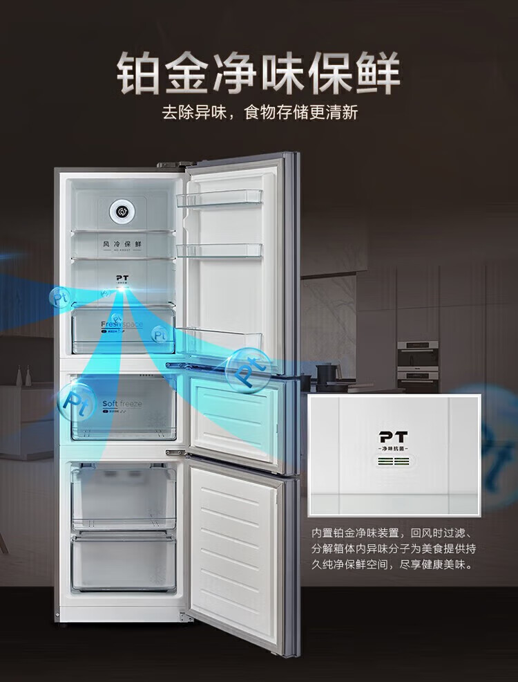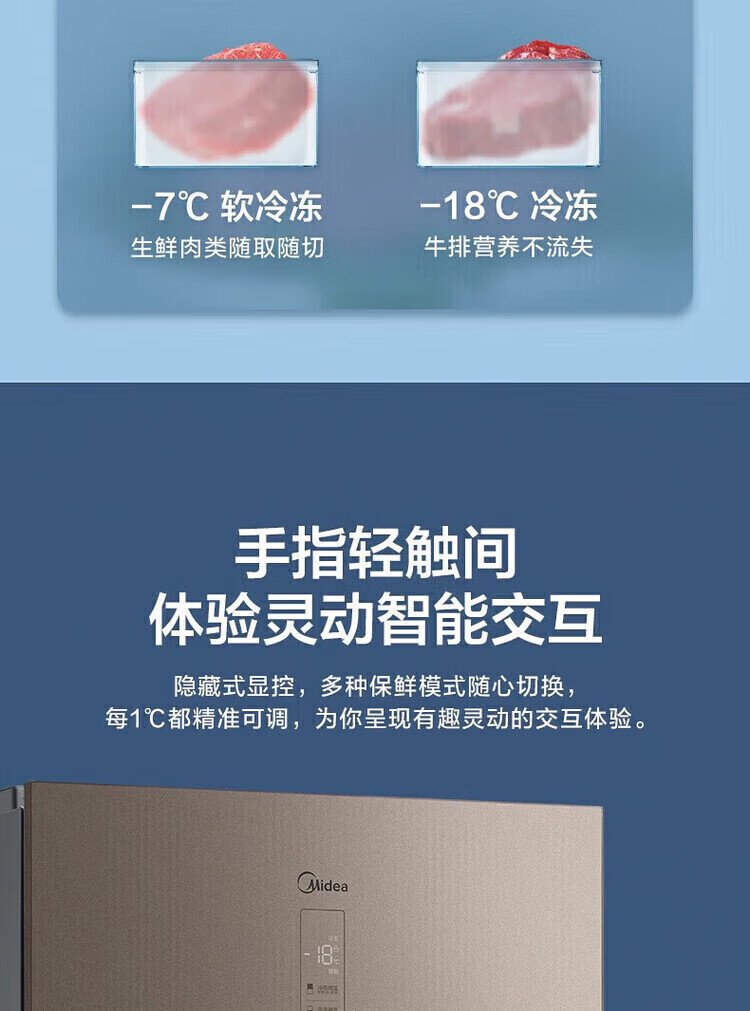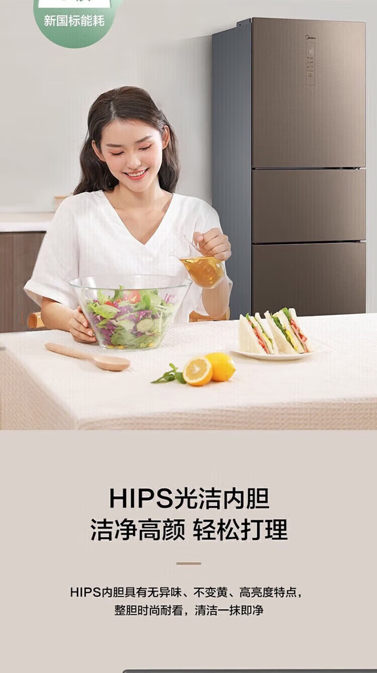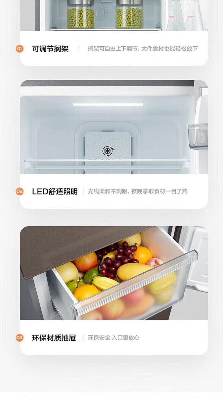 Midea air-cooled frost-free dual frequency conversion BCD-245WTGPM Brown Brown Star Sparkle