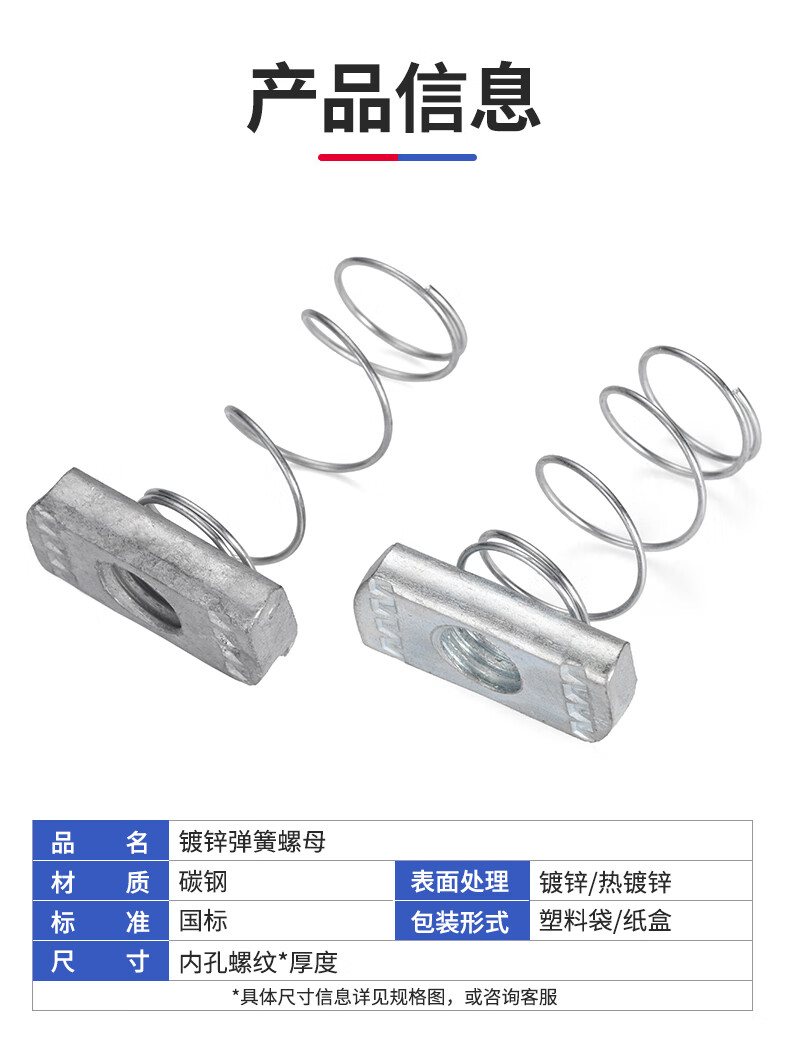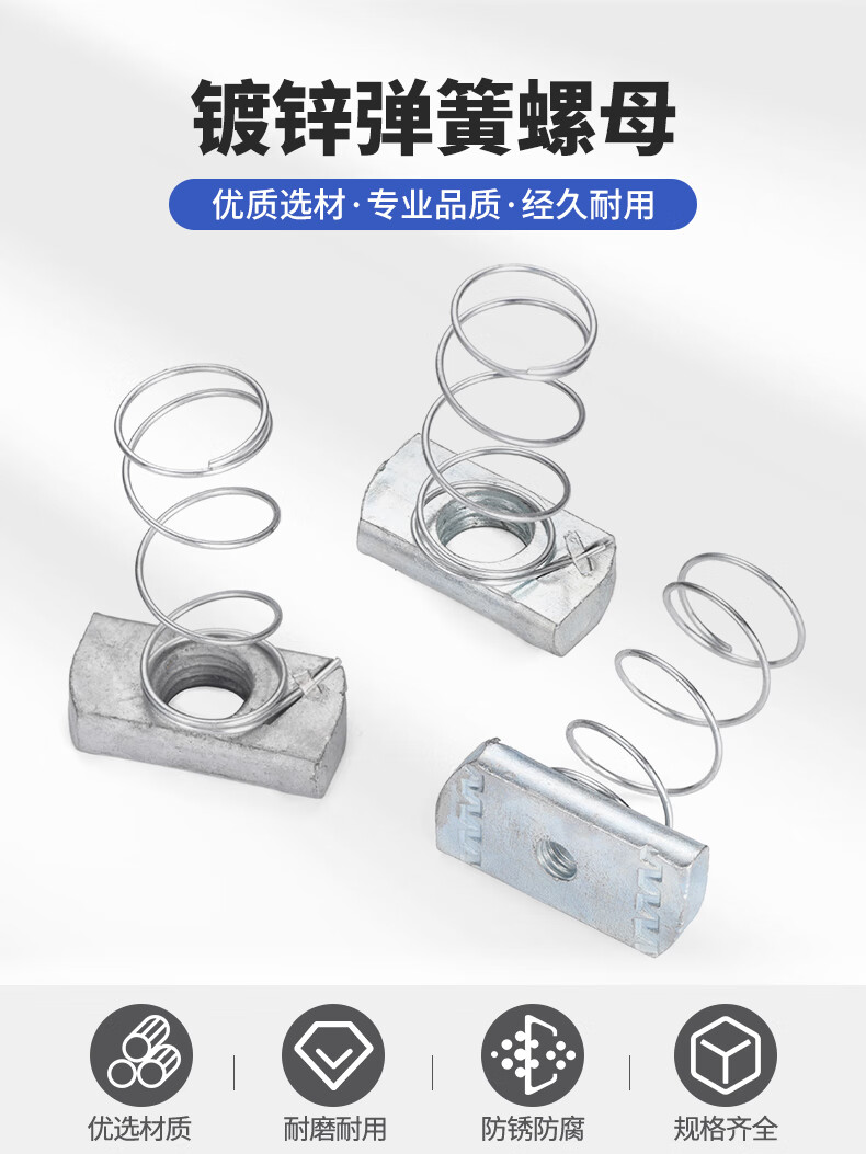 JINGGONG galvanized spring nut C-shaped steel accessories rectangular square iron with spring spring nut M6M8M10M12 galvanized M10*8 (10 pieces)