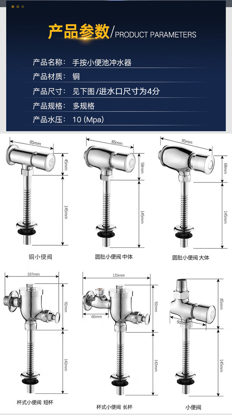 Jinshiluo K5475 hand-operated urinal flusher, extended flushing valve, tube flushing sensor, delay valve, medium round belly urinal valve
