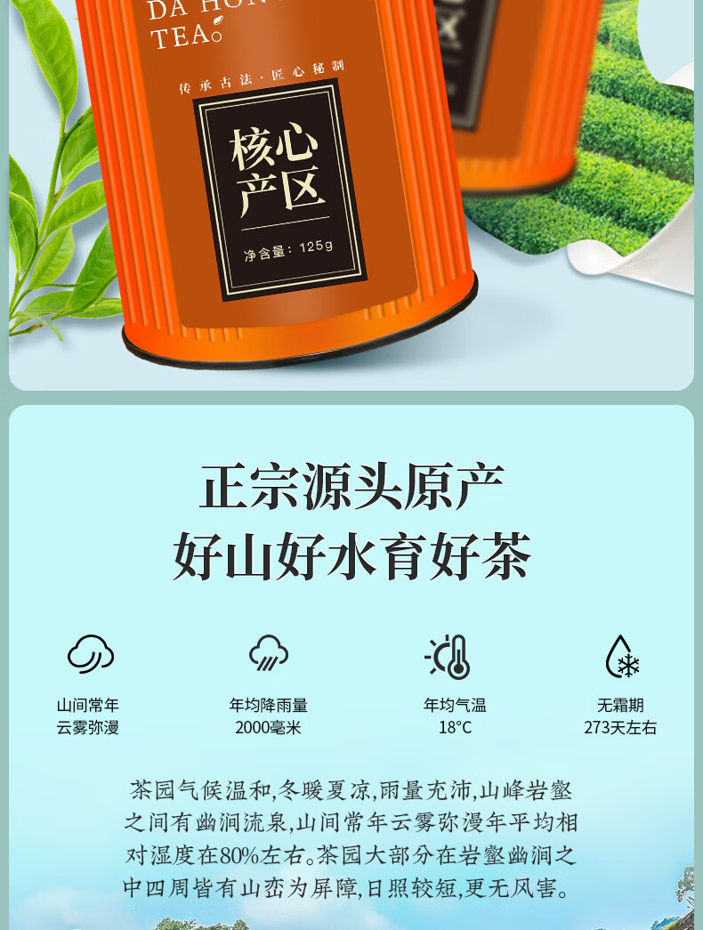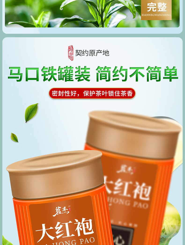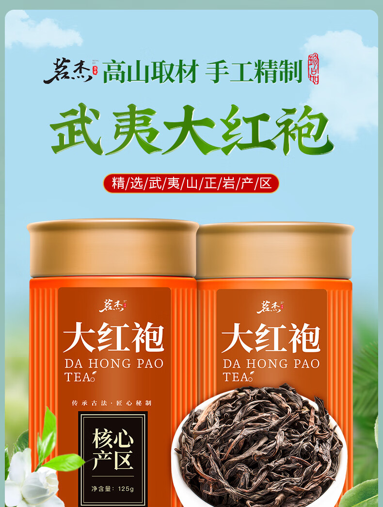 Mingjie Tea Dahongpao Oolong Tea Wuyi Mellow Alpine Raw Material Tea Canned Wuyishan Selected Dahongpao 125g*2 cans