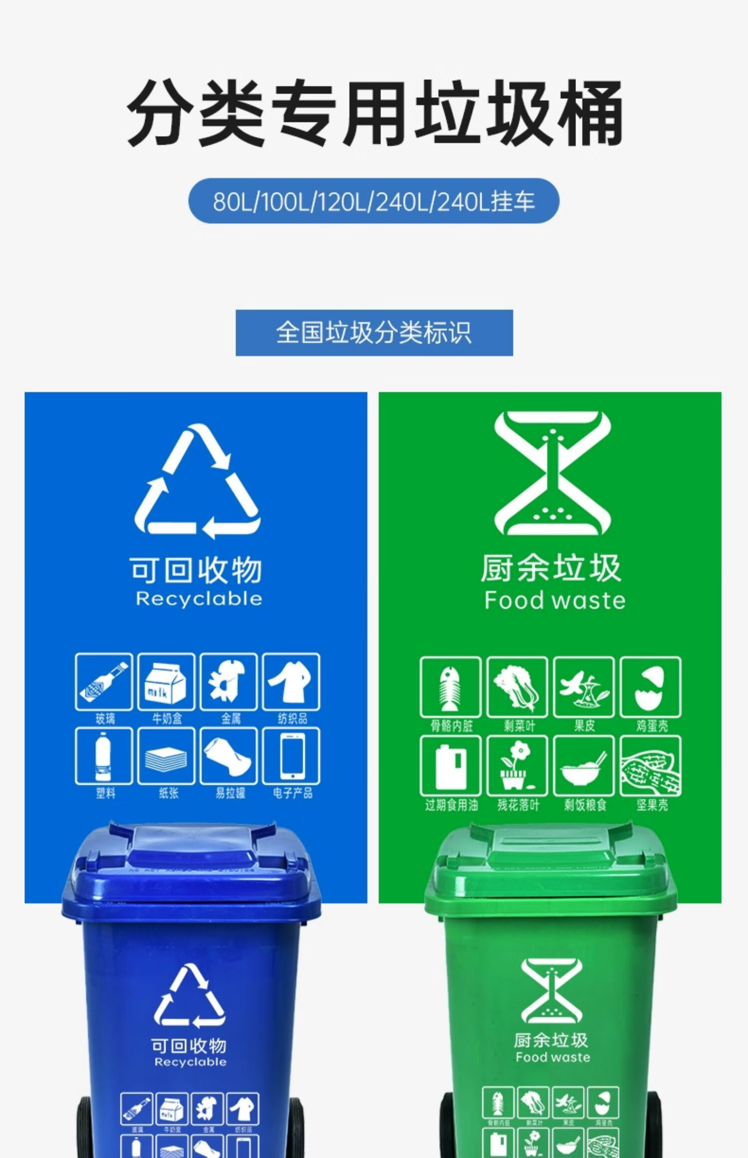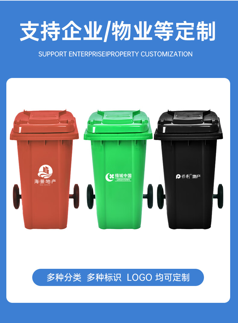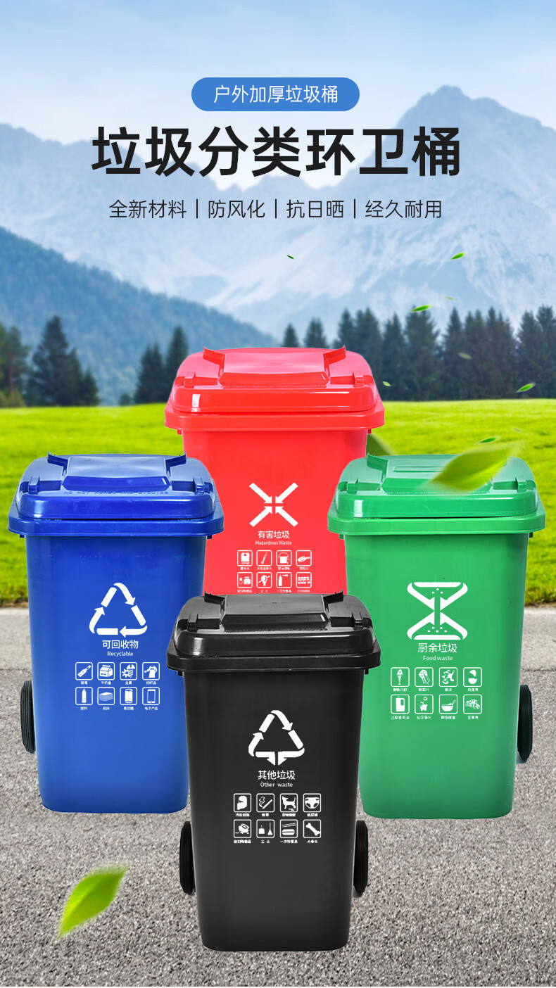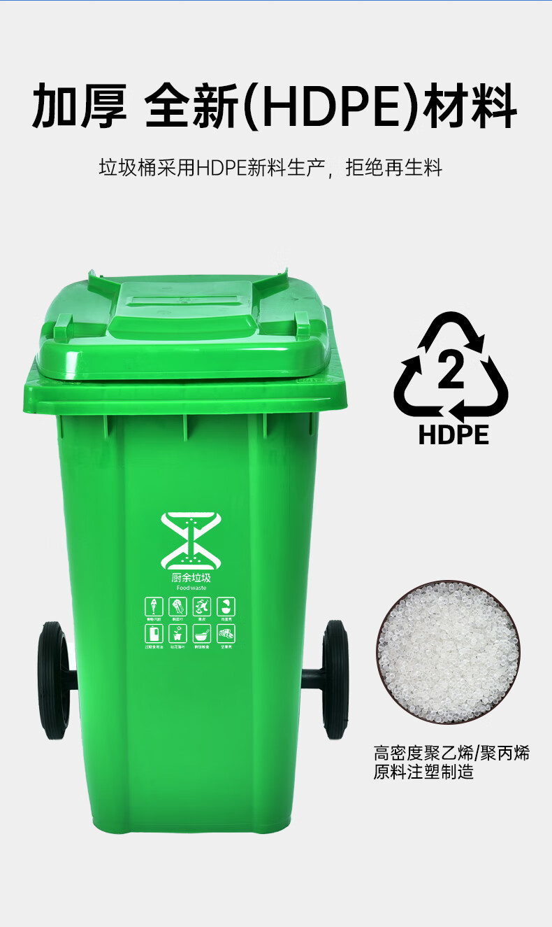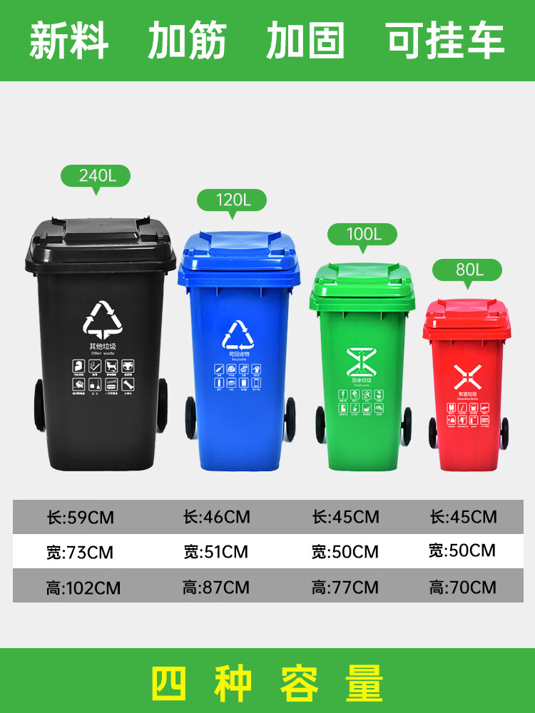 Outdoor trash can large kitchen commercial sanitation 240 liter large capacity catering food waste plastic trash can 120L 120 liter thick black other garbage