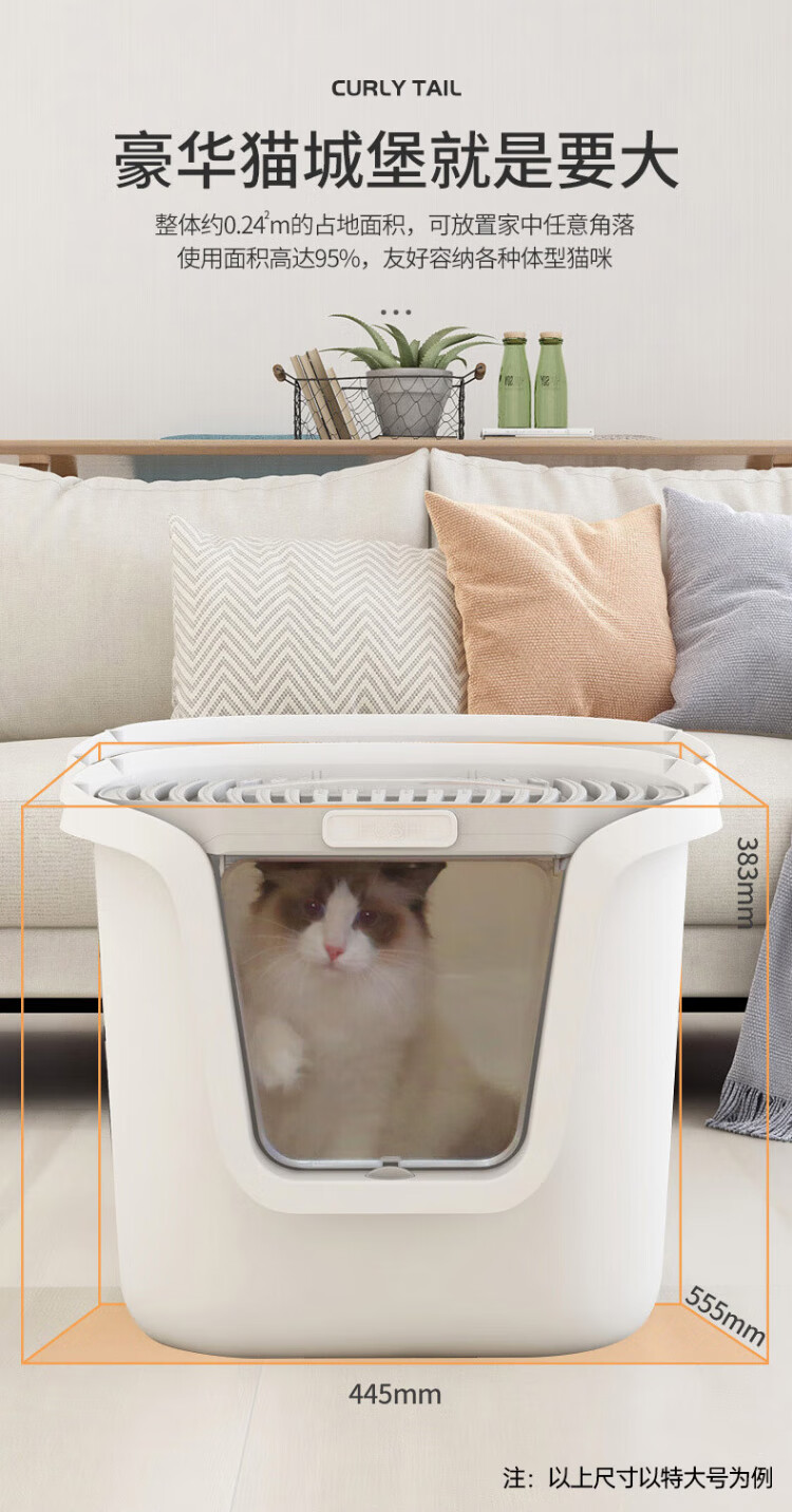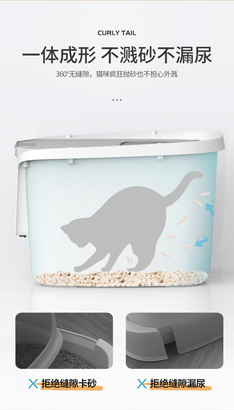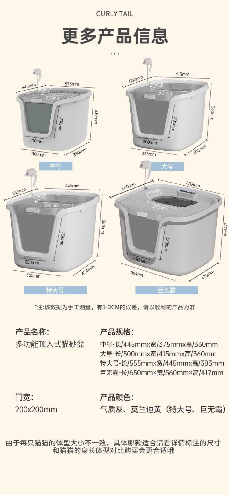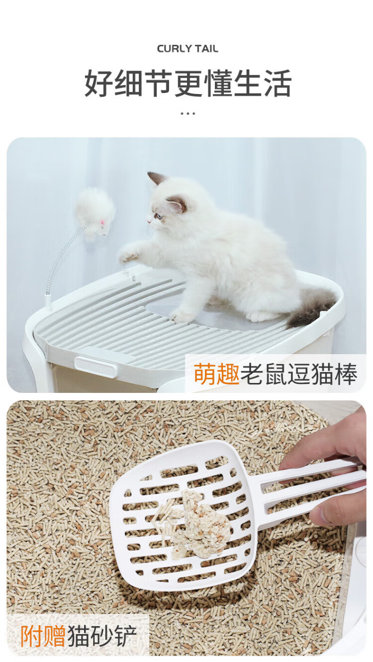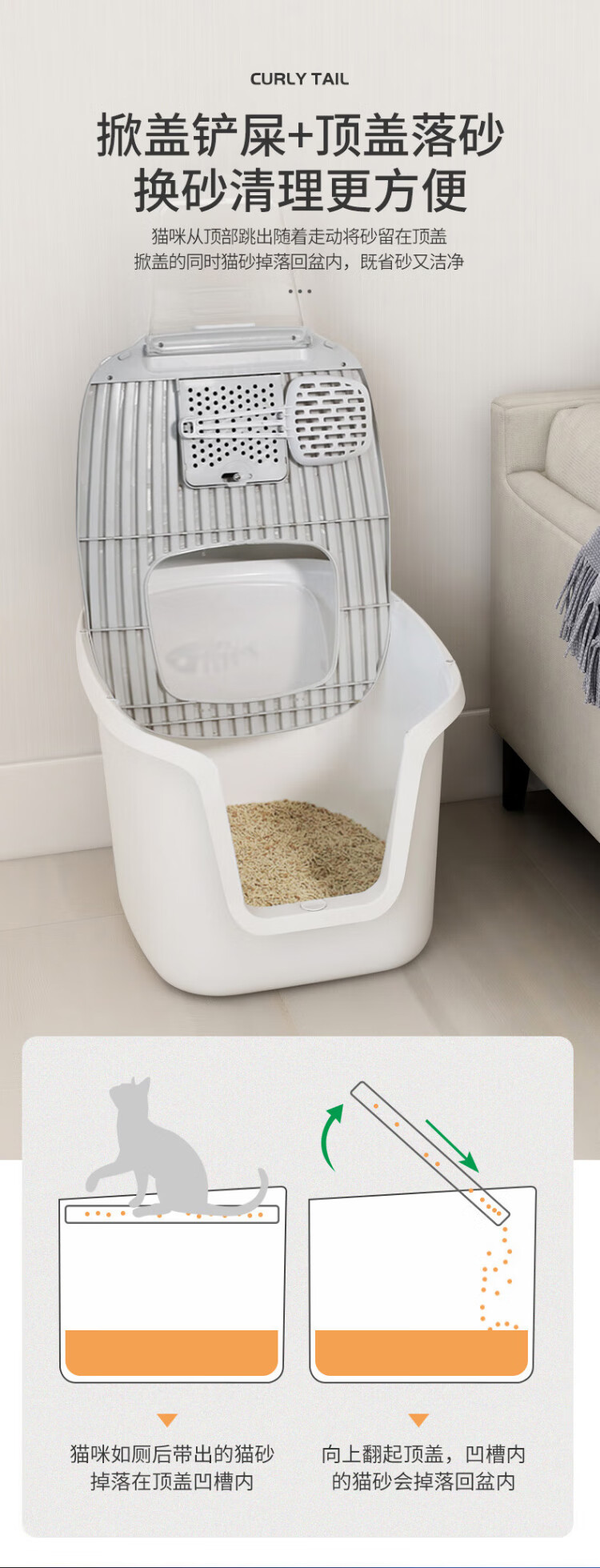 CURLY TAIL cat litter box fully enclosed extra-large cat toilet deodorant anti-splash top-entry extra-large cat litter box cat supplies PMAX temperament gray Big Mac 65cm large version