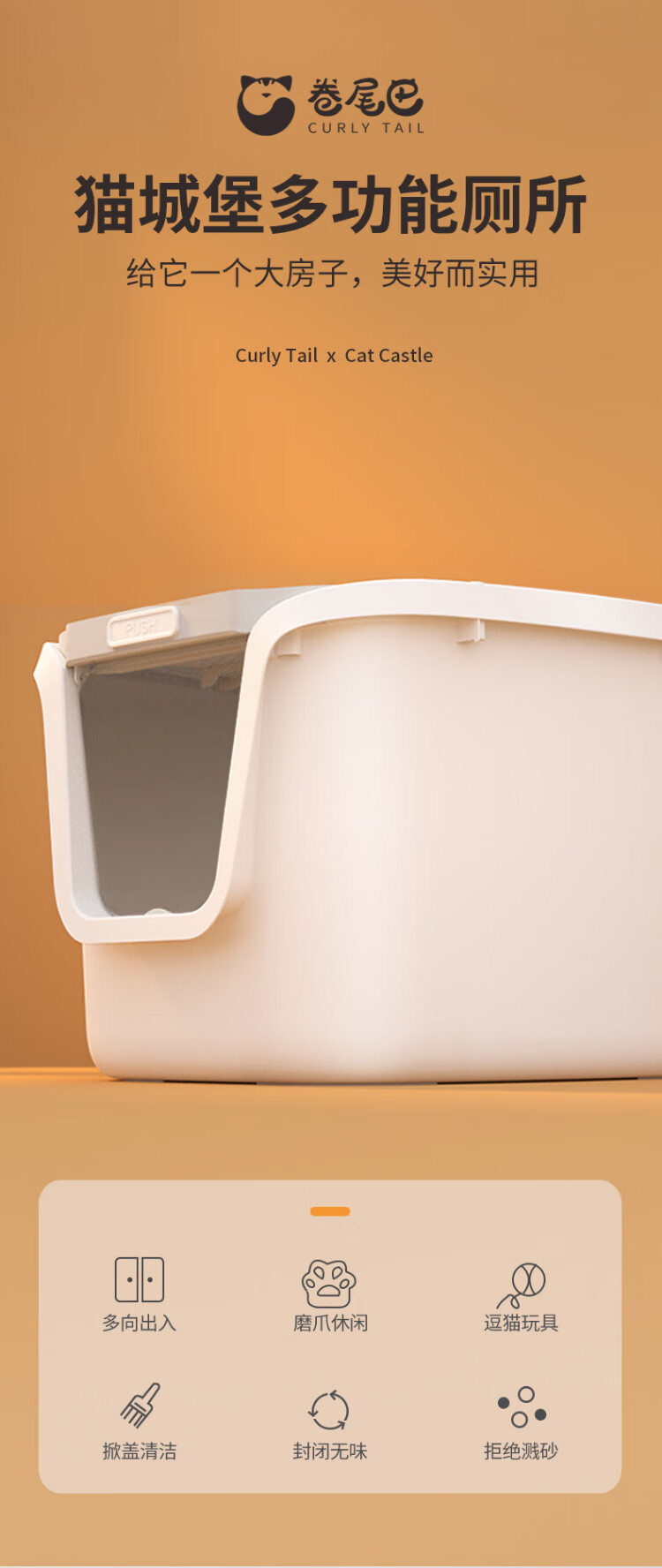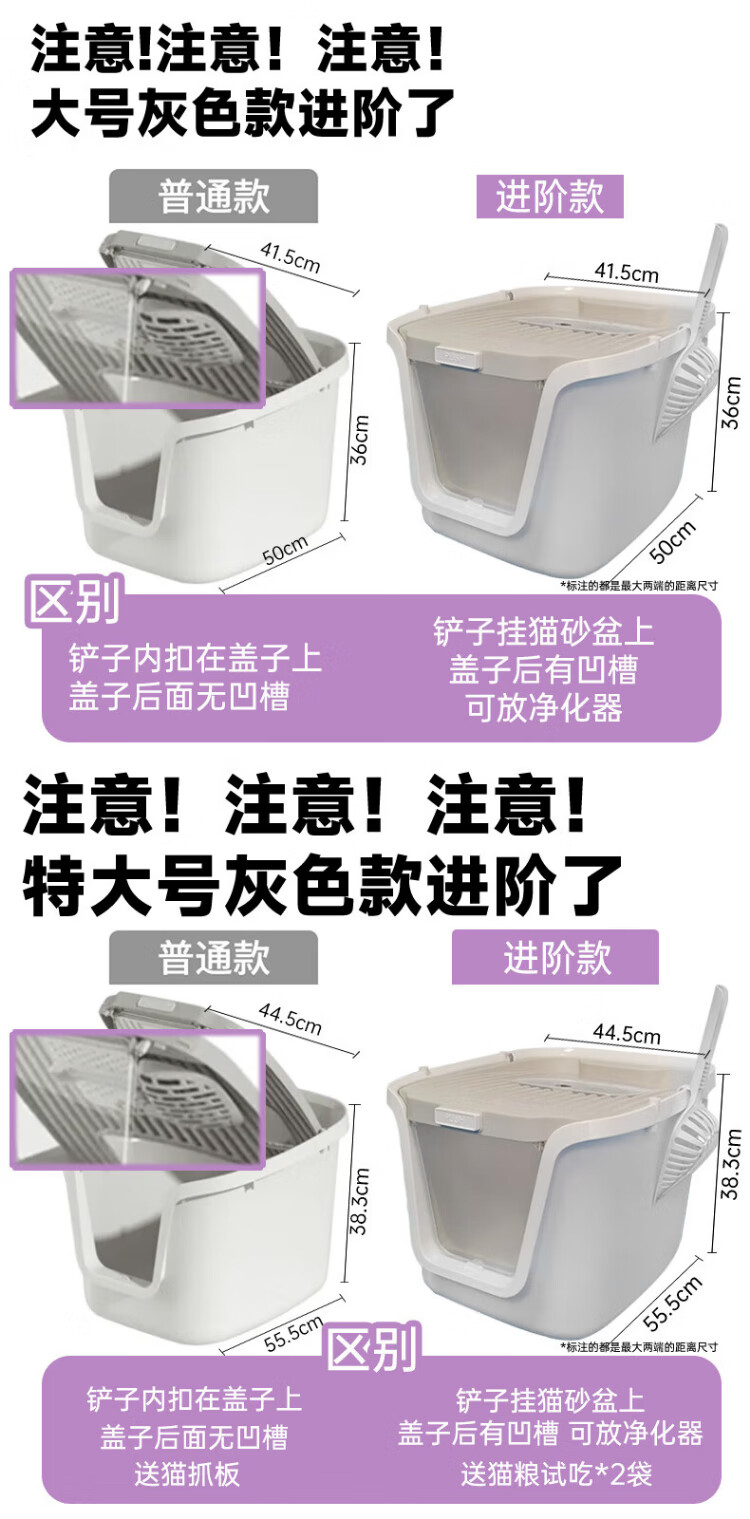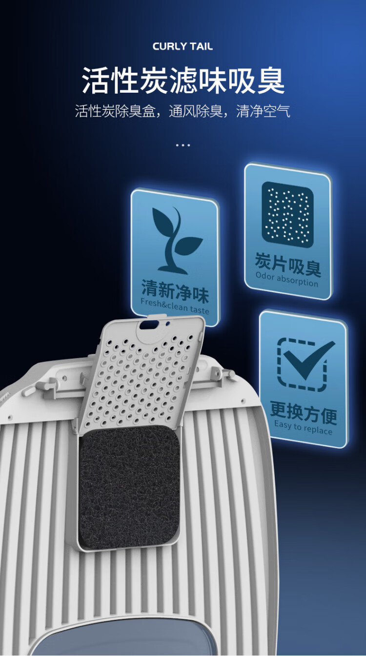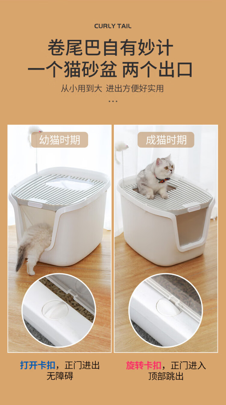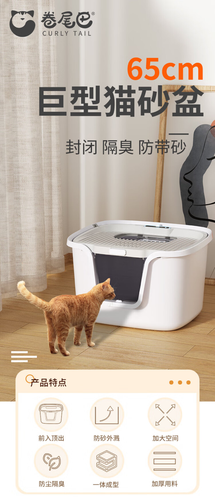 CURLY TAIL cat litter box fully enclosed extra-large cat toilet deodorant anti-splash top-entry extra-large cat litter box cat supplies PMAX temperament gray Big Mac 65cm large version
