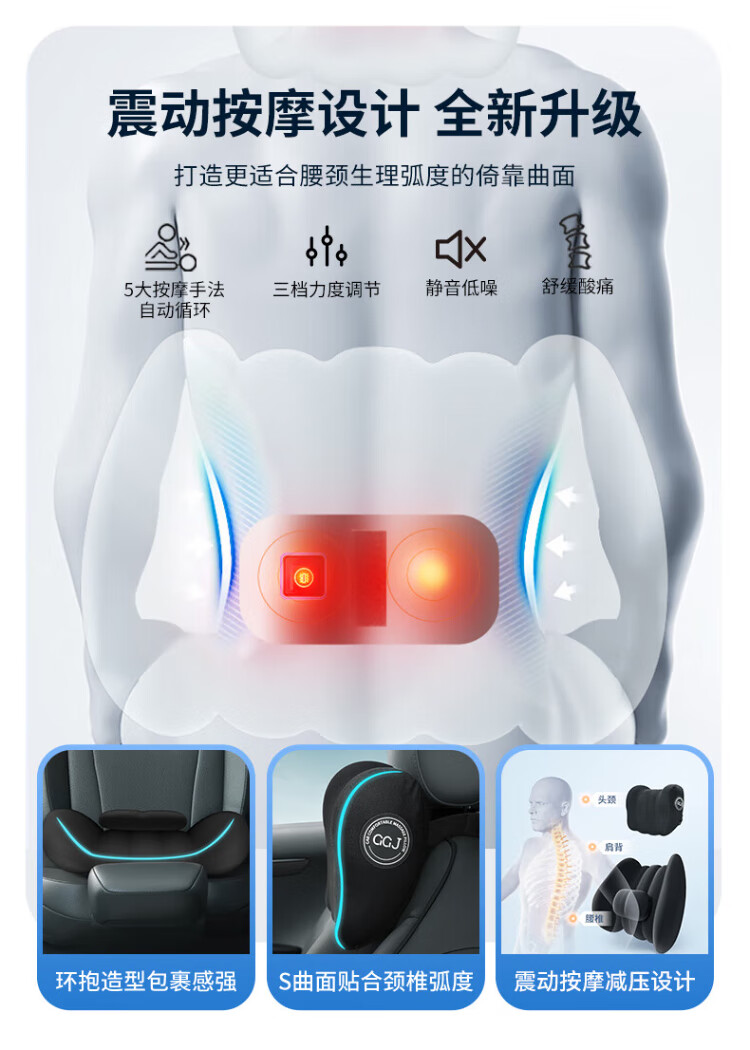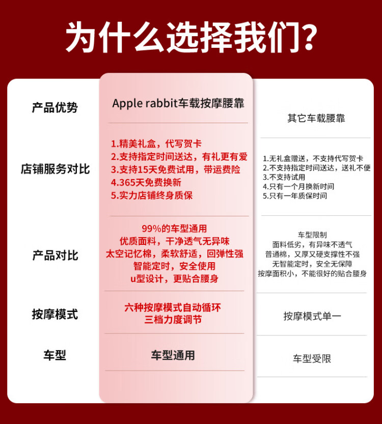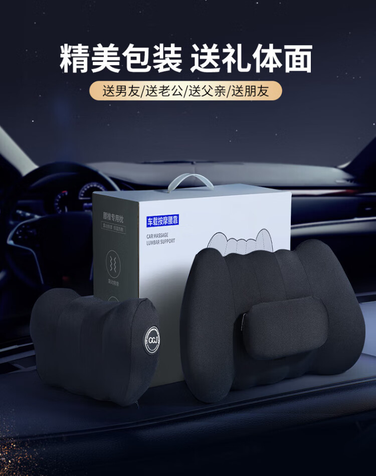 Apple Rabbit Valentine's Day gift for boyfriend, birthday gift for husband, father, boy, leader, car massage lumbar cushion for men, New Year and Spring Festival, high-end practical hot compress waist, increased hot compress type - headrest and waist support set - ghostwriting greeting card