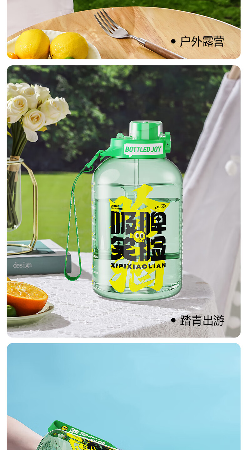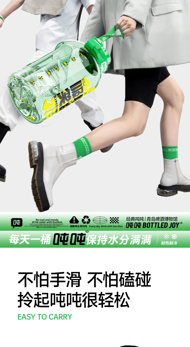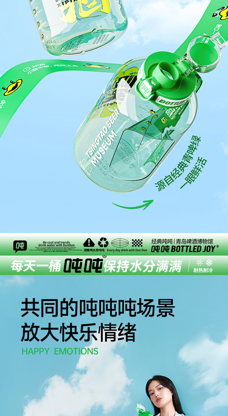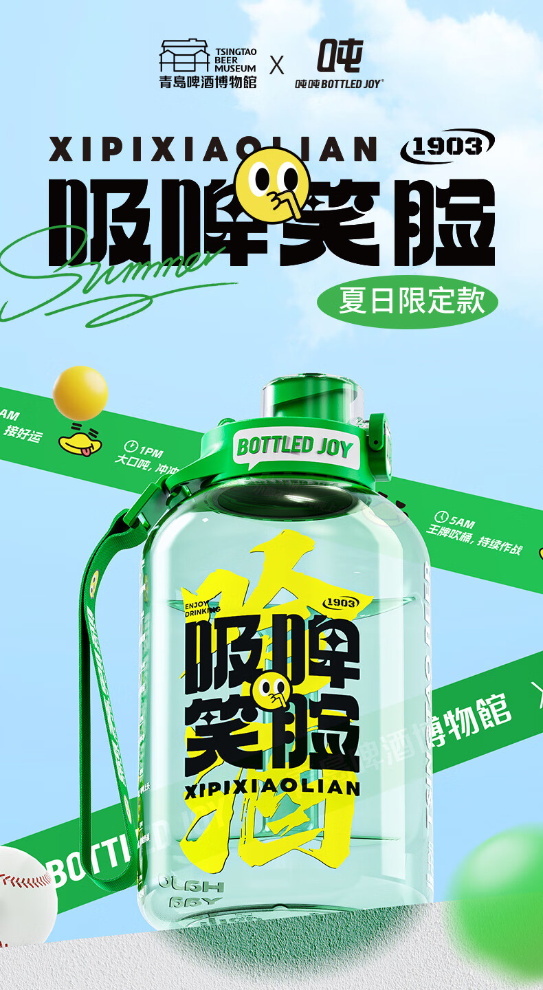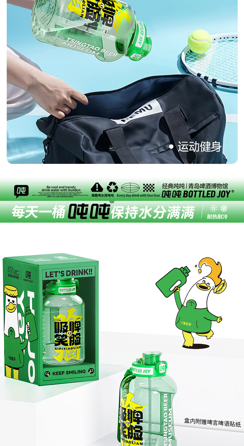 Tons of sports water cups, large-capacity sports kettles for men and women, fitness, tons of barrels, Tsingtao Beer Museum co-branded beer-sucking smiling face 1.5L