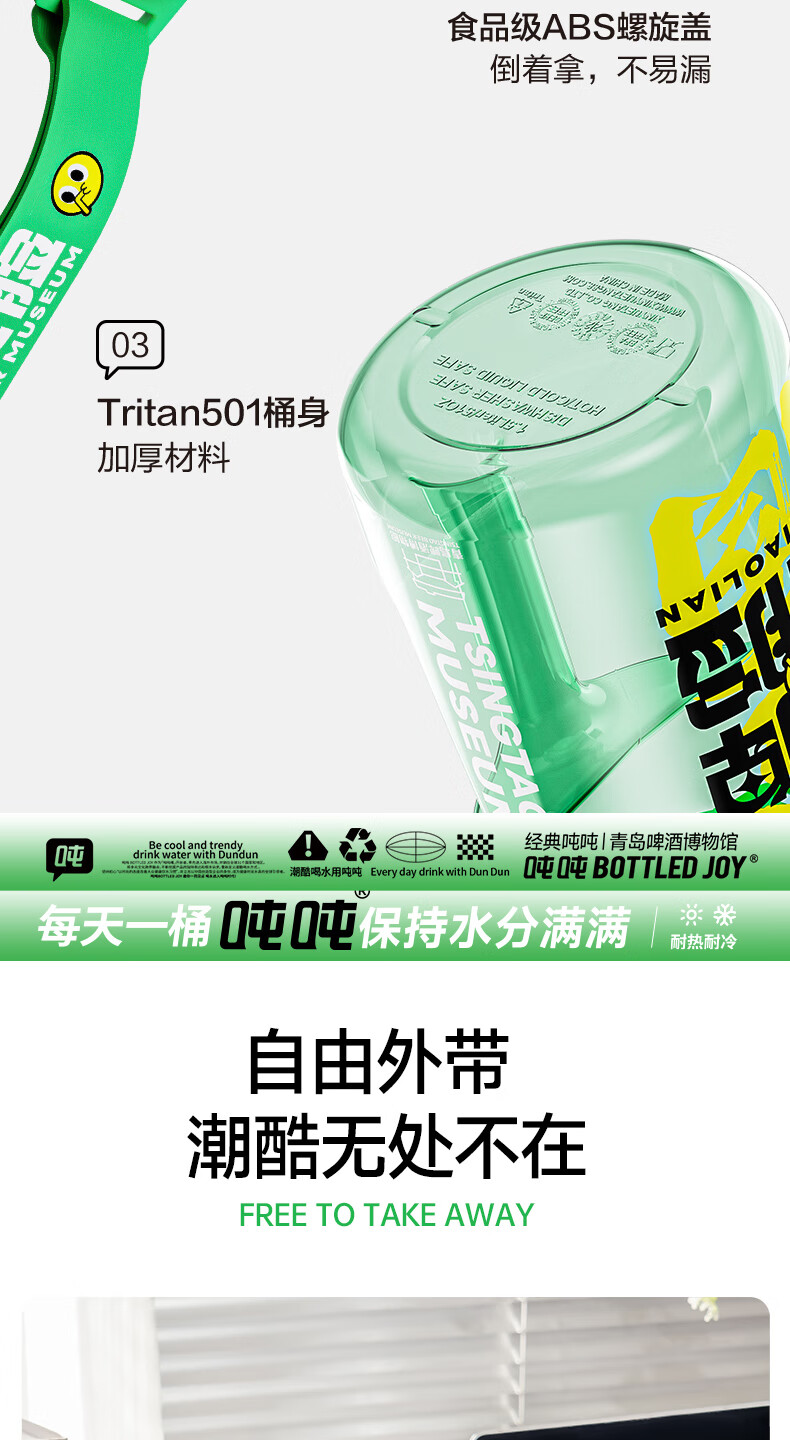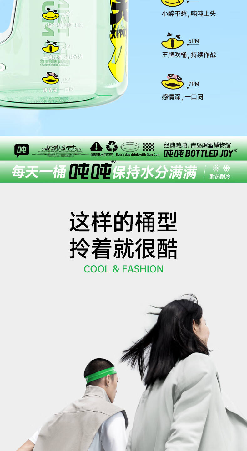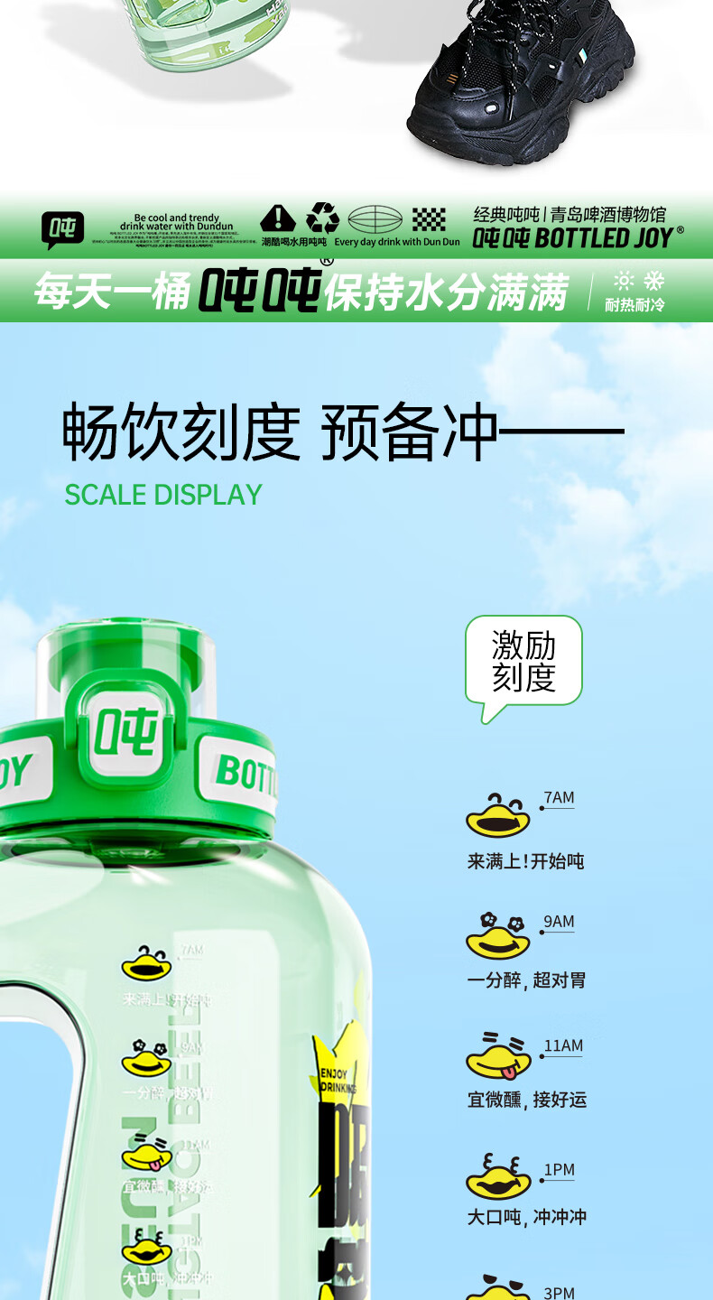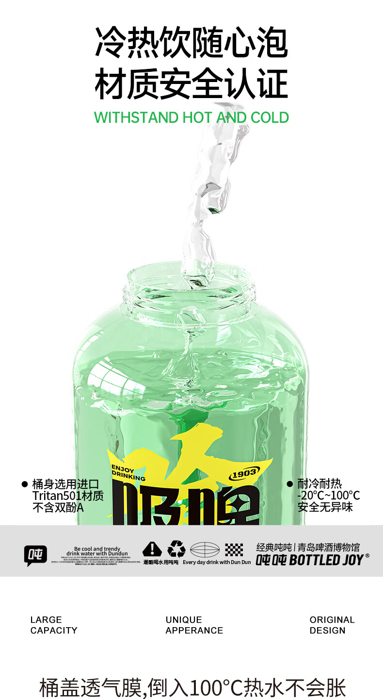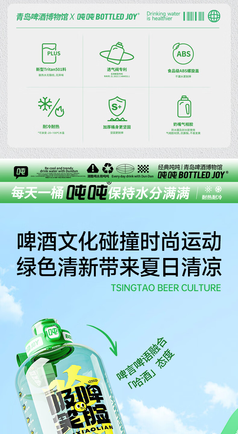 Tons of sports water cups, large-capacity sports kettles for men and women, fitness, tons of barrels, Tsingtao Beer Museum co-branded beer-sucking smiling face 1.5L