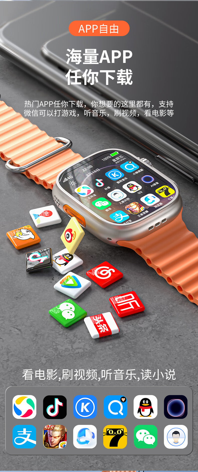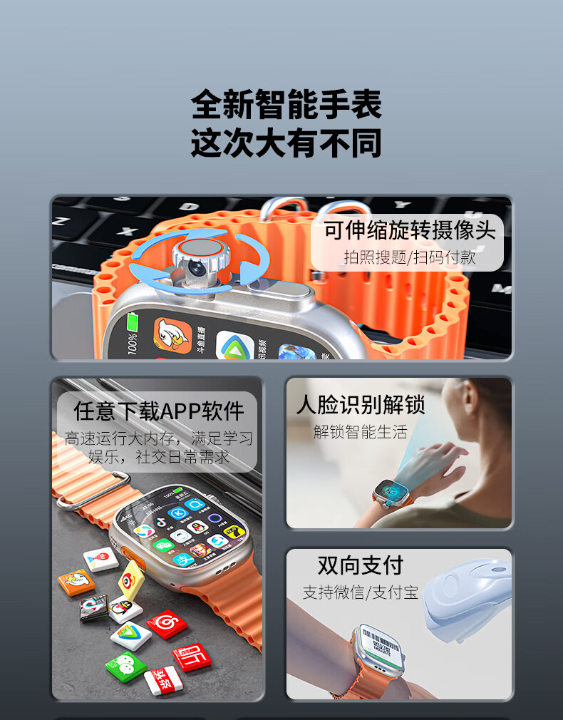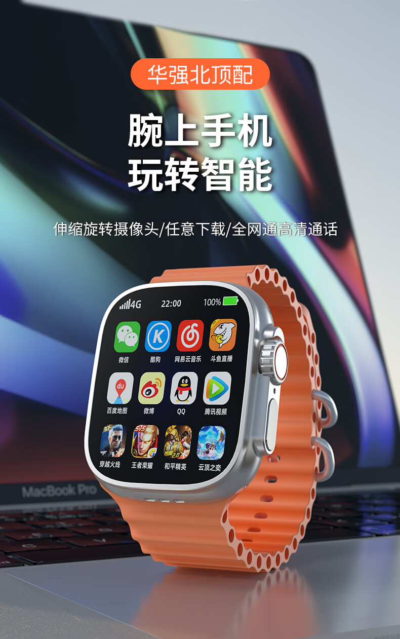 Smart phone watch Huaqiangbei S10Ultra cellular version 5G full network access card phone can video WeChat Tiktok multi-function adult long battery life junior high school students students Peak gold rotatable camera + full network access + any download