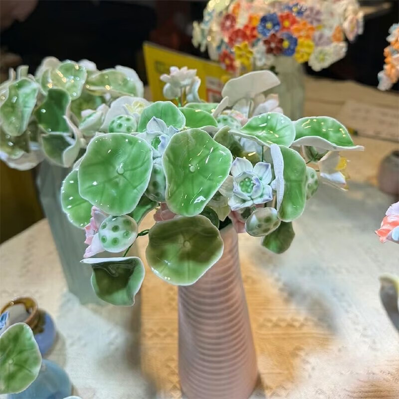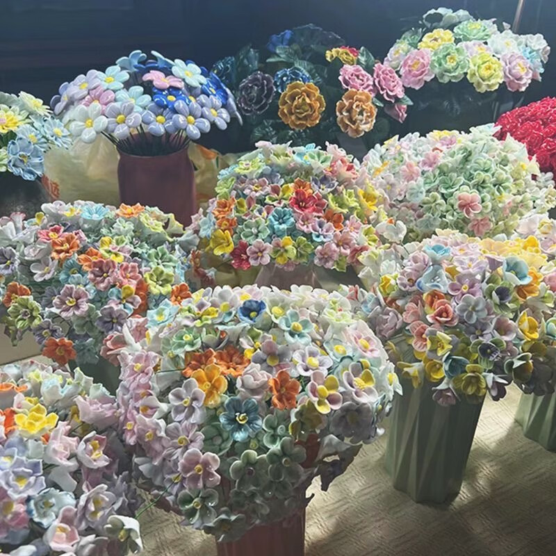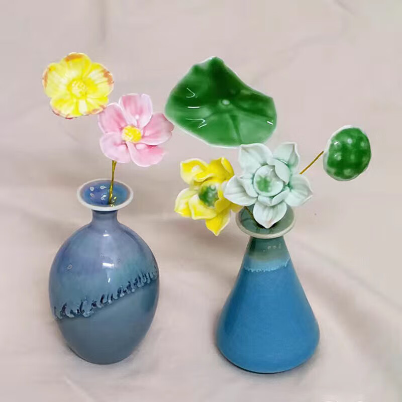 Jingdezhen handmade ceramic flower belt vase hand pinched ceramic flowers pure handmade simulation of immortal flowers 1 small vase does not include flowers