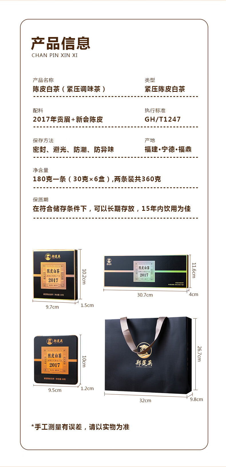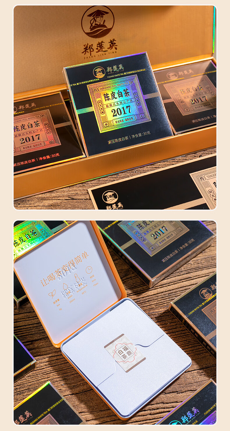 ZHENGLIANYING Zheng Lianying Tangerine Peel White Tea Authentic Alpine Fuding White Tea 2017 720g (four pack + gift bag + stuffy tea cup)
