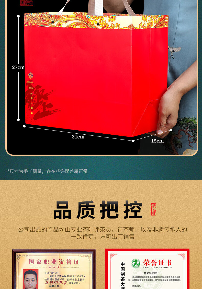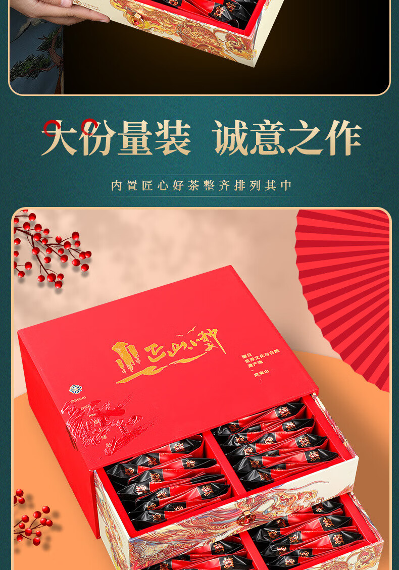 Qiangyun Lapsang Souchong Tea Gift Box, Strong Flavor Wuyishan Jinjunmei Black Tea, 500g for Elders during the Chinese New Year, Super Red Lapsang Souchong Gift Box, 500g