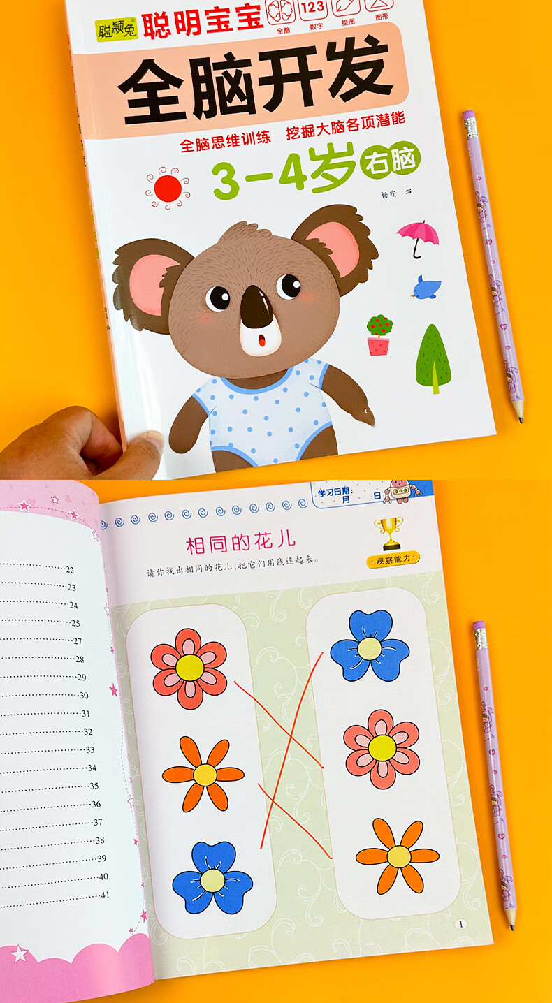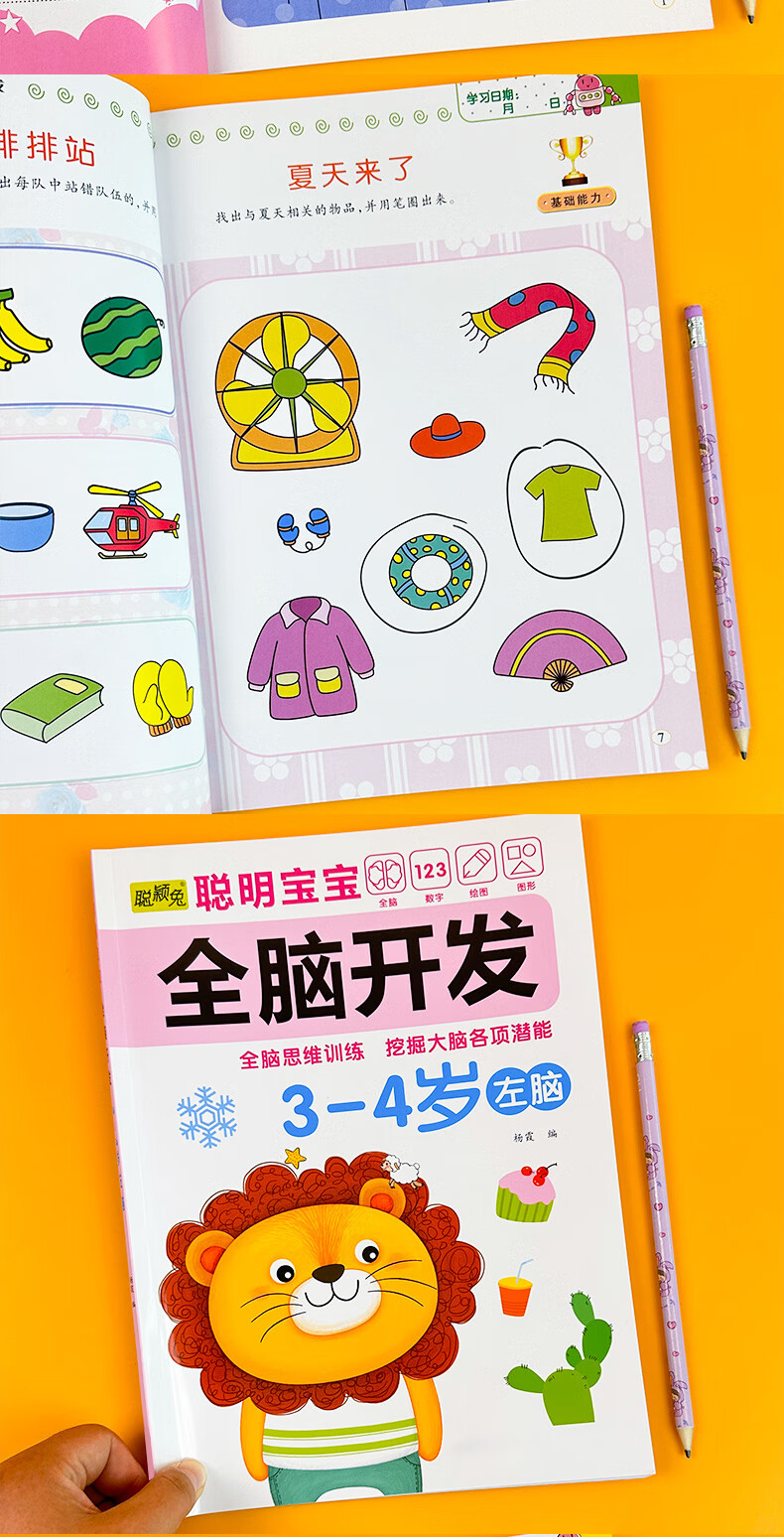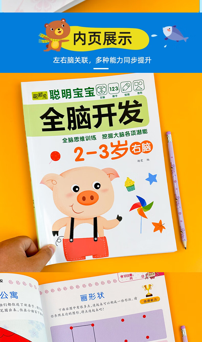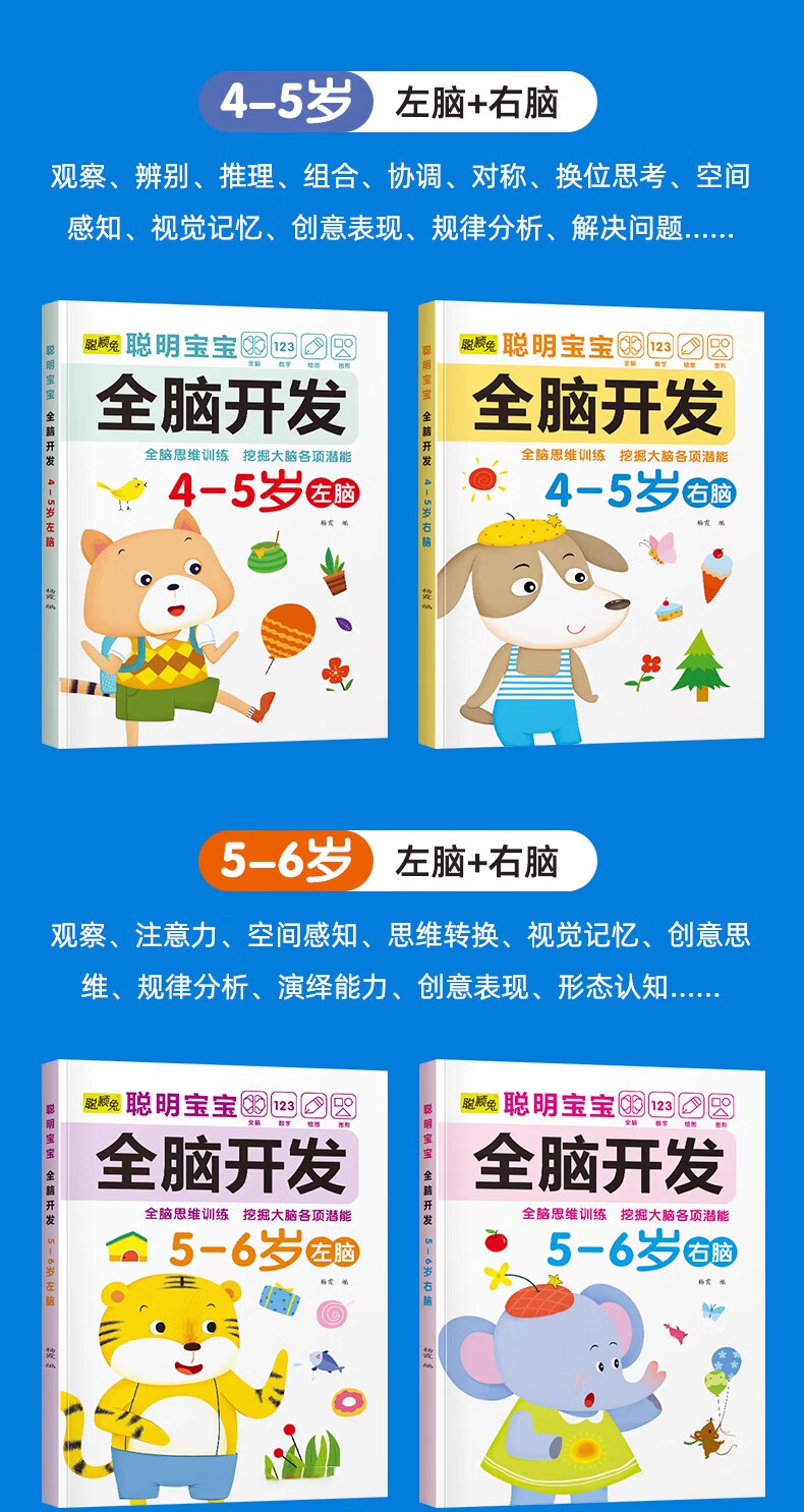 Smart baby's whole brain development left brain + right brain, left and right brain development training for children aged 2-6 years old, whole brain puzzle, smart baby whole brain development for 3-4 years old, 2 volumes, no specifications