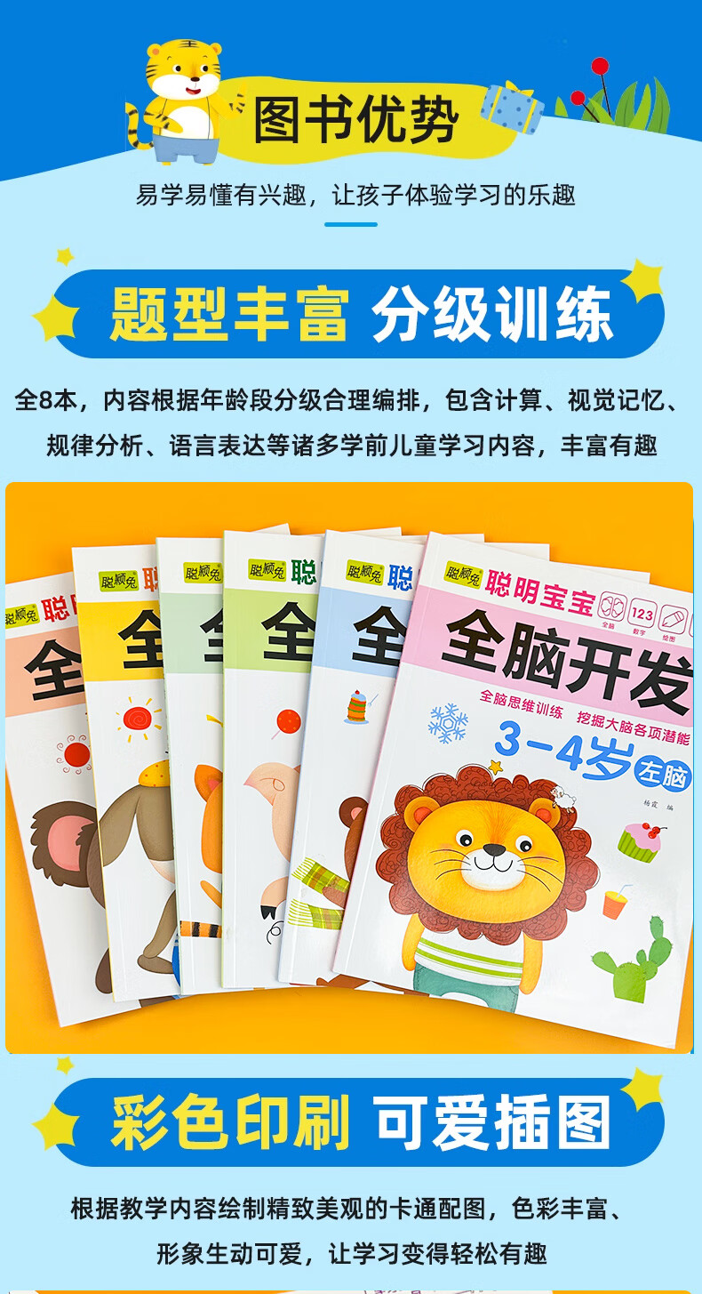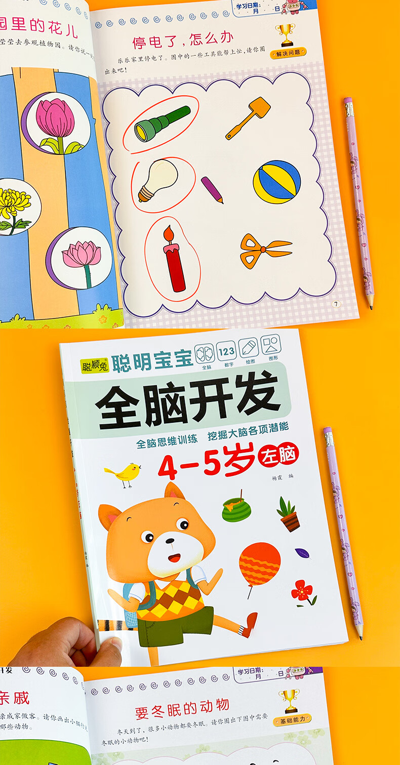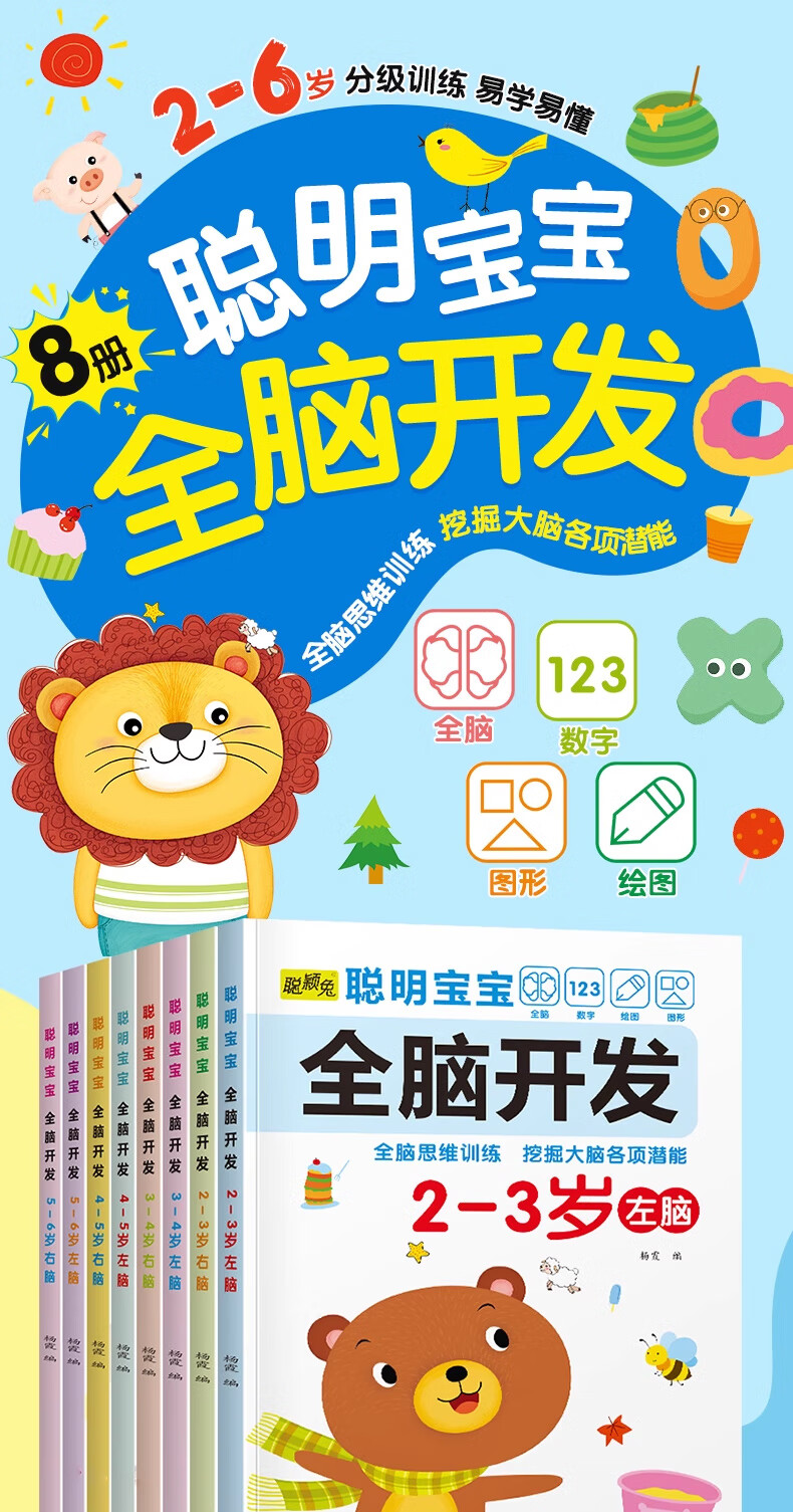 Smart baby's whole brain development left brain + right brain, left and right brain development training for children aged 2-6 years old, whole brain puzzle, smart baby whole brain development for 3-4 years old, 2 volumes, no specifications
