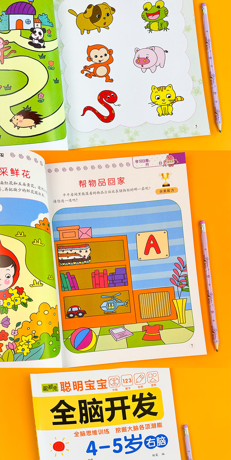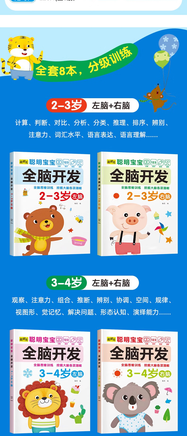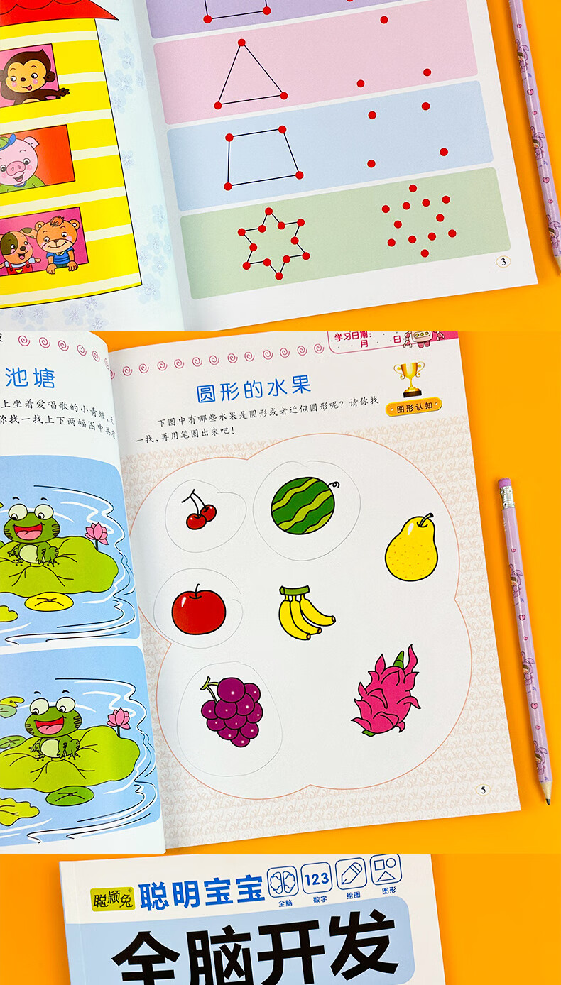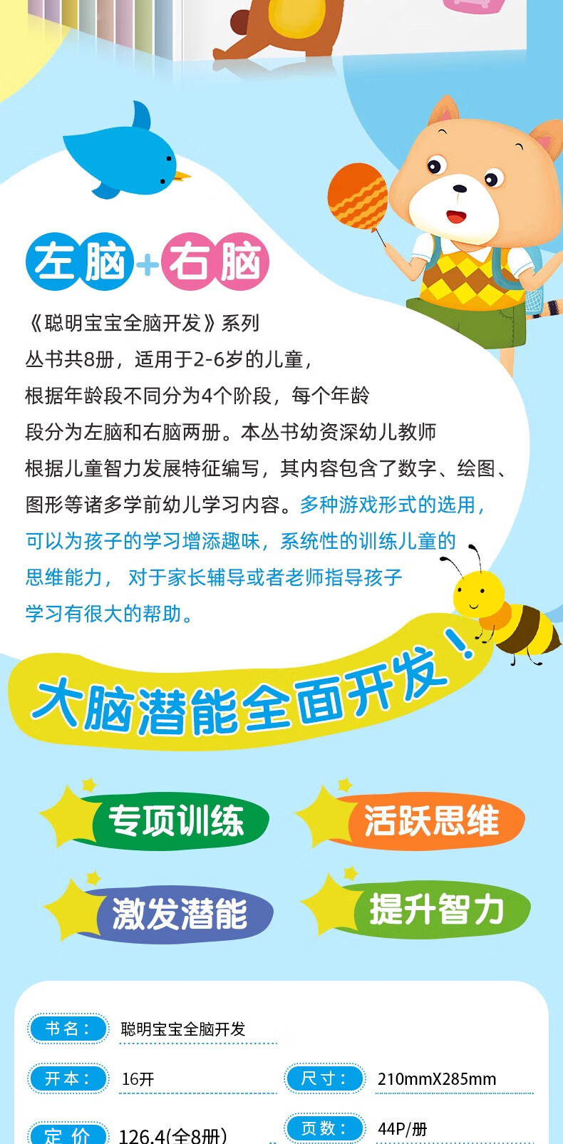 Smart baby's whole brain development left brain + right brain, left and right brain development training for children aged 2-6 years old, whole brain puzzle, smart baby whole brain development for 3-4 years old, 2 volumes, no specifications