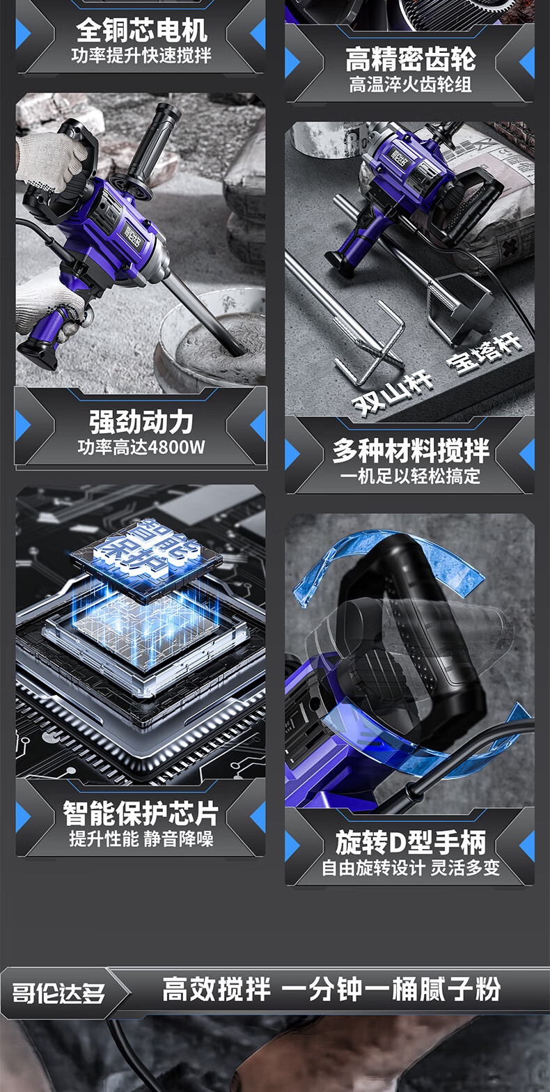 Golundado industrial mixer with rhinestones, putty powder, paint, aircraft drilling machine, cement mortar duster, multi-functional all-copper purple gold rhinestone mixer with double poles (pagoda pole + double mountain pole)