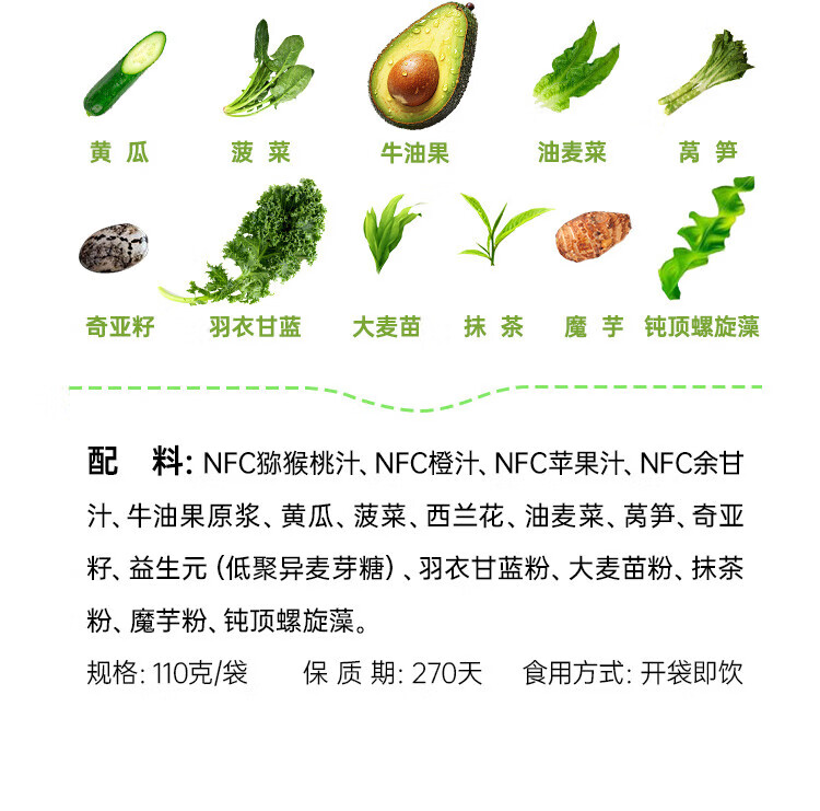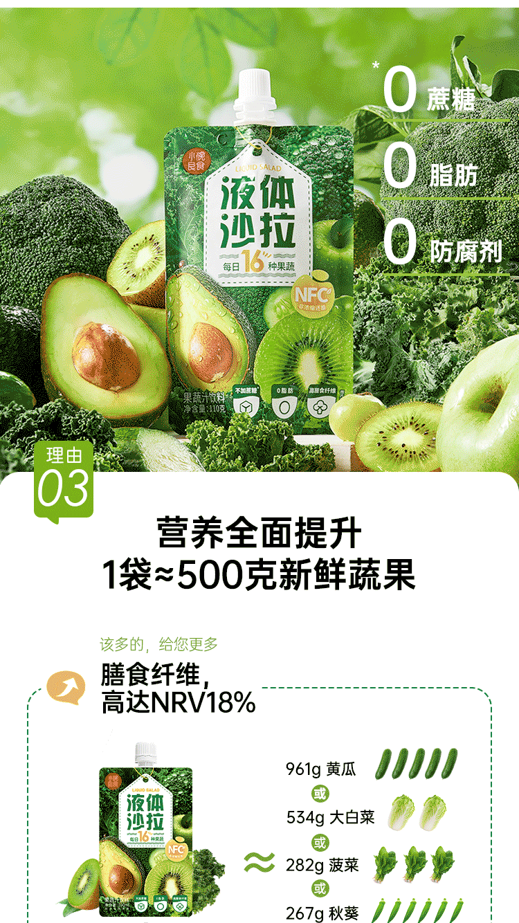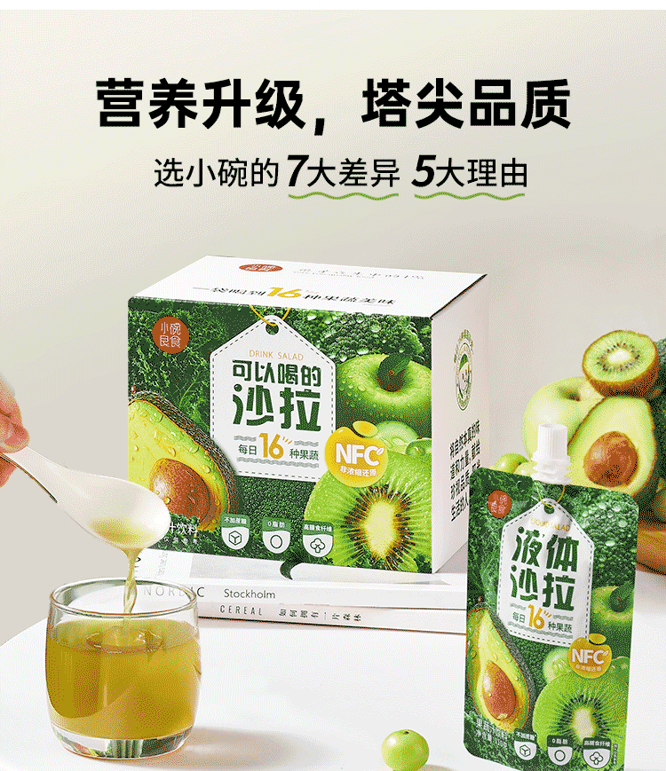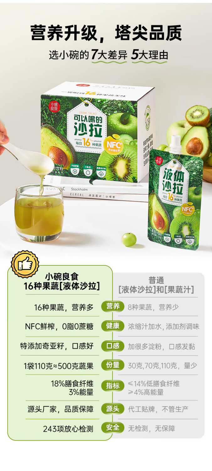 Small bowl of good food liquid salad NFC compound fruit and vegetable juice meal replacement light liquid without adding 0 fat dietary fiber fruit and vegetable juice 110g*7 bags