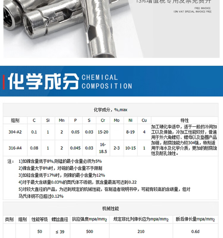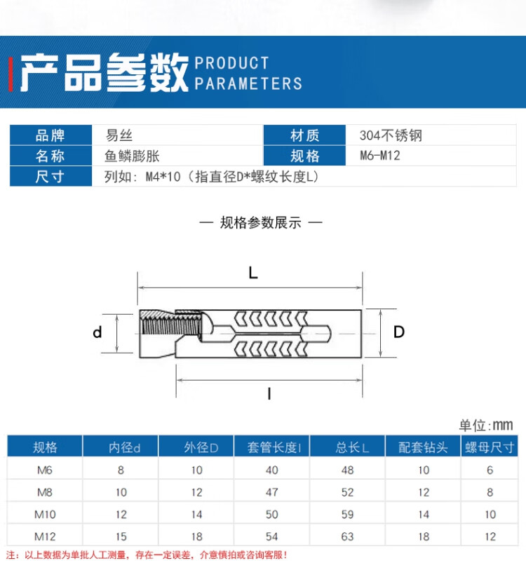 Yisi 304 stainless steel fish scale expansion tube three-piece gecko 201 one-piece internal expansion screw bolts M6M8-M12 M10 (304 material) 5 pieces