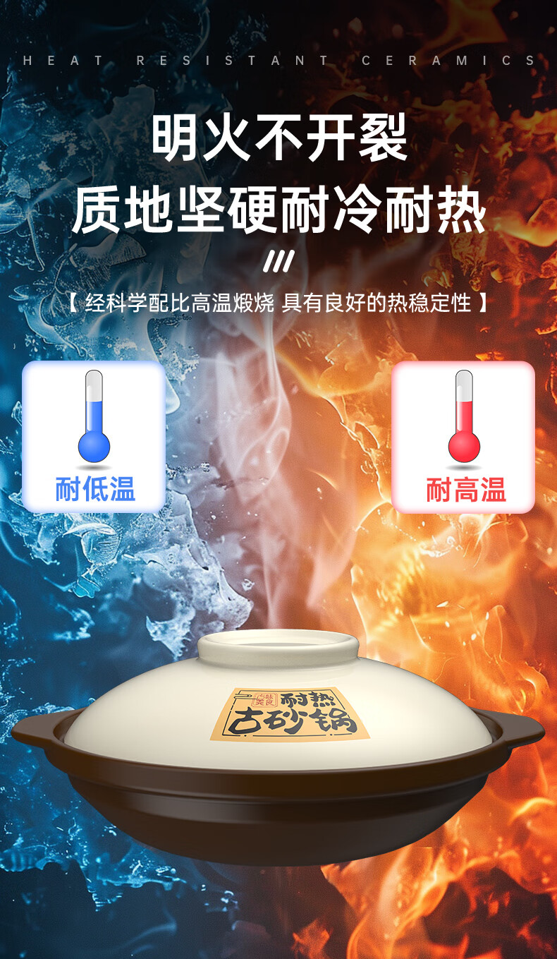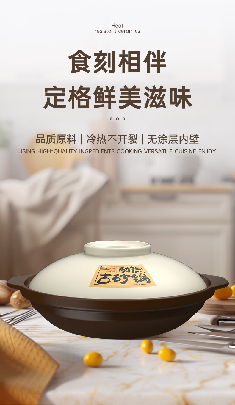 Kangshu casserole household stew pot gas high temperature resistant dry-cooked clay pot rice shallow pot commercial gas stove special casserole ceramic pot heat-resistant ancient casserole for 3-5 people 2500ml