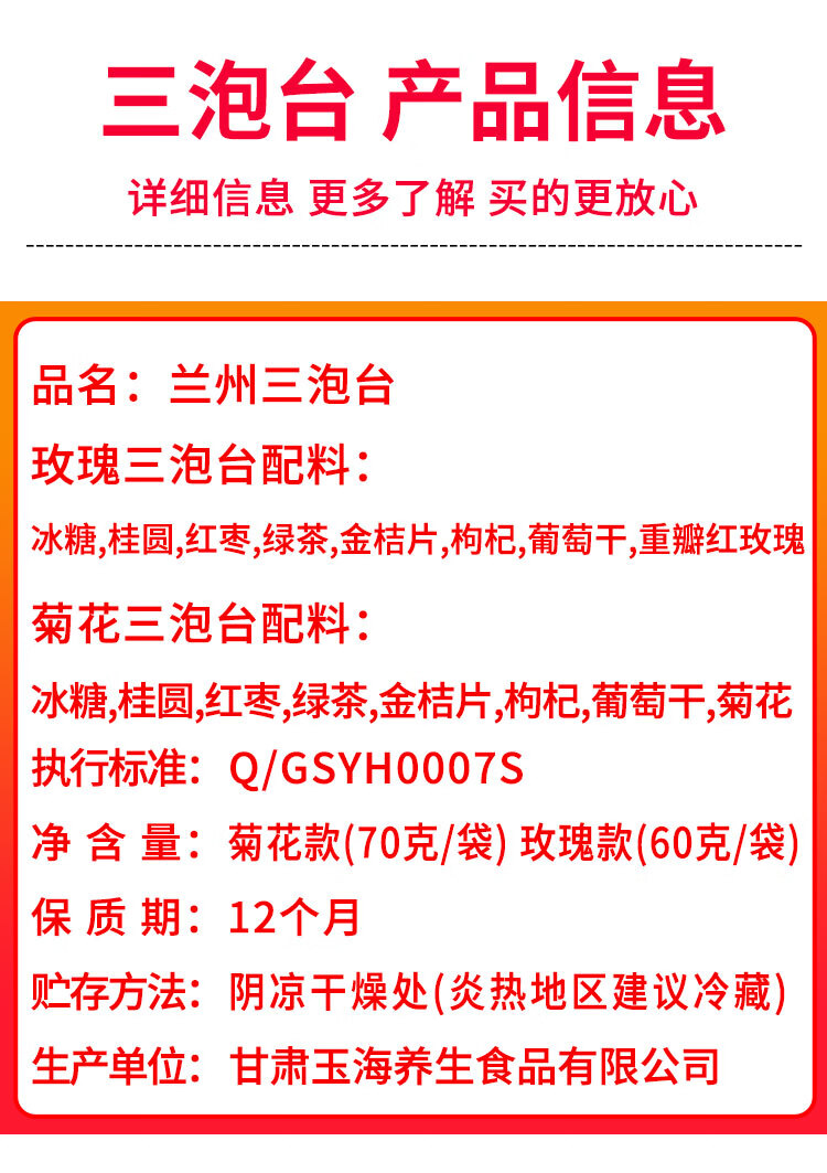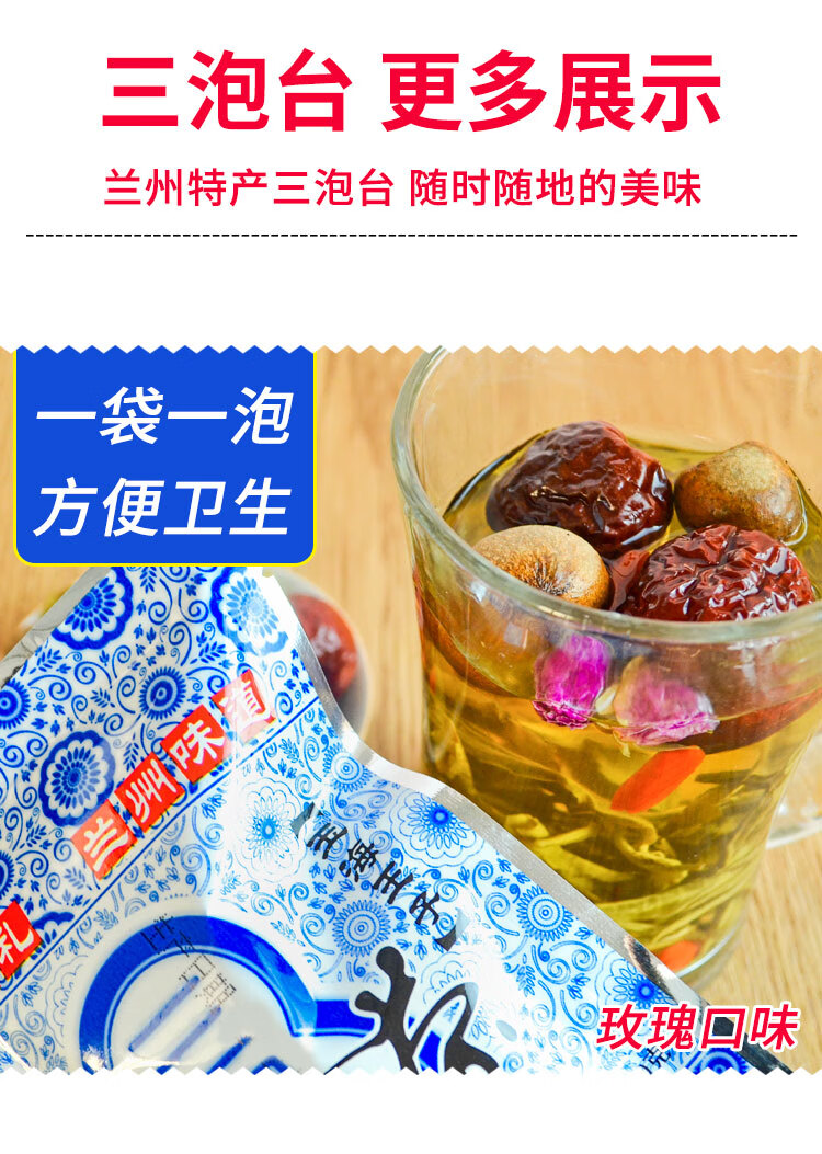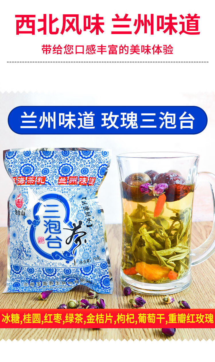 Paotai Mountain Three Paotai Tea Lanzhou Specialty Gansu Jade Sea Rose Eight Treasures Covered Bowl Tea 20 Bags Wolfberry Chrysanthemum Three Pao Taiwan Tea Impression Chrysanthemum 10 Bags + Prince Rose 10 Bags + Gift Yuhai Prince/Impression Three Pao Taiwan 60g/70g