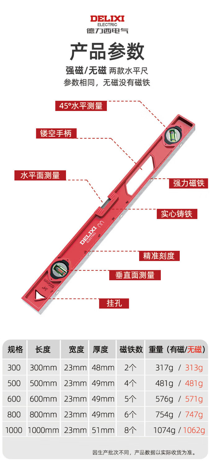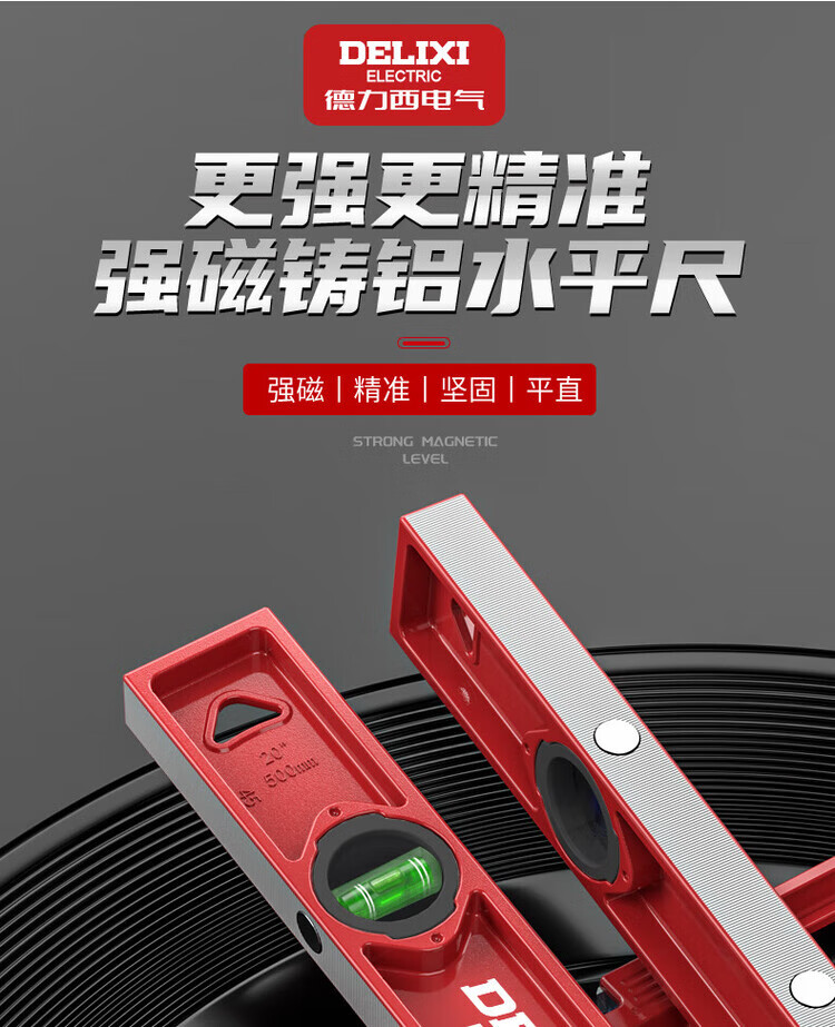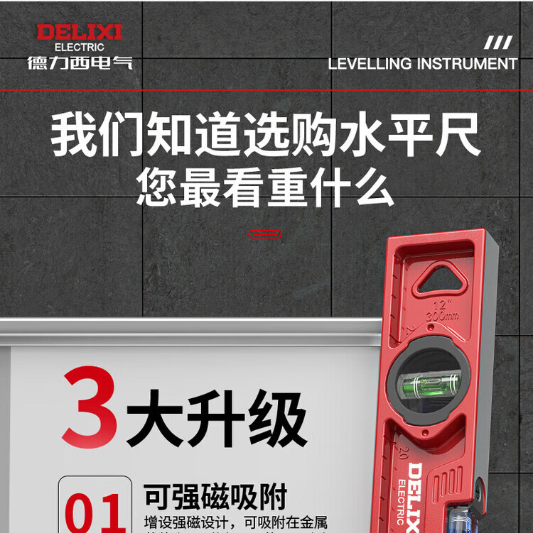 Delixi electrical level high-precision leveling instrument tool mini small strong magnetic ruler anti-fall cast aluminum measuring ruler 300mm strong magnetic solid cast aluminum industrial grade
