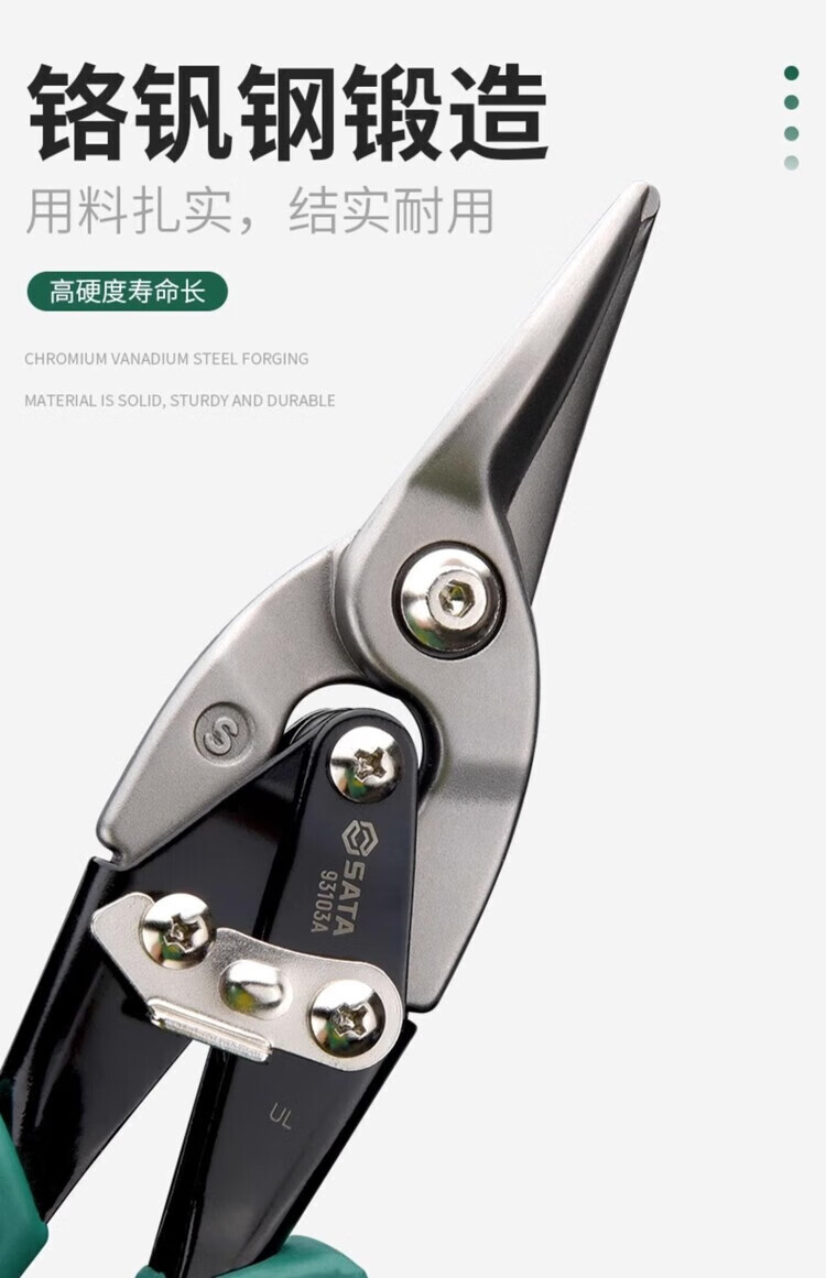 Star (SATA) Star (SATA) metal scissors, special scissors for cutting iron sheets, industrial scissors, strong stainless steel, special keel scissors, aviation scissors 93102A/right head aviation scissors