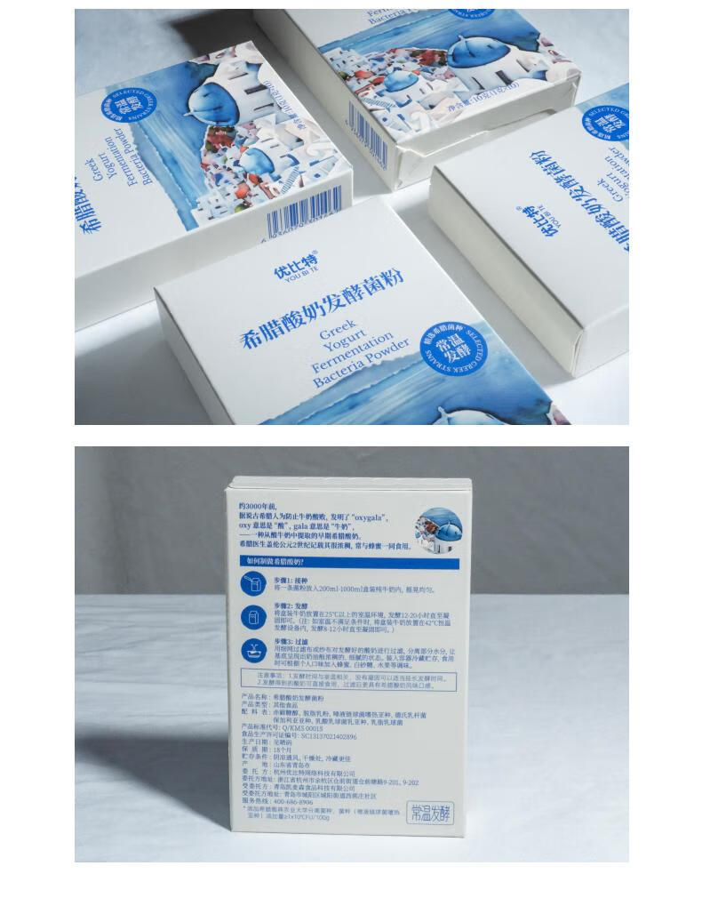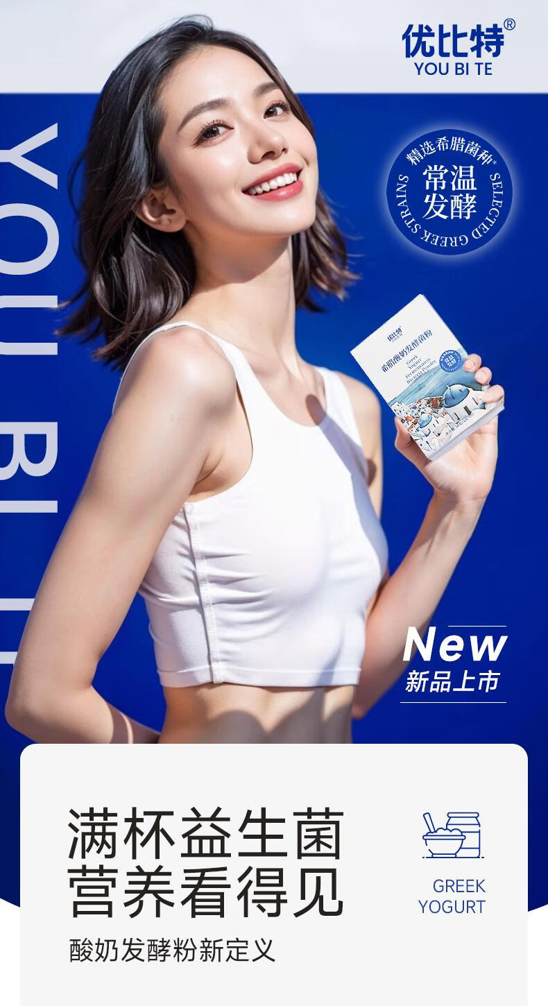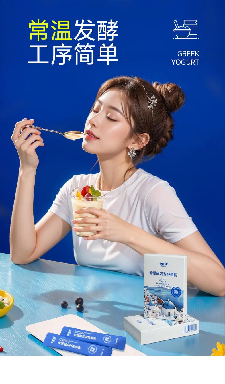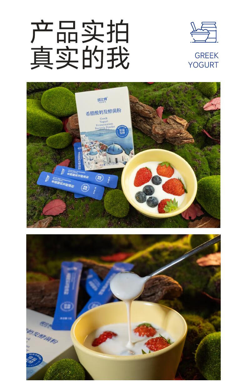 Ubit Greek yogurt room temperature fermented bacteria powder homemade solid yogurt sucrose-free household imported probiotic strains room temperature fermented bacteria powder 3 boxes total of 30 pieces + Greek yogurt gift box