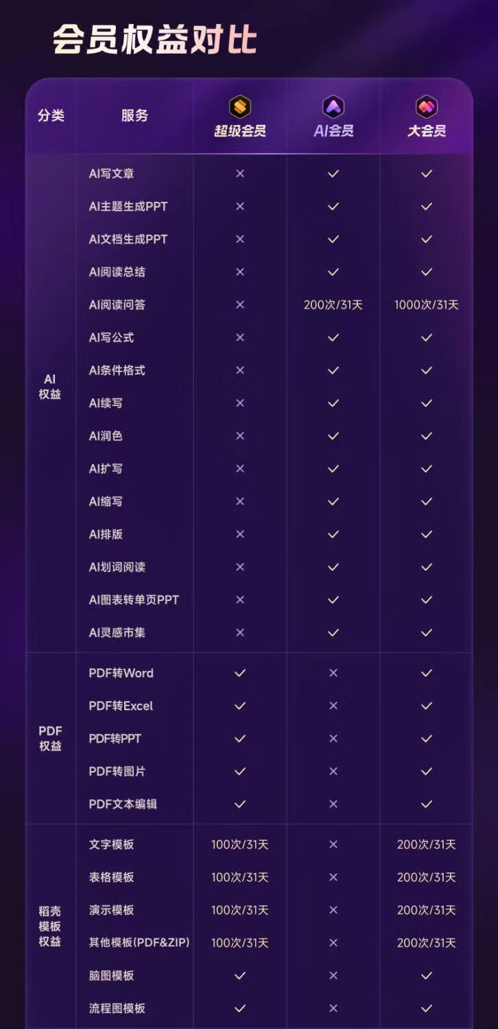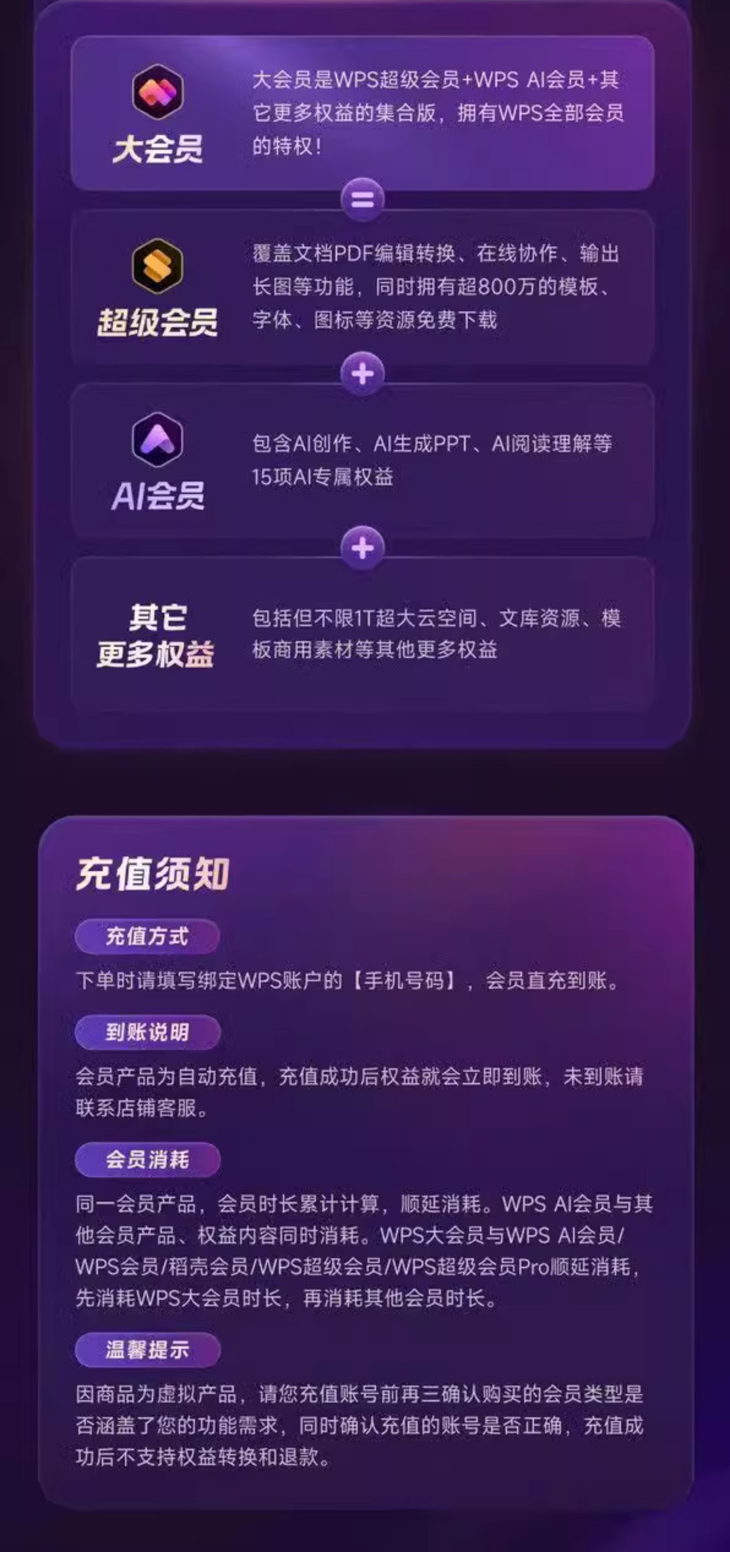 WPS big membership recharge includes AI rights one-year card wps ai membership super membership monthly and weekly card 7 days and 30 days recharge mobile phone number and send customer service WPS super 7 days