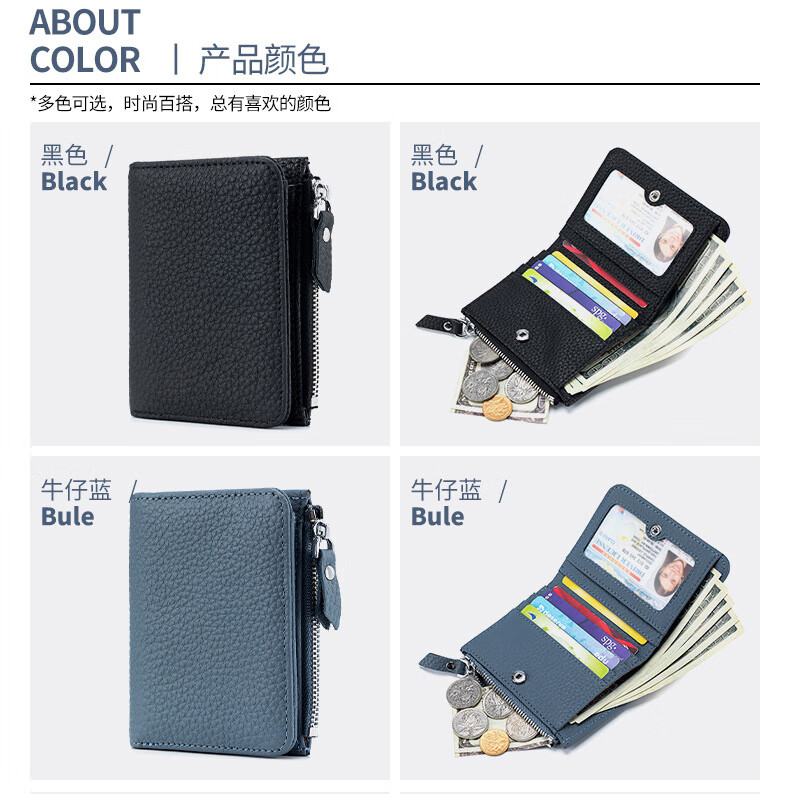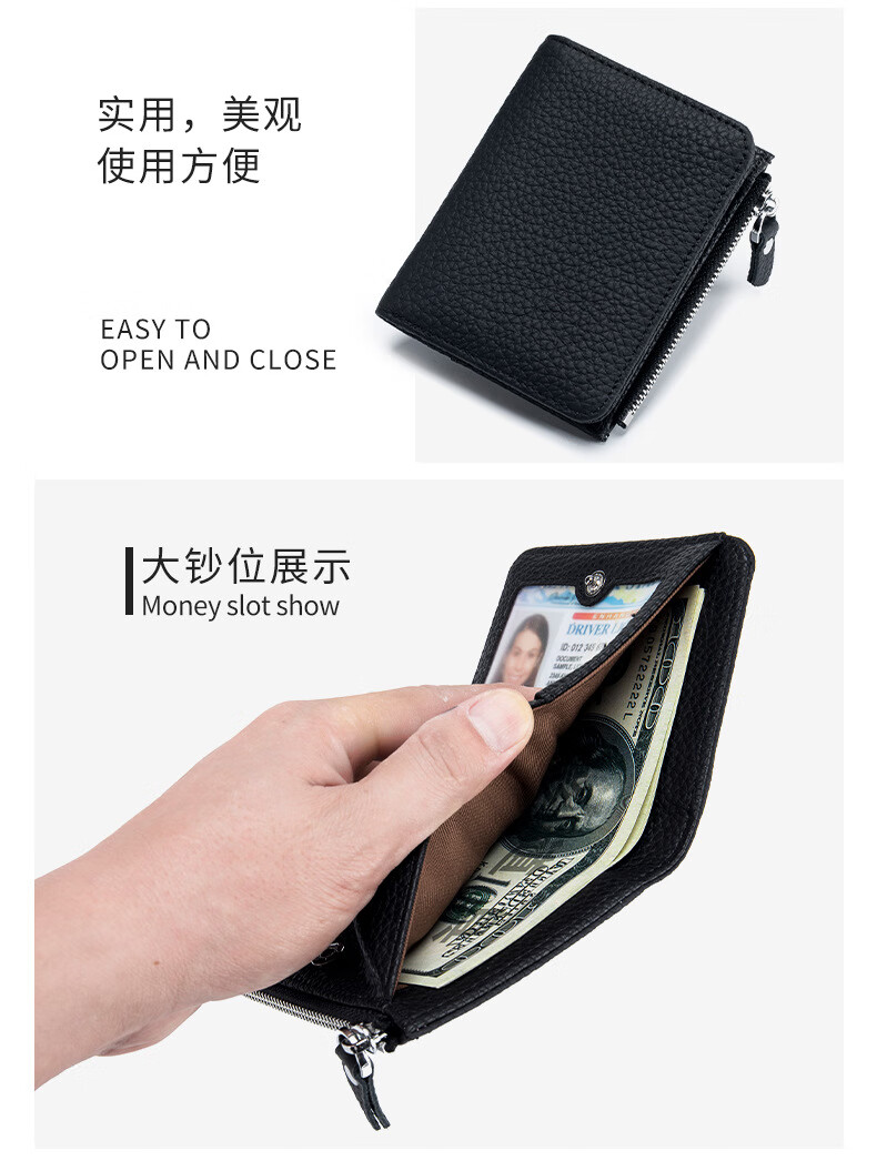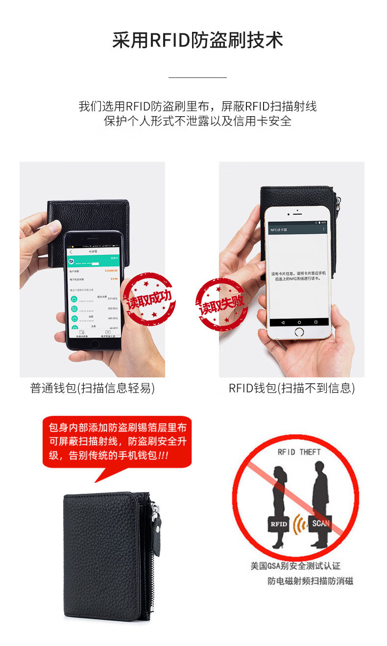 VANLEMN Denmark study abroad travel anti-theft brush ultra-thin wallet cowhide anti-degaussing men's and women's card holder all-in-one new style dark black