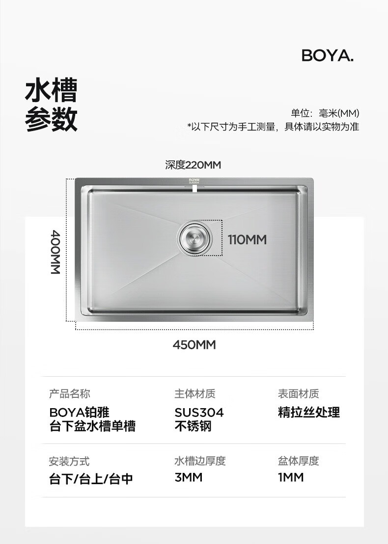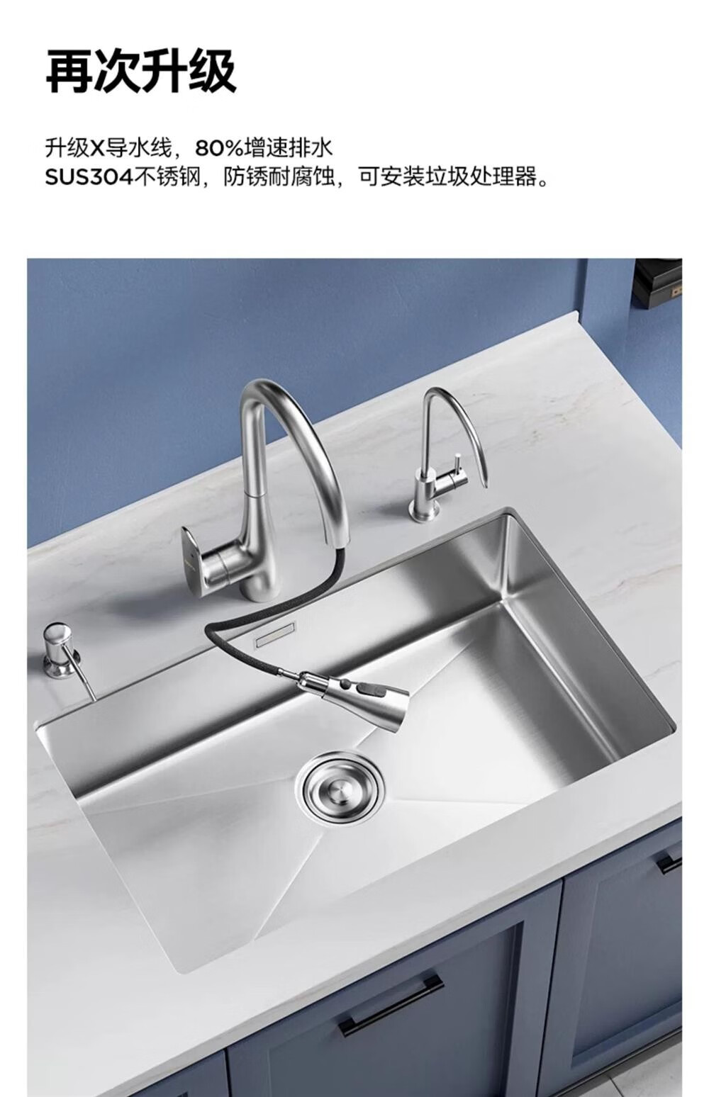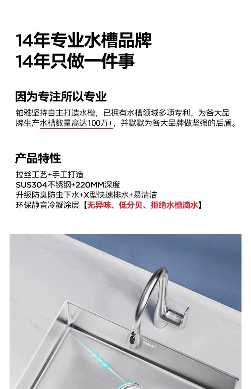 Sakura kitchen sink handmade 304 stainless steel sink large single-slot under-counter basin household vegetable sink A high configuration 380*300 with 304 curved faucet