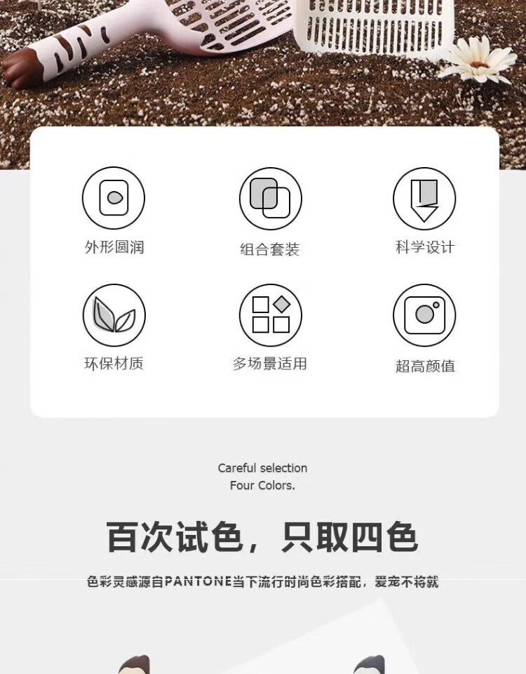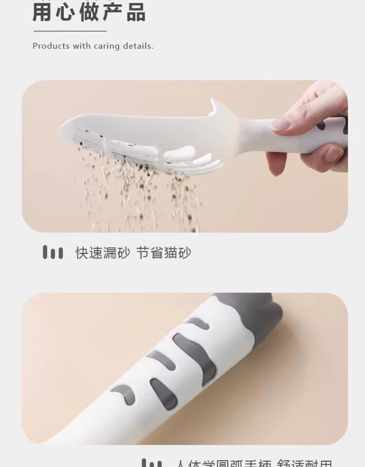 Cat litter shovel fine hole shovel artifact cat litter pet supplies tofu cat litter new two-in-one cat litter shovel Cat litter shovel-Edelweiss White Gray-1 piece