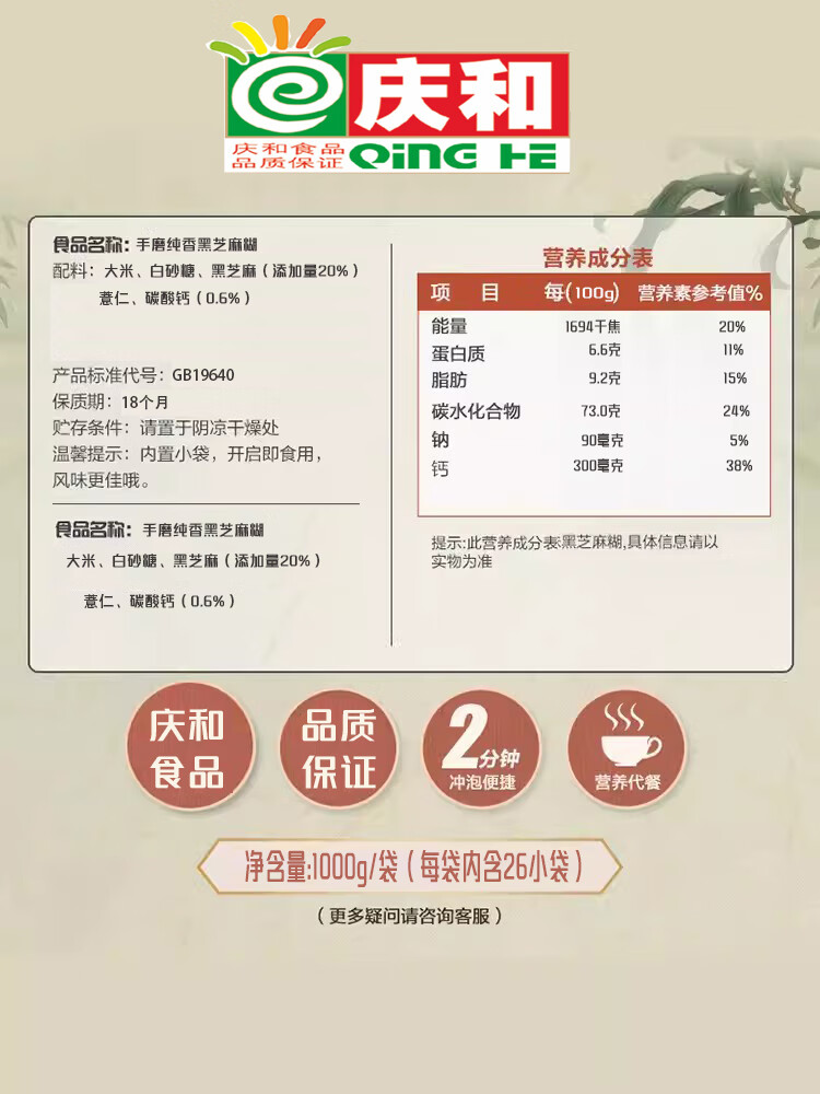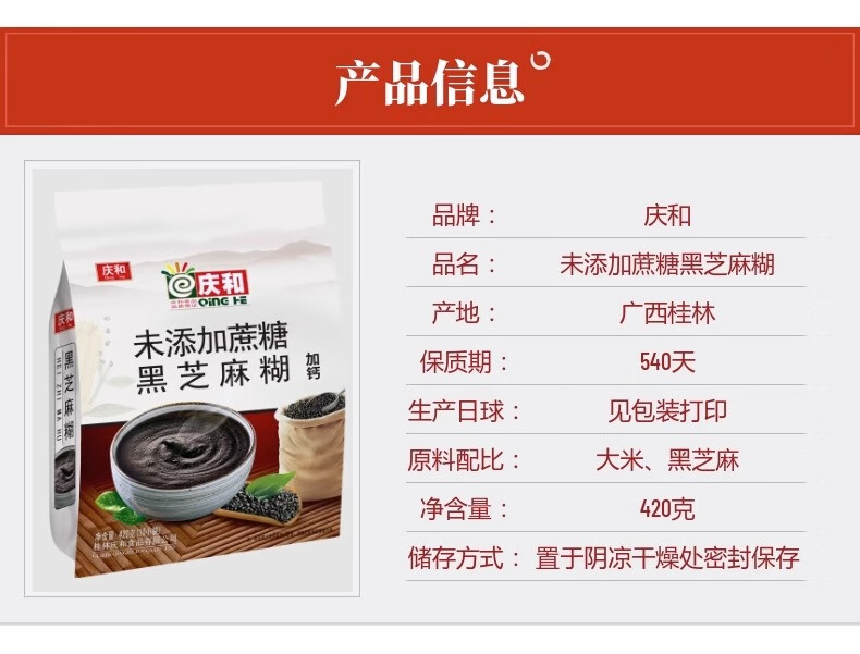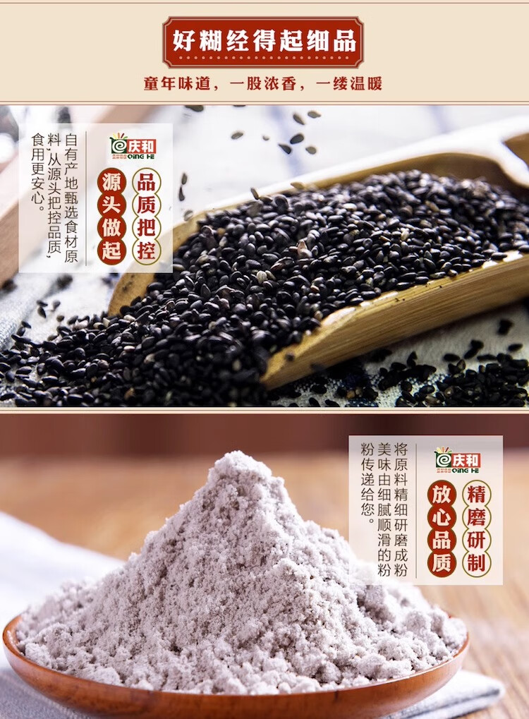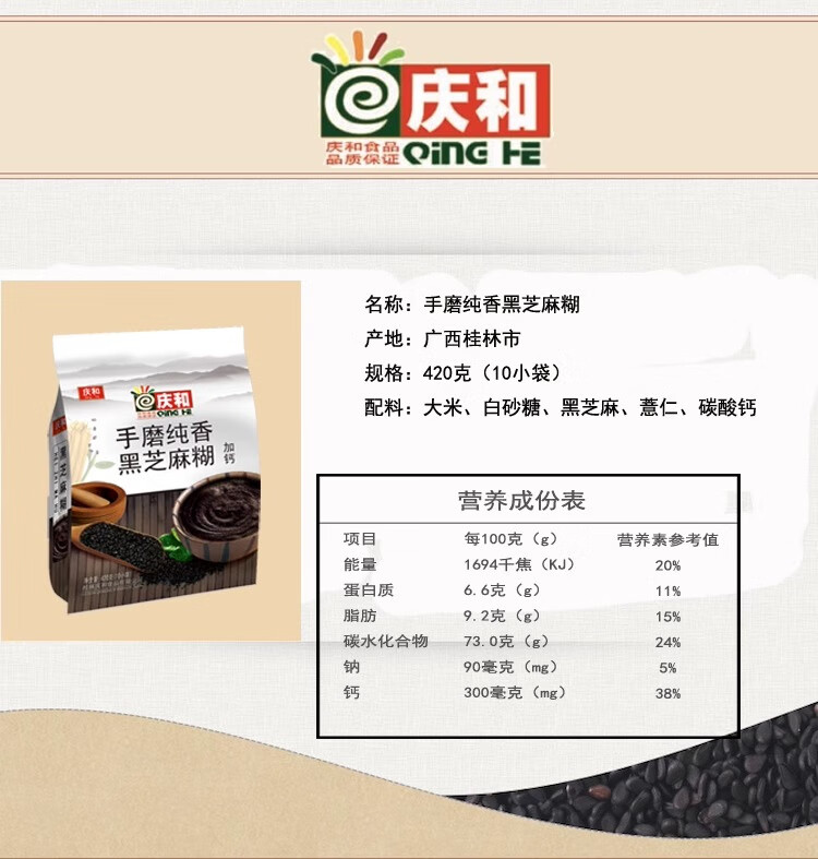 Qinghe hand-ground pure fragrant black sesame paste plus calcium 1000g instant drink nutritious breakfast meal replacement cereal black sesame flour noodles hand-ground pure fragrant black sesame paste plus calcium 420g * 1 bag