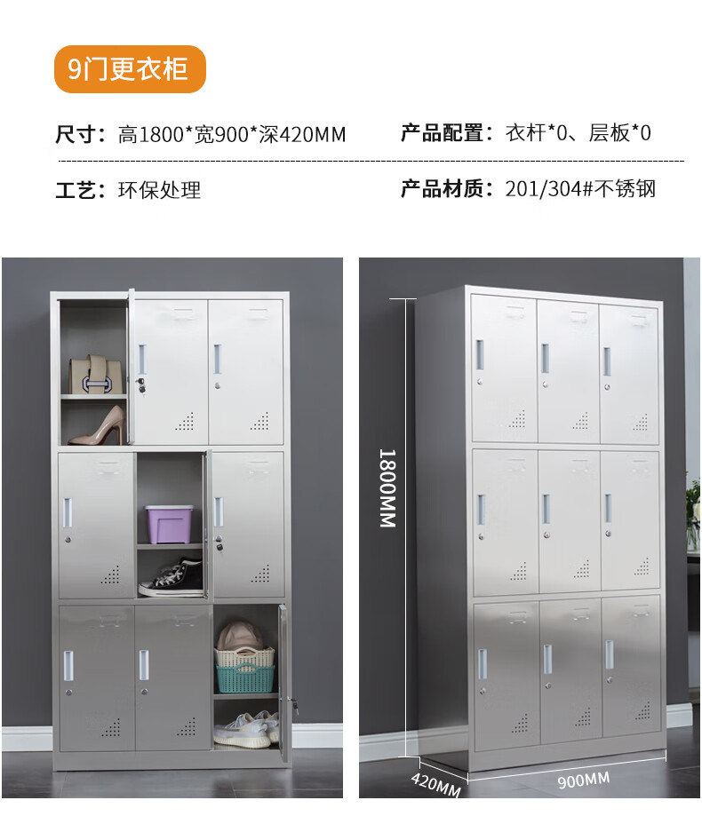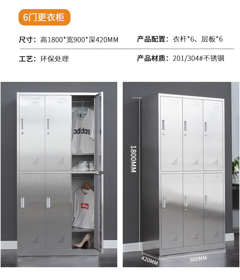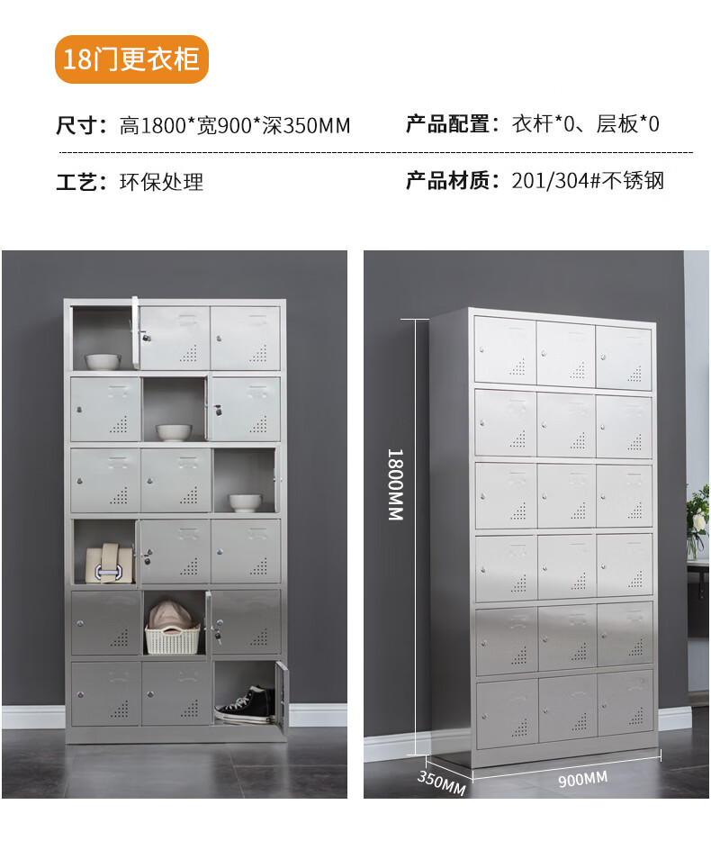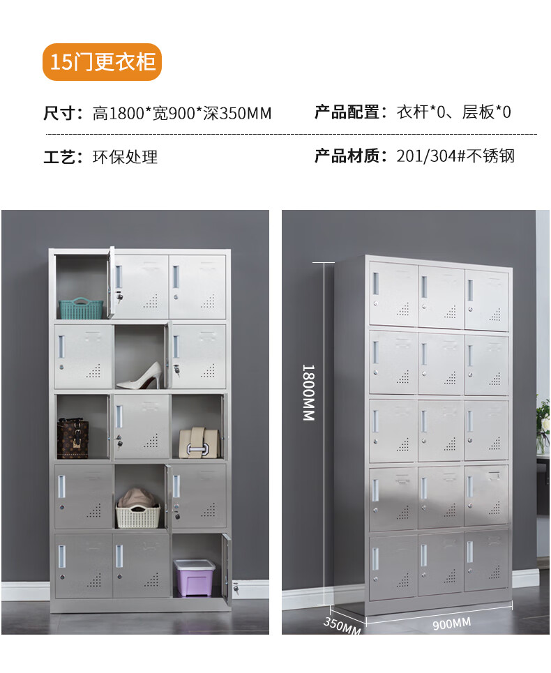Stainless steel changing wardrobe locker employee multi-door locker locker 304 material fifteen doors