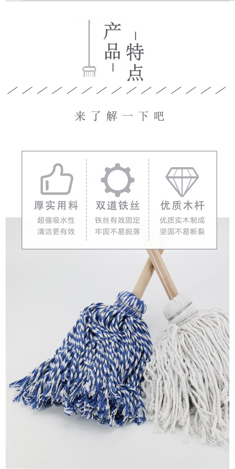Jinshiluo JZT-0003 traditional old mop mop cloth strip mop factory absorbent white (10 pieces)