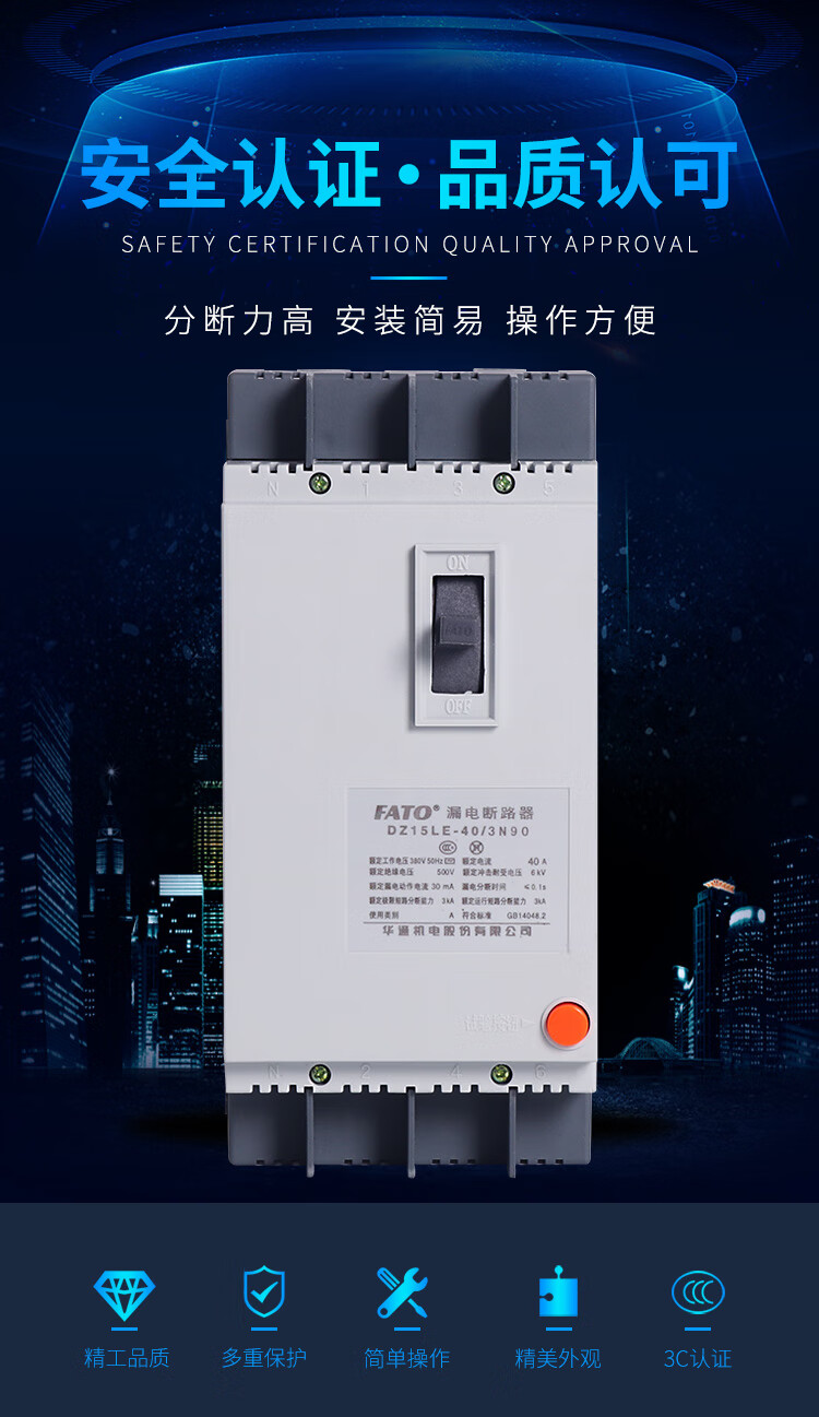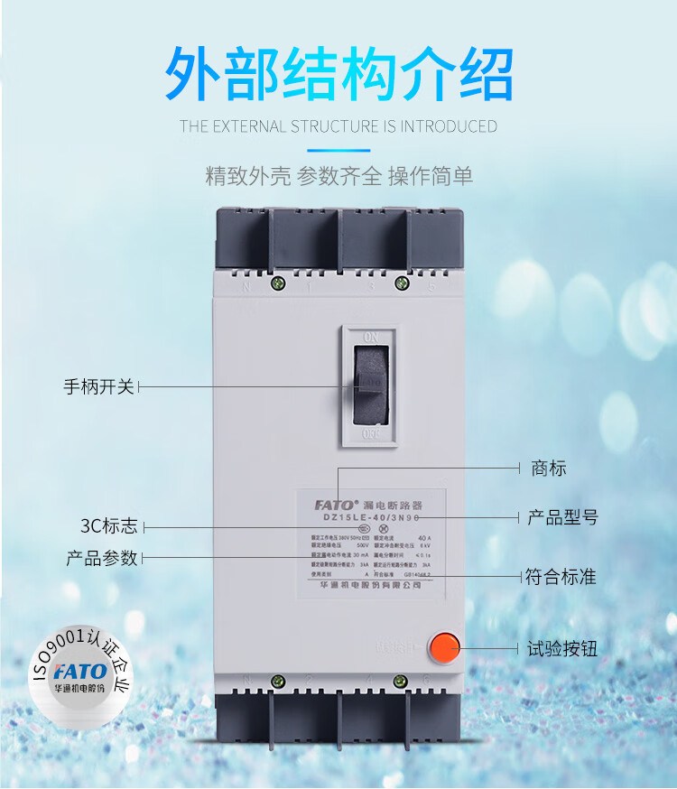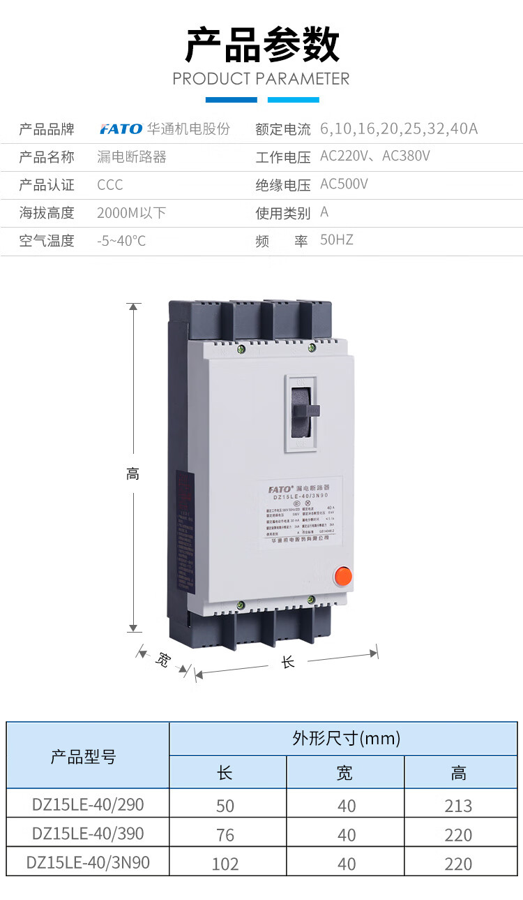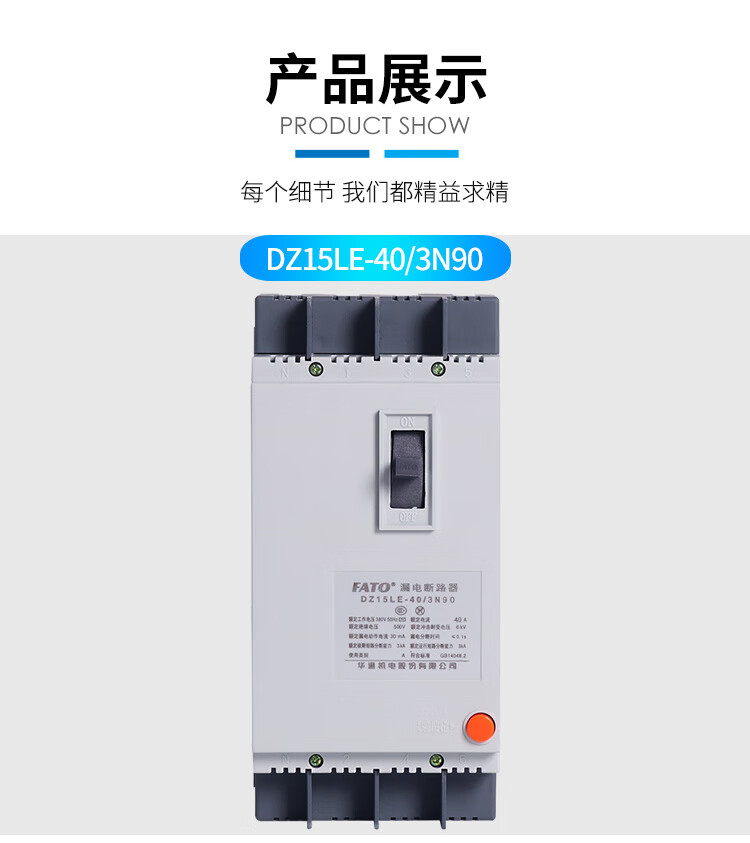 FATO Huatong 3-phase 4-wire p leakage protection 2p with leakage protection 40a circuit breaker DZ15LE air switch 100 plastic case 63a DZ15LE-100 63A 3P+N