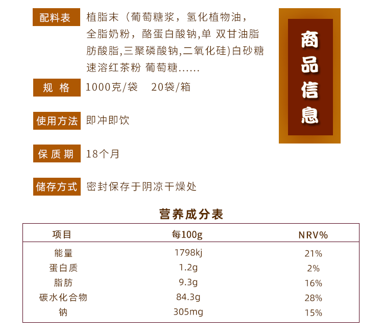 Hanqin milk tea powder bagged full box 1kg*20 bags instant three-in-one Hong Kong-style original milk tea shop special raw materials Demelin three-in-one coffee original flavor 1000g*20 bags