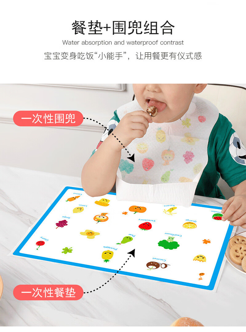 A mouthful of rice disposable placemat, baby portable table mat, oil-proof and waterproof, baby eating mat, no-wash table mat, tablecloth, fruit, 1 box of 20 pieces, no specifications