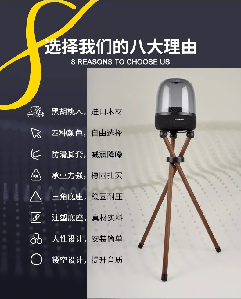 Cosento is suitable for Harmankardon Harman Kardon audio stand floor-standing vertical glass 2/3/4 generation crystal 4/5 generation walnut vertical high foot bracket base glass 2/3/4 generation black walnut 56CM (excluding speakers)