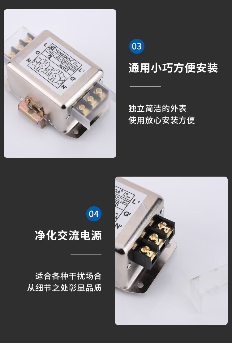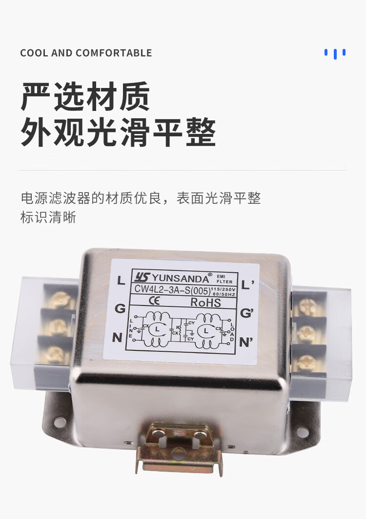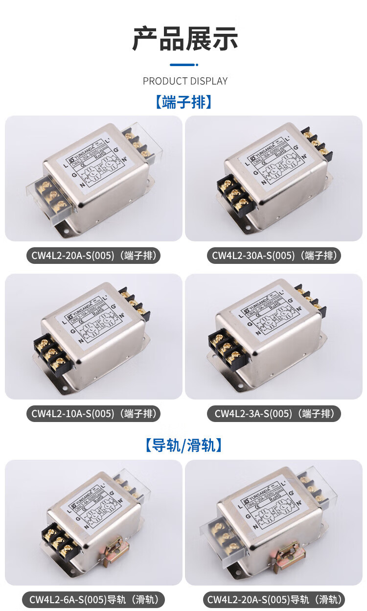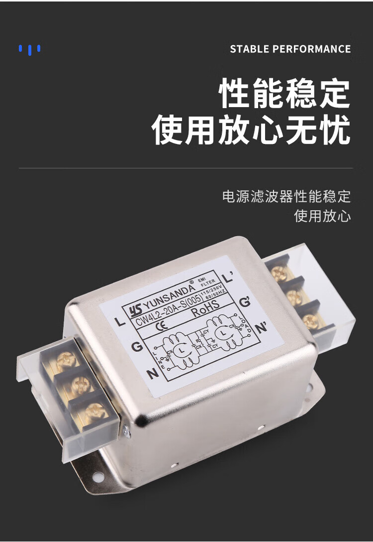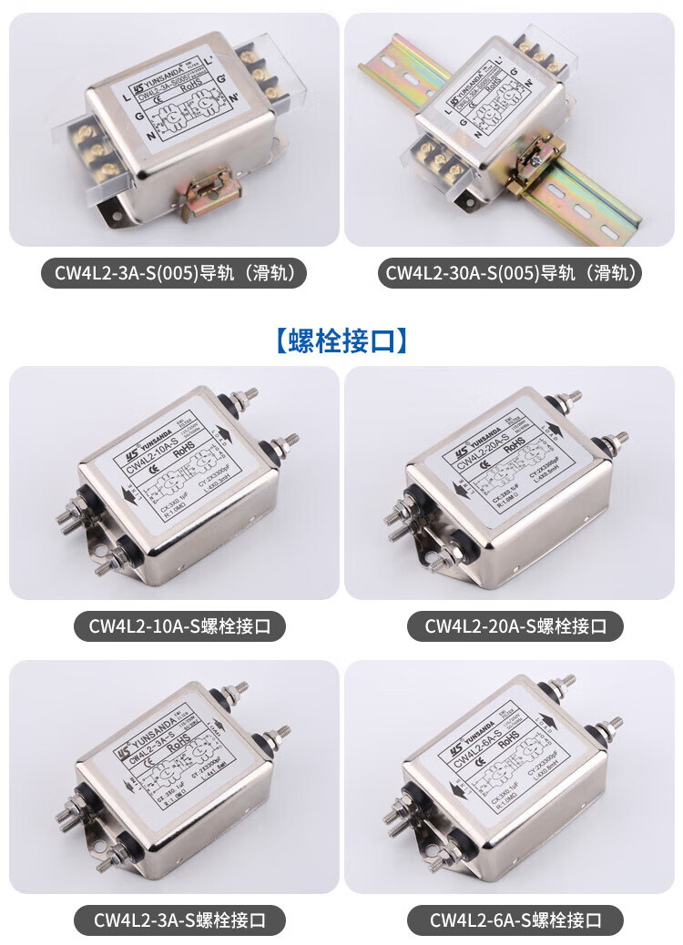 YUNSANDA power filter 220v anti-interference emi filter power purifier CW4L2-30A CW4L2-30A-R1 rail type