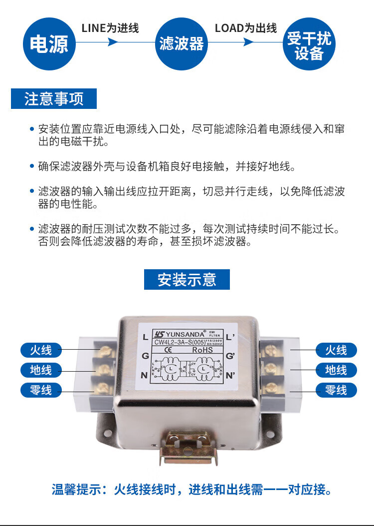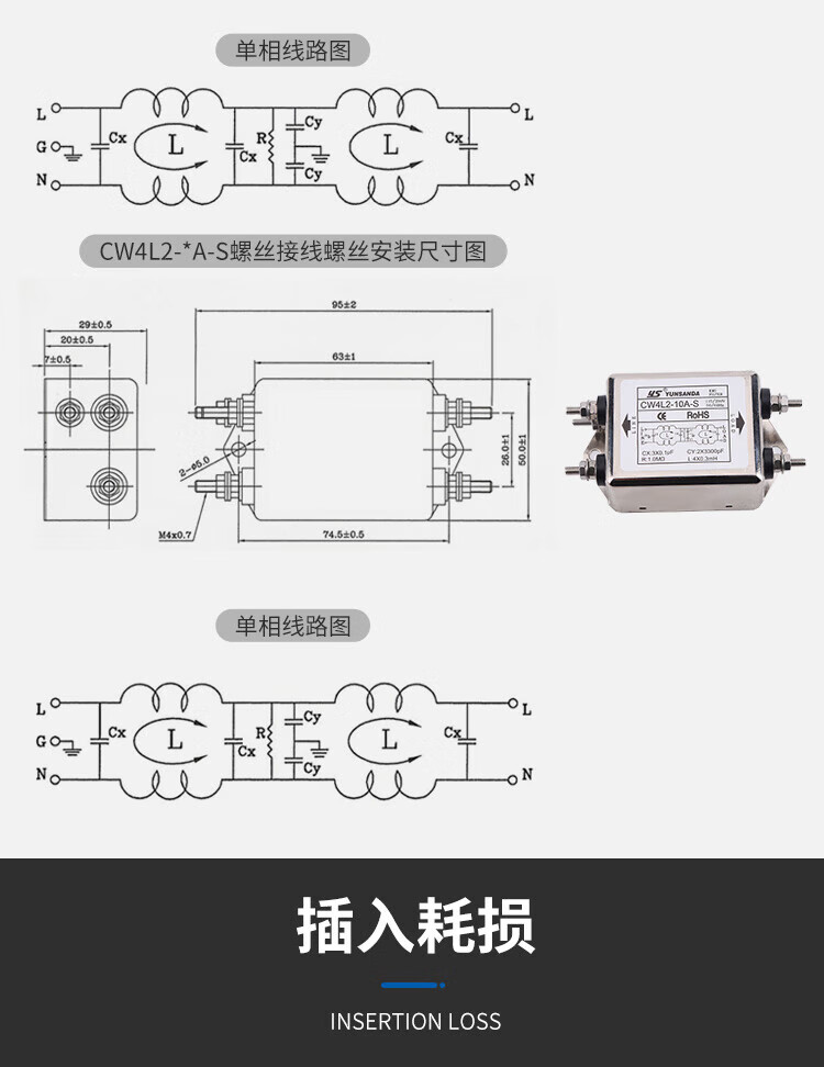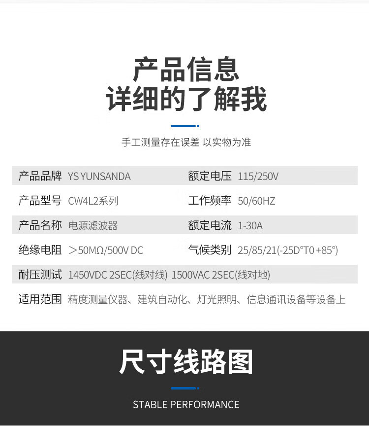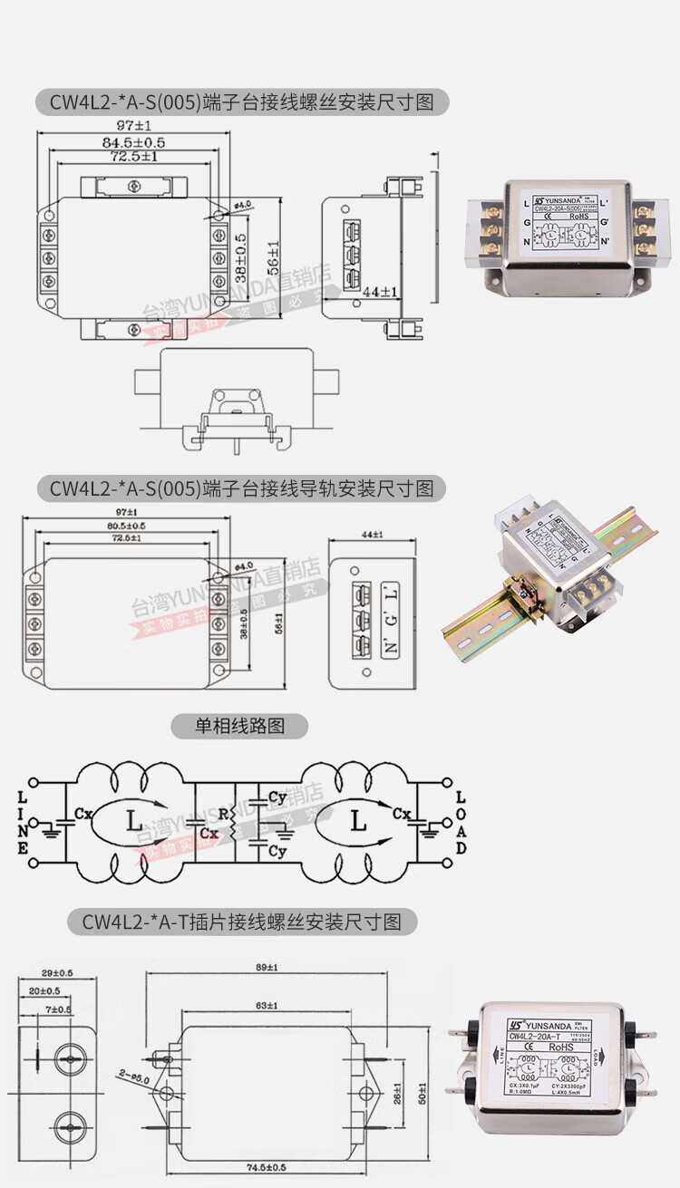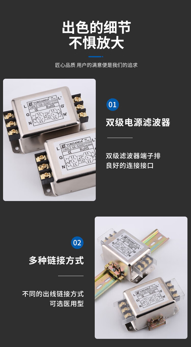 YUNSANDA power filter 220v anti-interference emi filter power purifier CW4L2-30A CW4L2-30A-R1 rail type