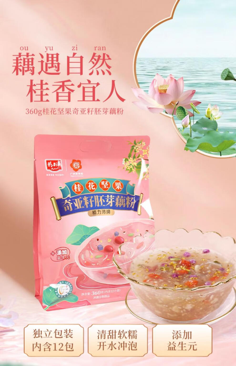 Energetic Osmanthus Nuts Chia Seeds Lotus Root Powder Lotus Root Soup Red Dates Pure Lotus Root Powder Nutritional Breakfast Meal Replacement 360g Osmanthus Nuts Lotus Root Powder 40g*3 Cups