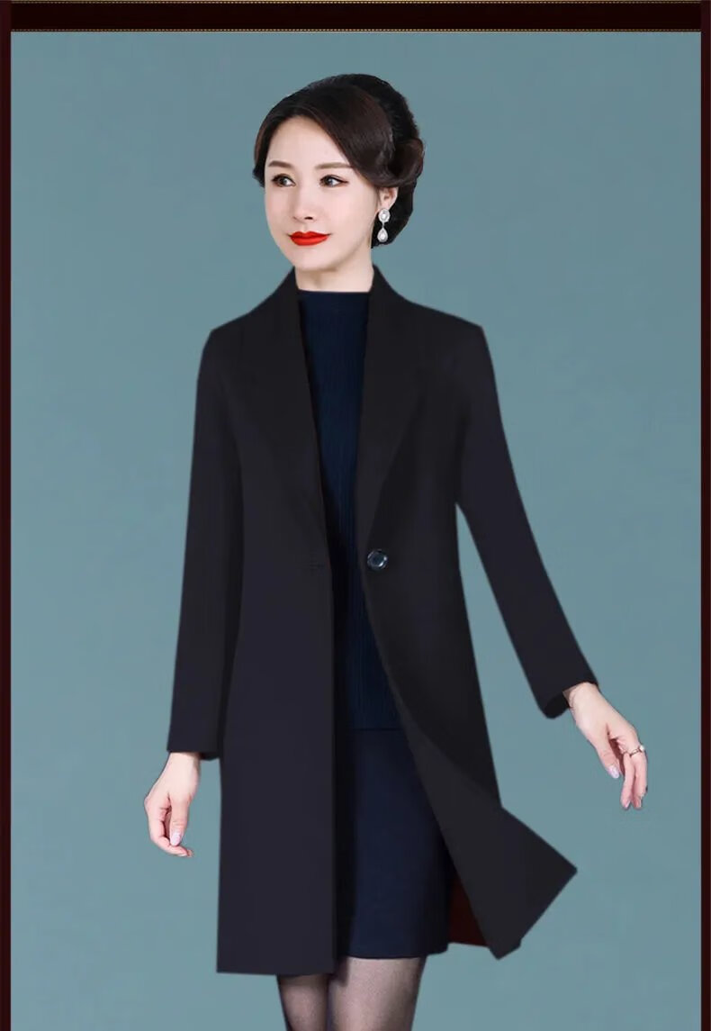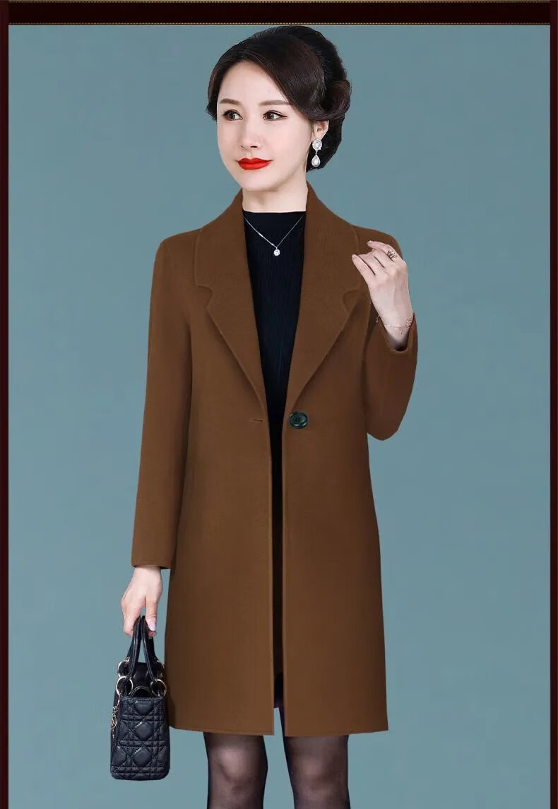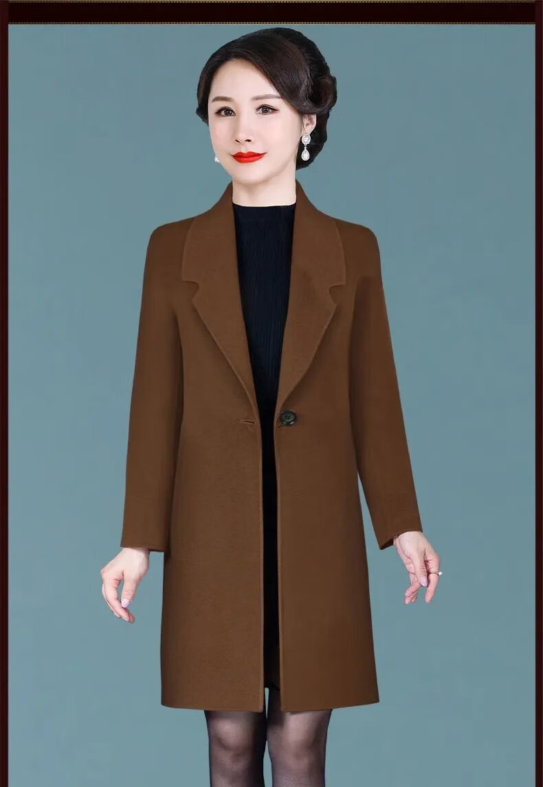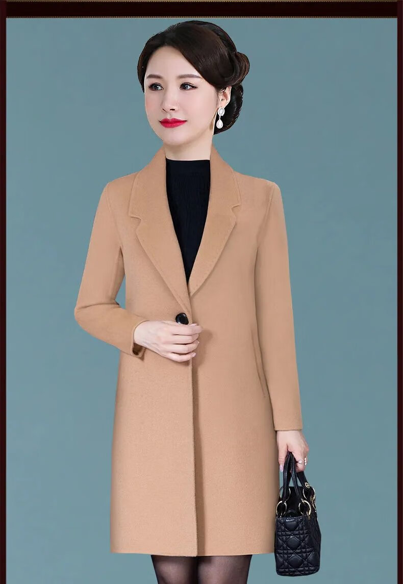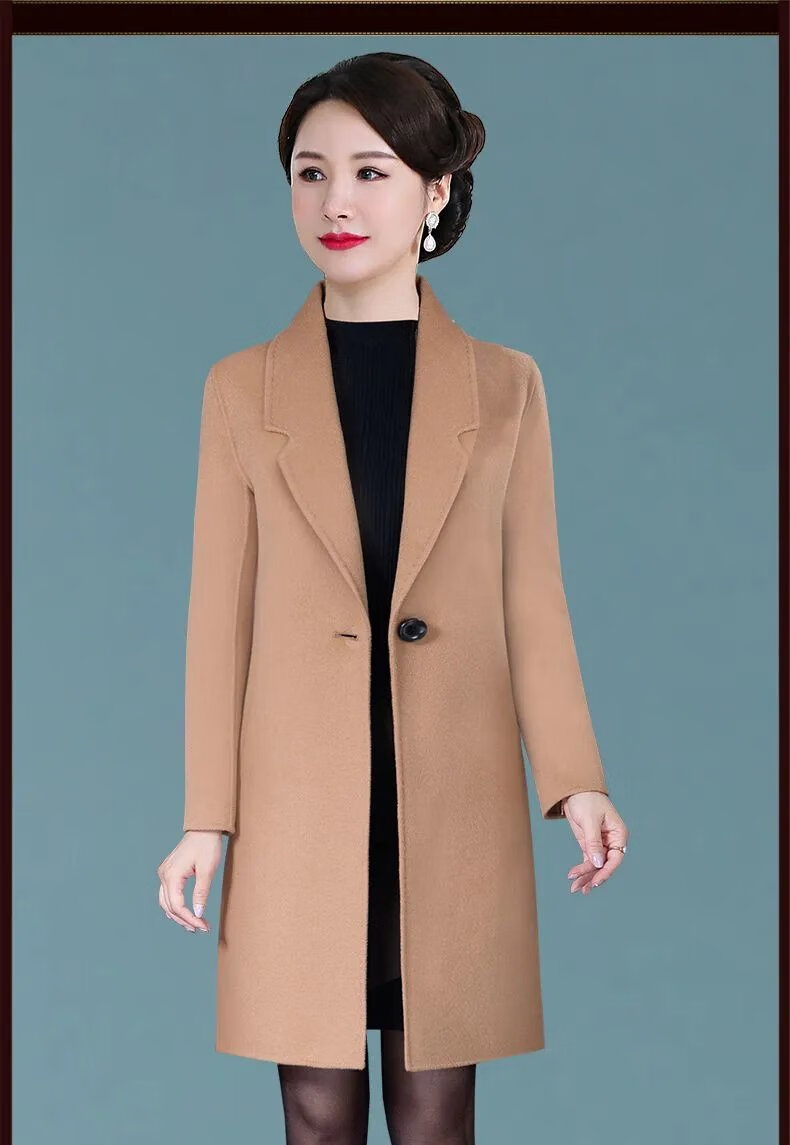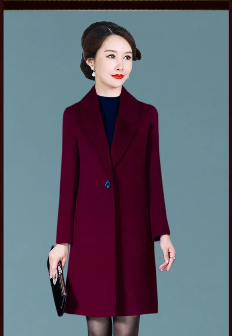 ROMON high-end double-sided cashmere coat for women 2024 new autumn and winter new mid-length woolen coat for small people thickened woolen red L 85-105 pounds