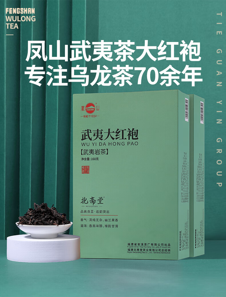 Beizhaitang Fengshan Anxi Tieguanyin Group Business Reception Genuine Wuyi Rock Tea Dahongpao Oolong Tea Small Packaging 168g