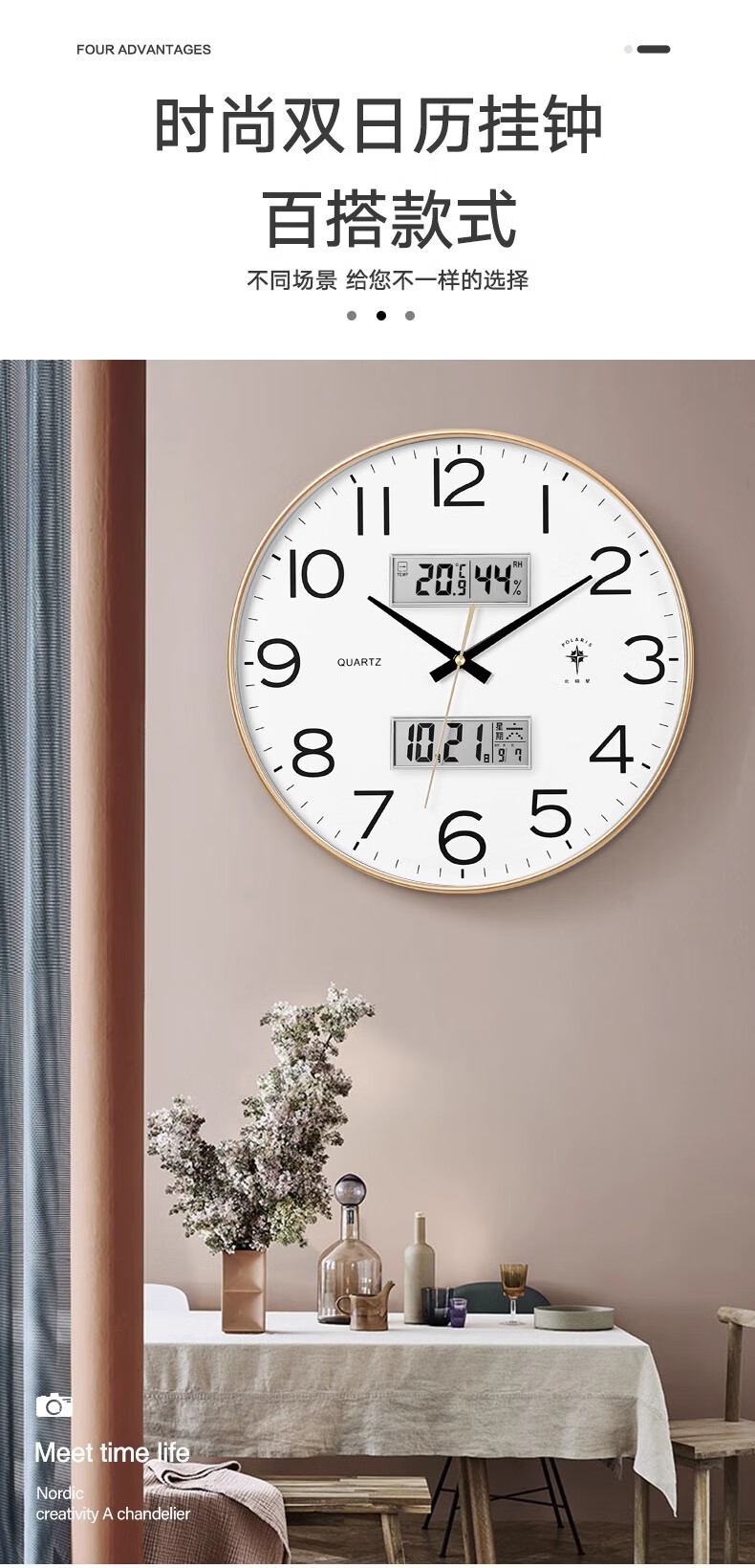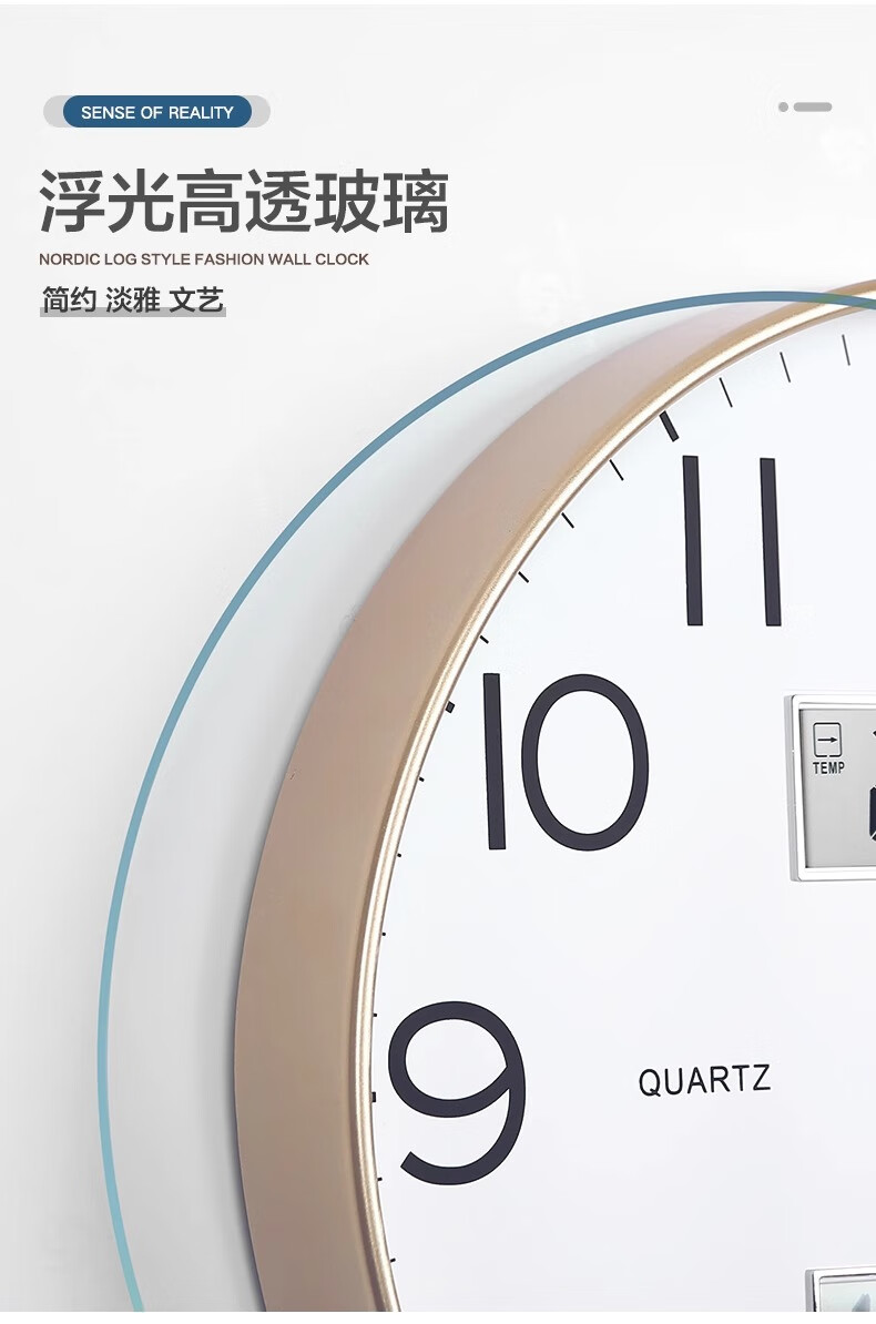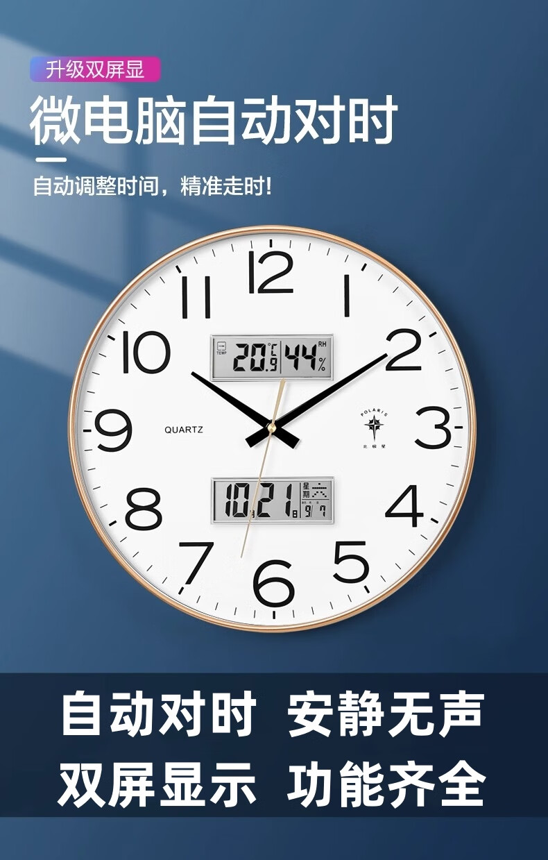 Polaris (POLARIS) clock wall clock automatic time adjustment living room 2025 new quartz clock calendar simple fashion wall clock champagne gold diameter 35 cm